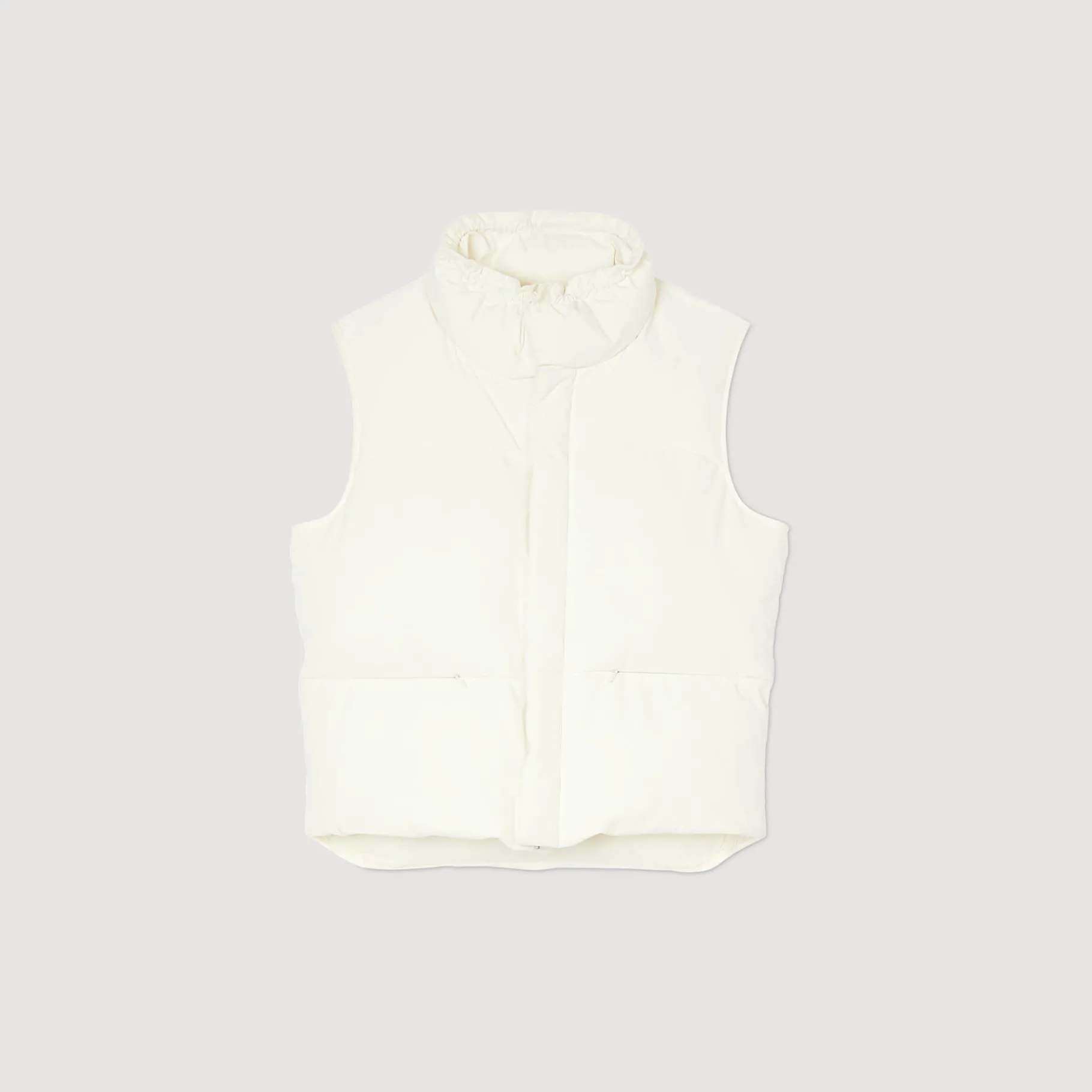 Anorak Sin Mangas Acolchado De Tejido Técnico, Con Cuello Alto Con Cordón Ajustable, Cierre De Cremallera Y Tapeta De Botones Forrados Y Dos Bolsillos Delanteros.