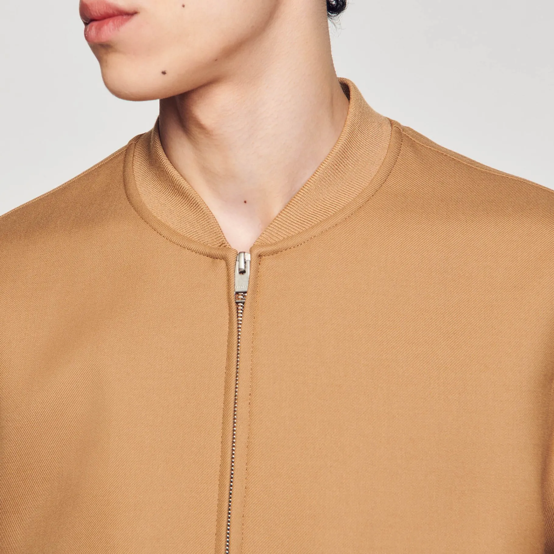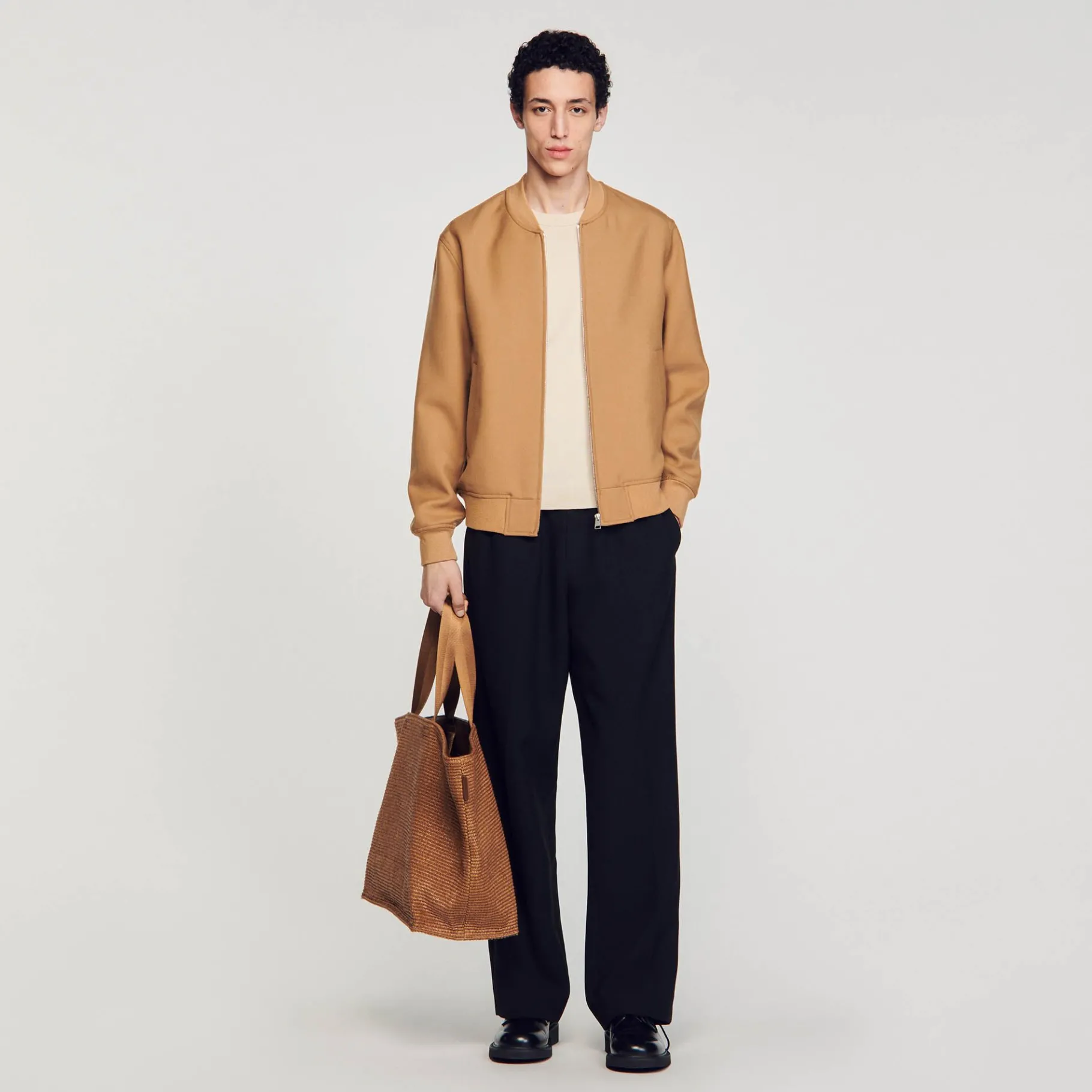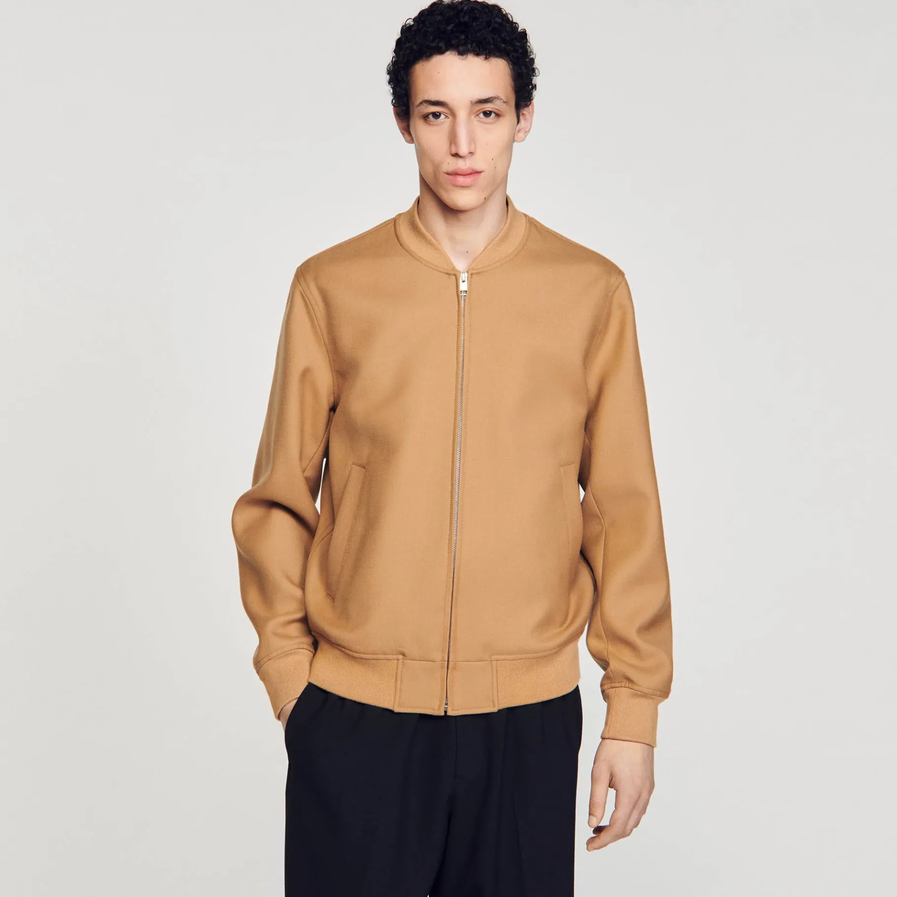Cazadora De Béisbol Con Cuello Redondo, Manga Larga, Cierre De Cremallera, Bolsillos Laterales Y Decorada Con Acabados Acanalados.