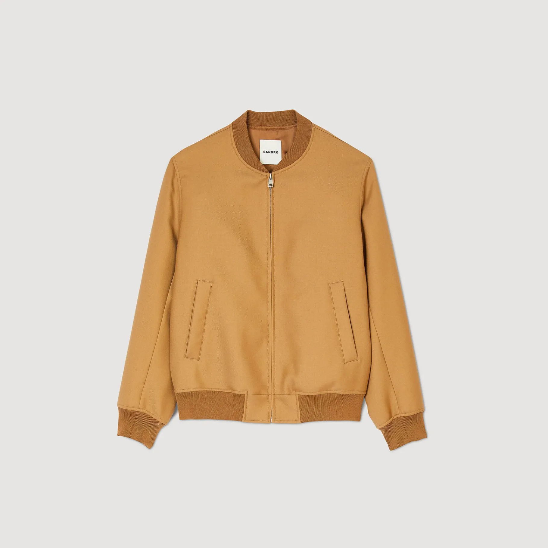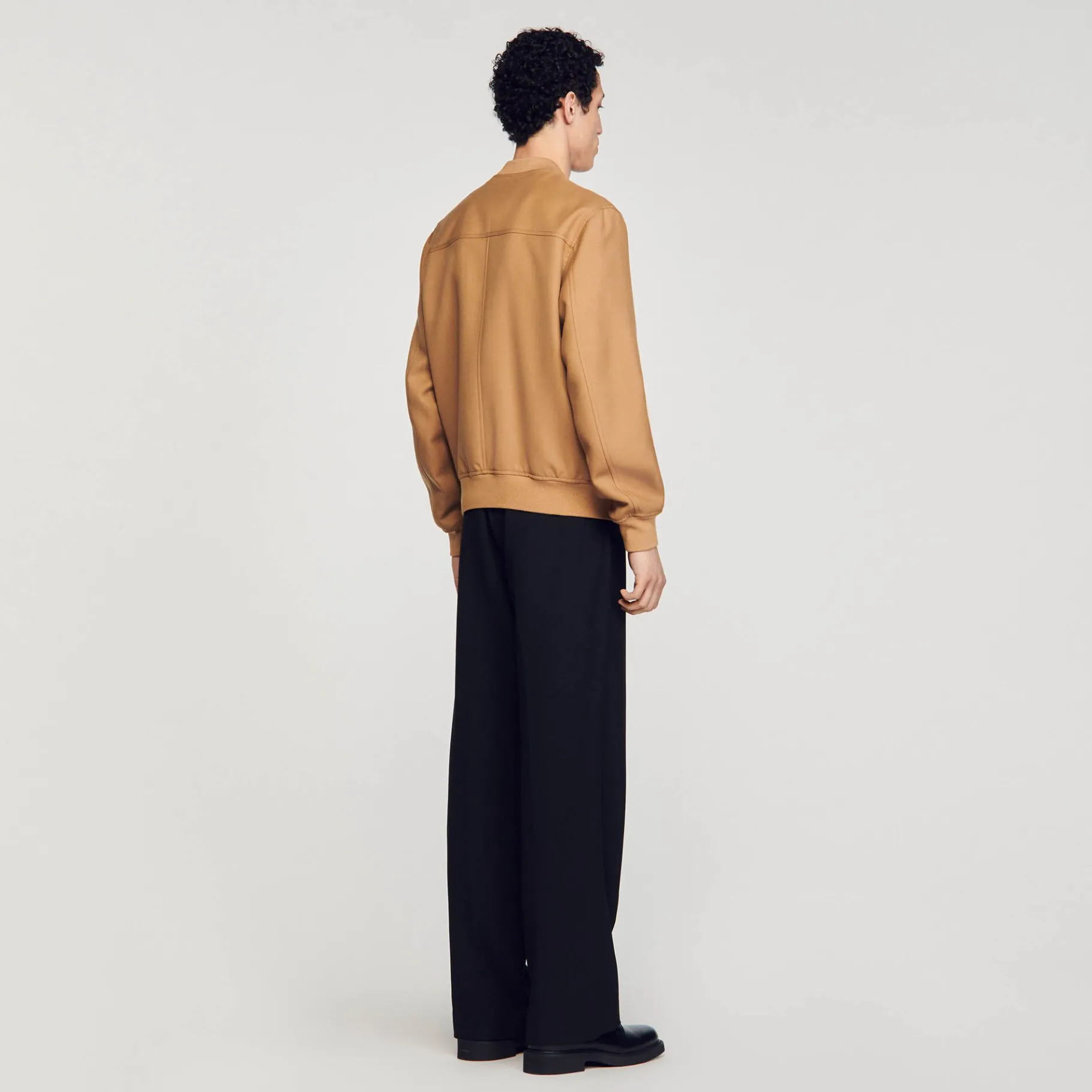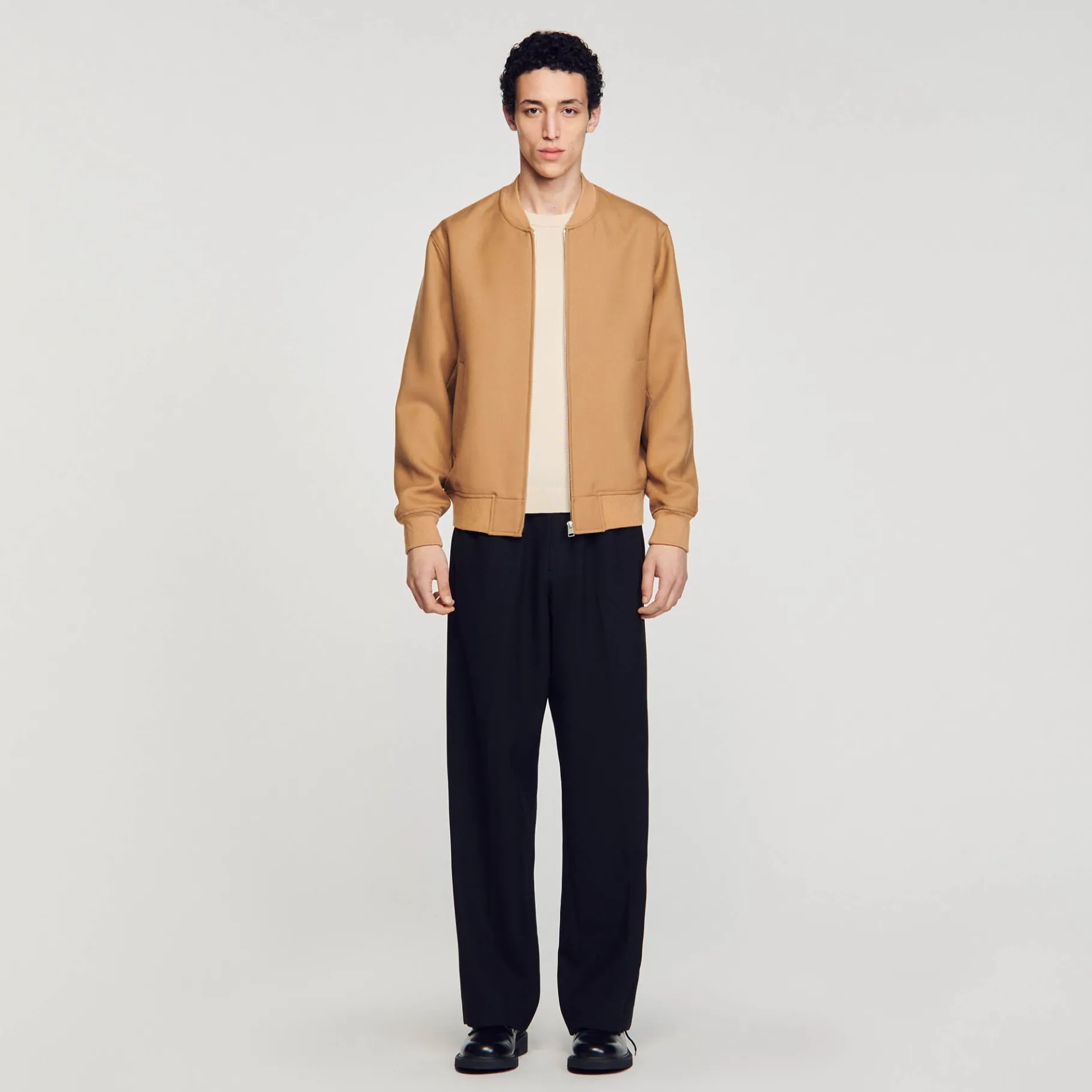 Cazadora De Béisbol Con Cuello Redondo, Manga Larga, Cierre De Cremallera, Bolsillos Laterales Y Decorada Con Acabados Acanalados.