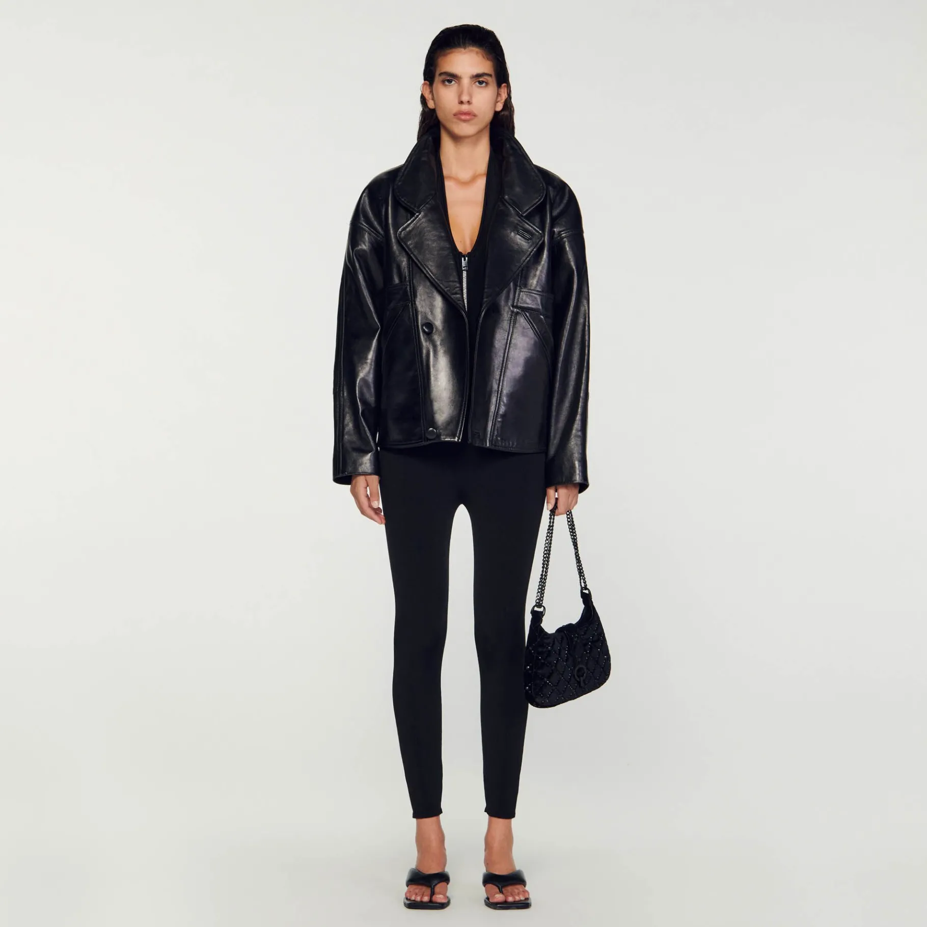 - Cazadora De Cuero Sandro Mujer