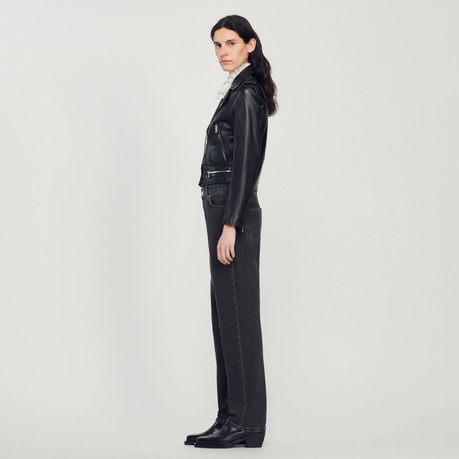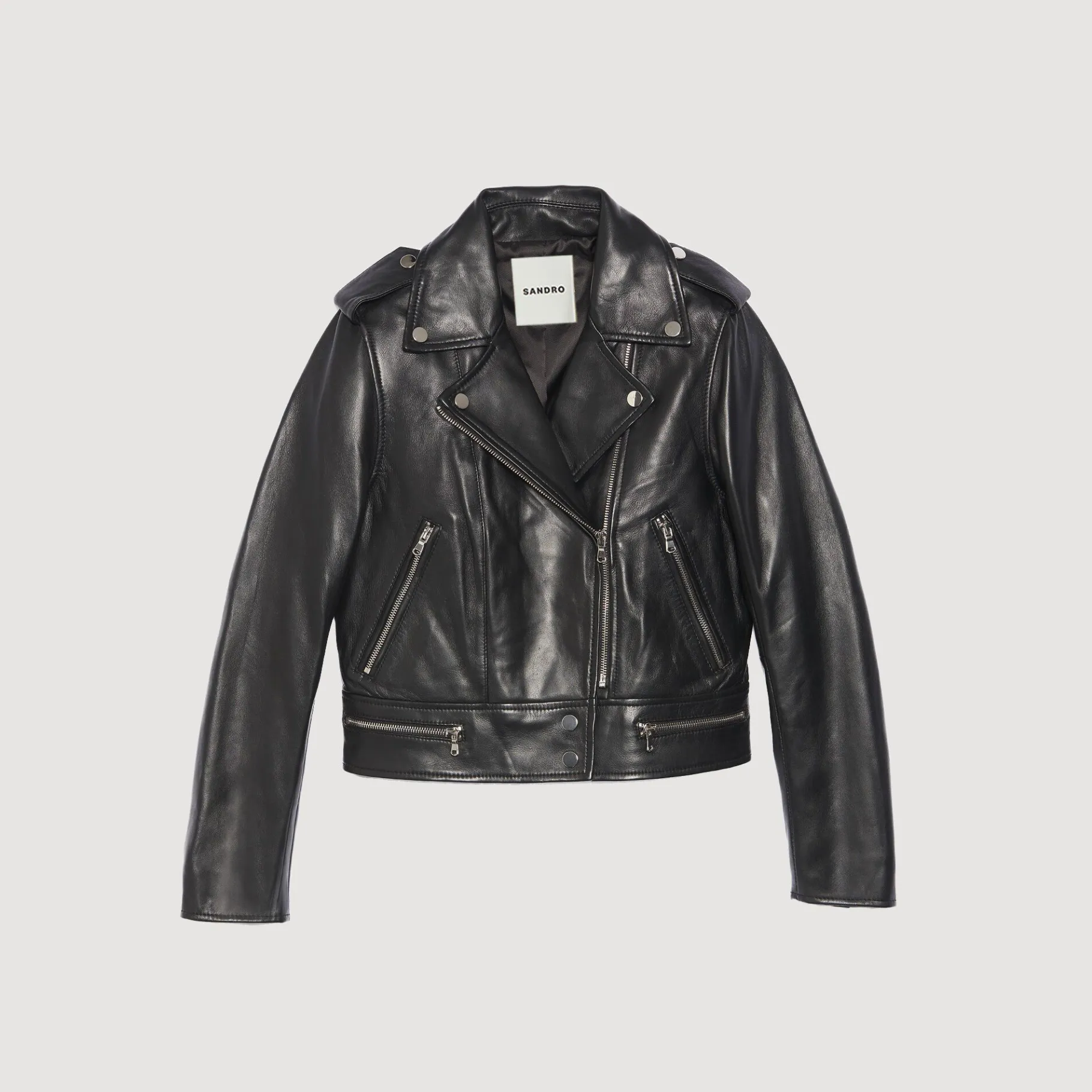 Cazadora De Mujer Sandro• Cazadora Corta De Piel Tipo Motero• Cierre De Cremallera Asimétrica• Dos Bolsillos Con …