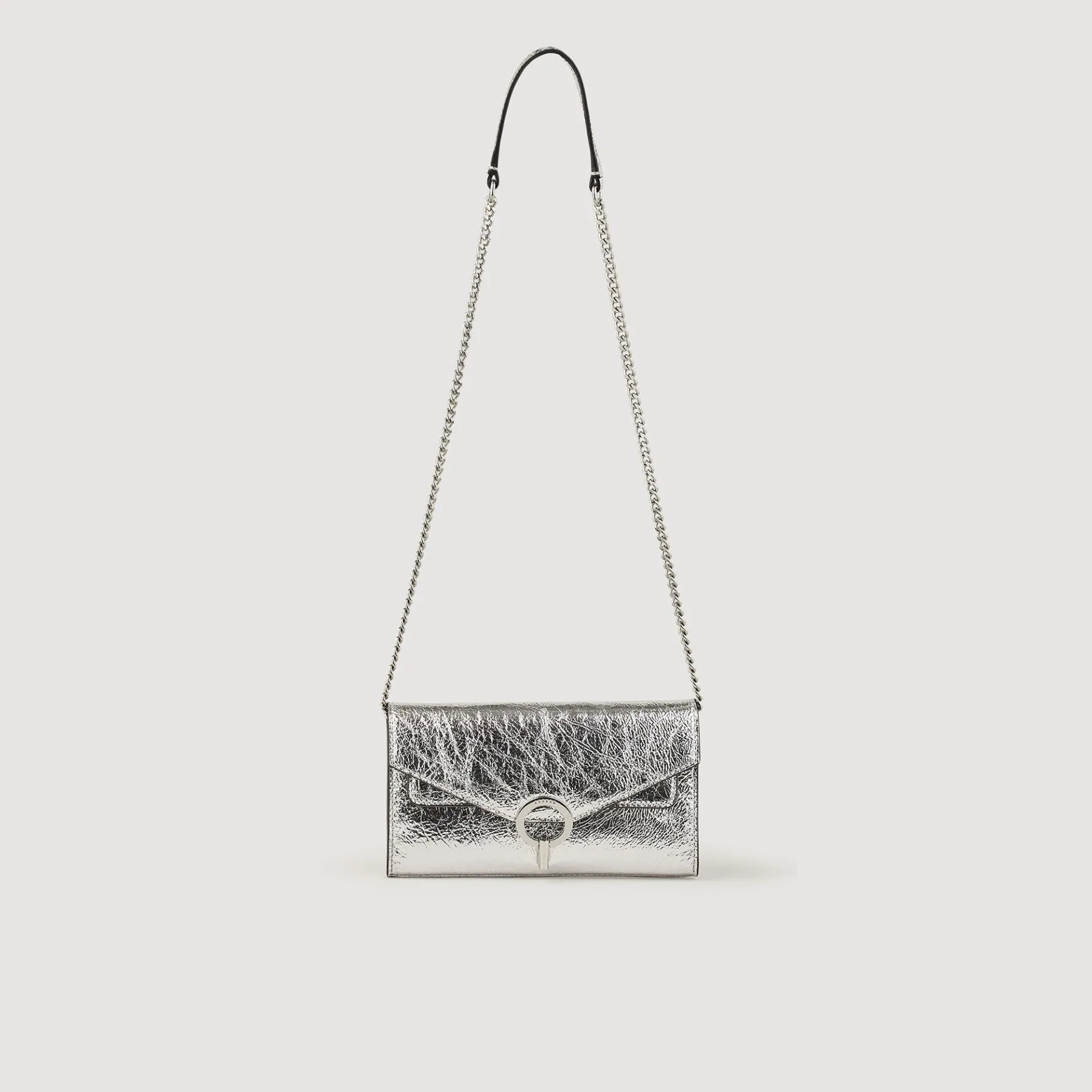El Emblemático Bolso Yza Se Reinterpreta En Una Versión De Piel Metalizada Plateada. Presenta Un Cierre Con Firma Gráfica Y Una Bandolera De Cadena, Además De Ofrecer Diferentes Formas De Llevarlo: Al Hombro, Cruzado O Como Pochette.