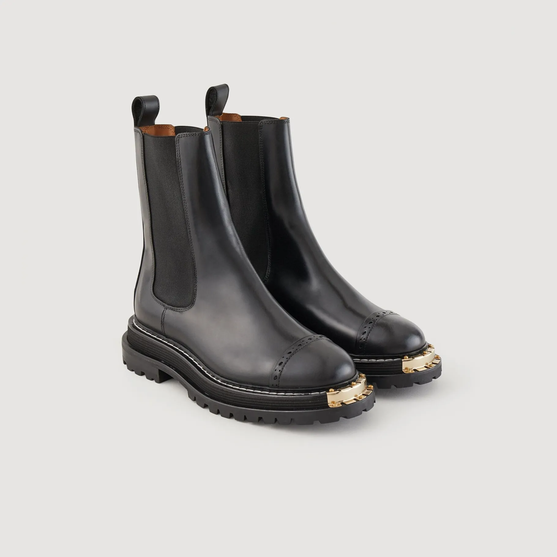 Botines De Mujer Sandro• Botines Elásticos De Piel• Corte Con Punta Floral Y Detalle Metálico• Suela Dentada• …