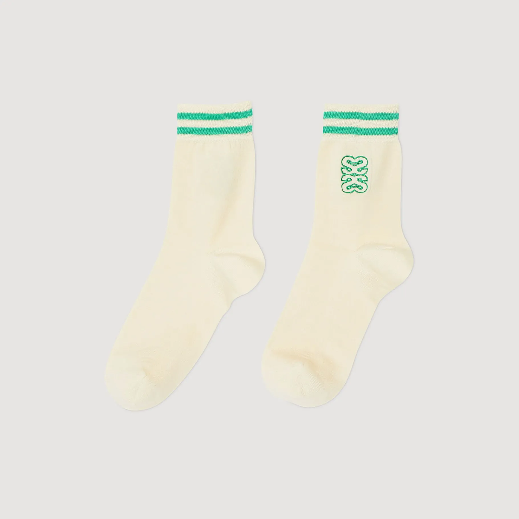 Calcetines De Canalé Decorados Con Un Logotipo De Doble S Bordado. Calcetines De Canalé Sandro Femme Logotipos Bordado…