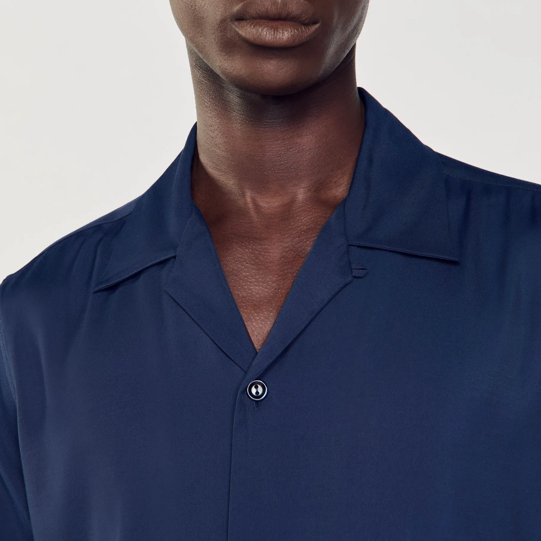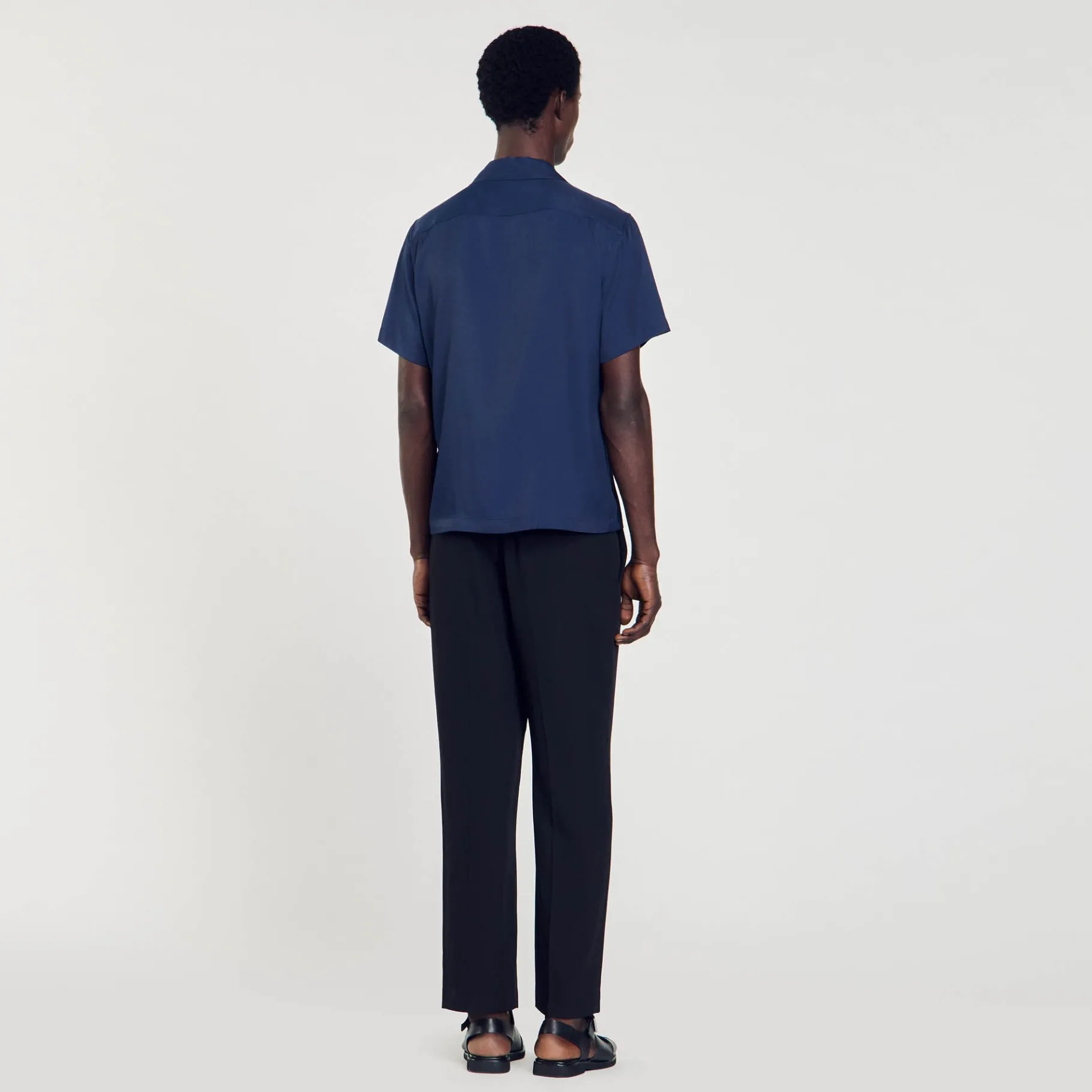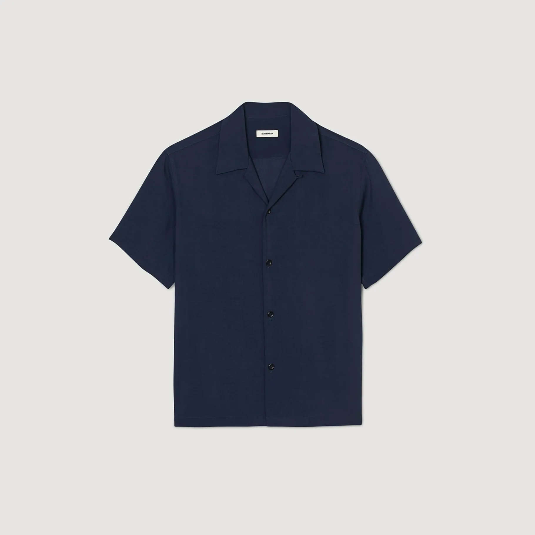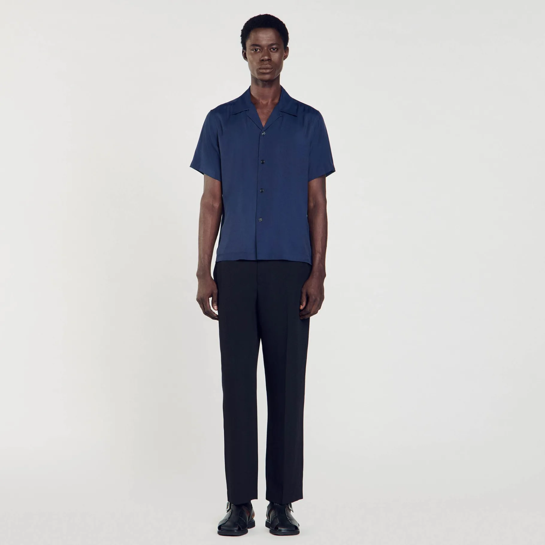 Camisa De Manga Corta Con Cuello Italiano Y Cierre De Botones. Camisa Sandro Hombre Manga Corta Cuello Italiano Cierre D…