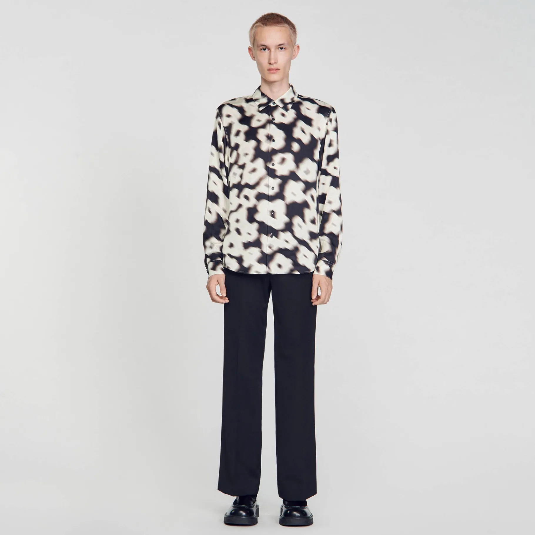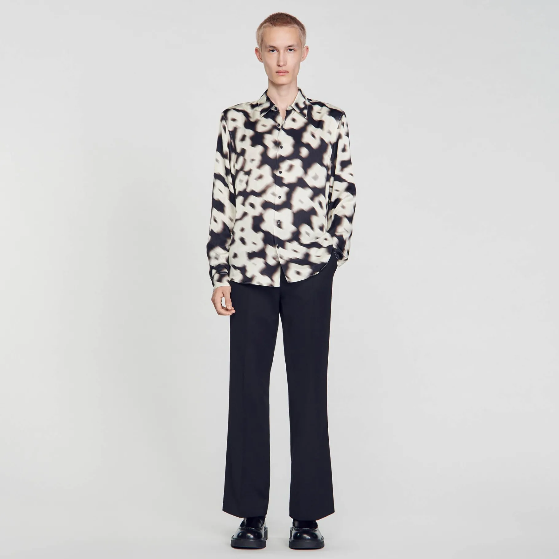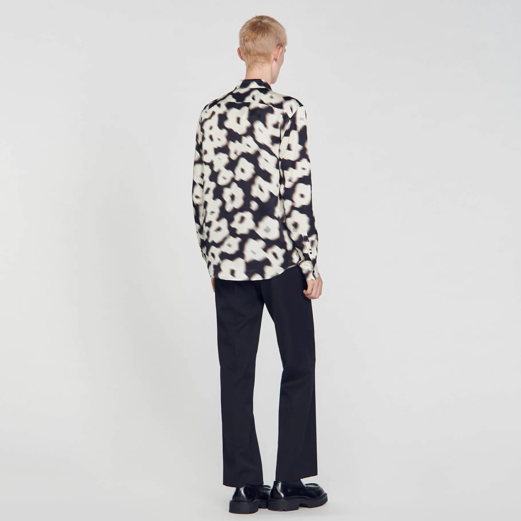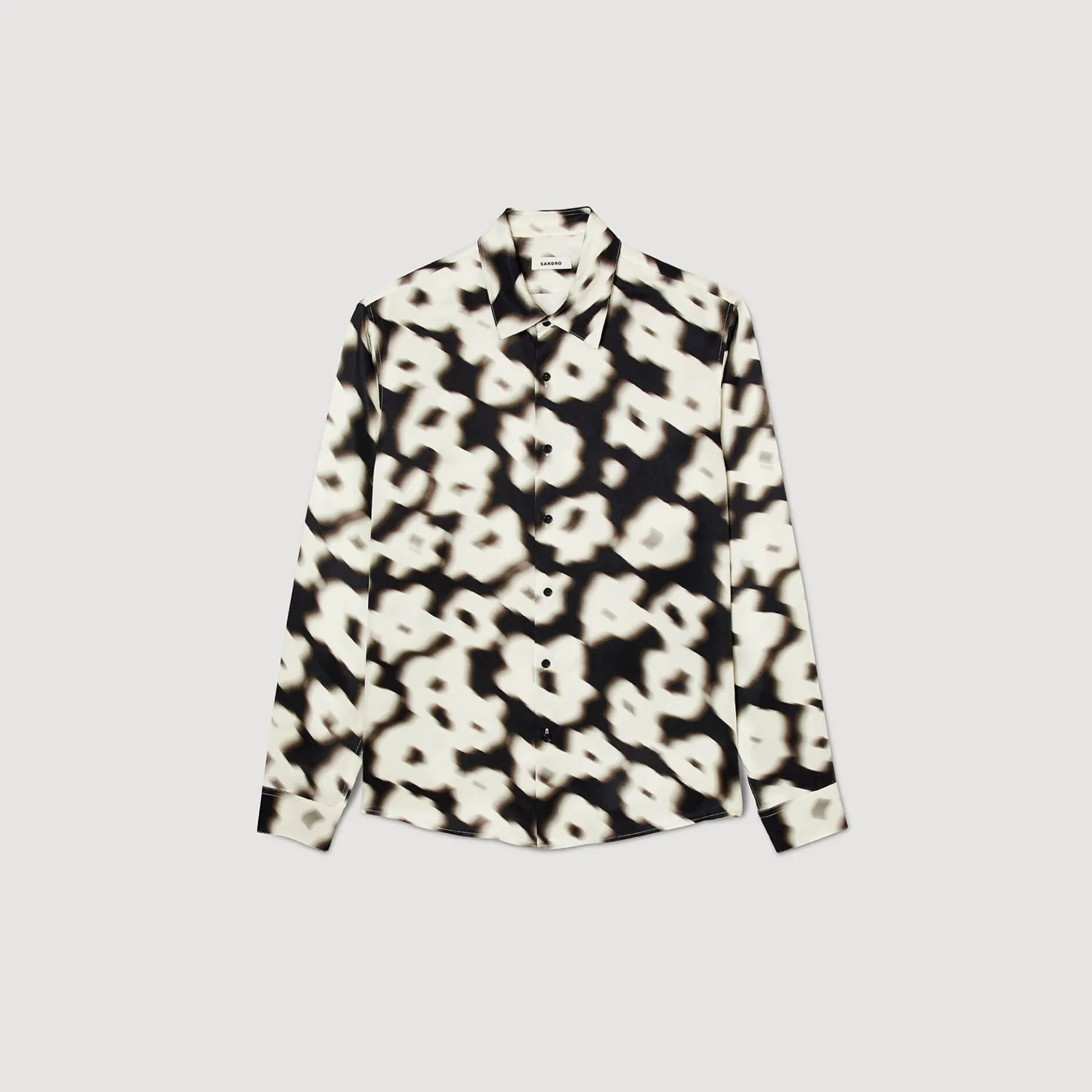 Camisa Fluida Con Cuello Con Pata, Manga Larga Y Cierre De Botones, Adornada Con Un Estampado De Flores De Efecto Difuminado.
