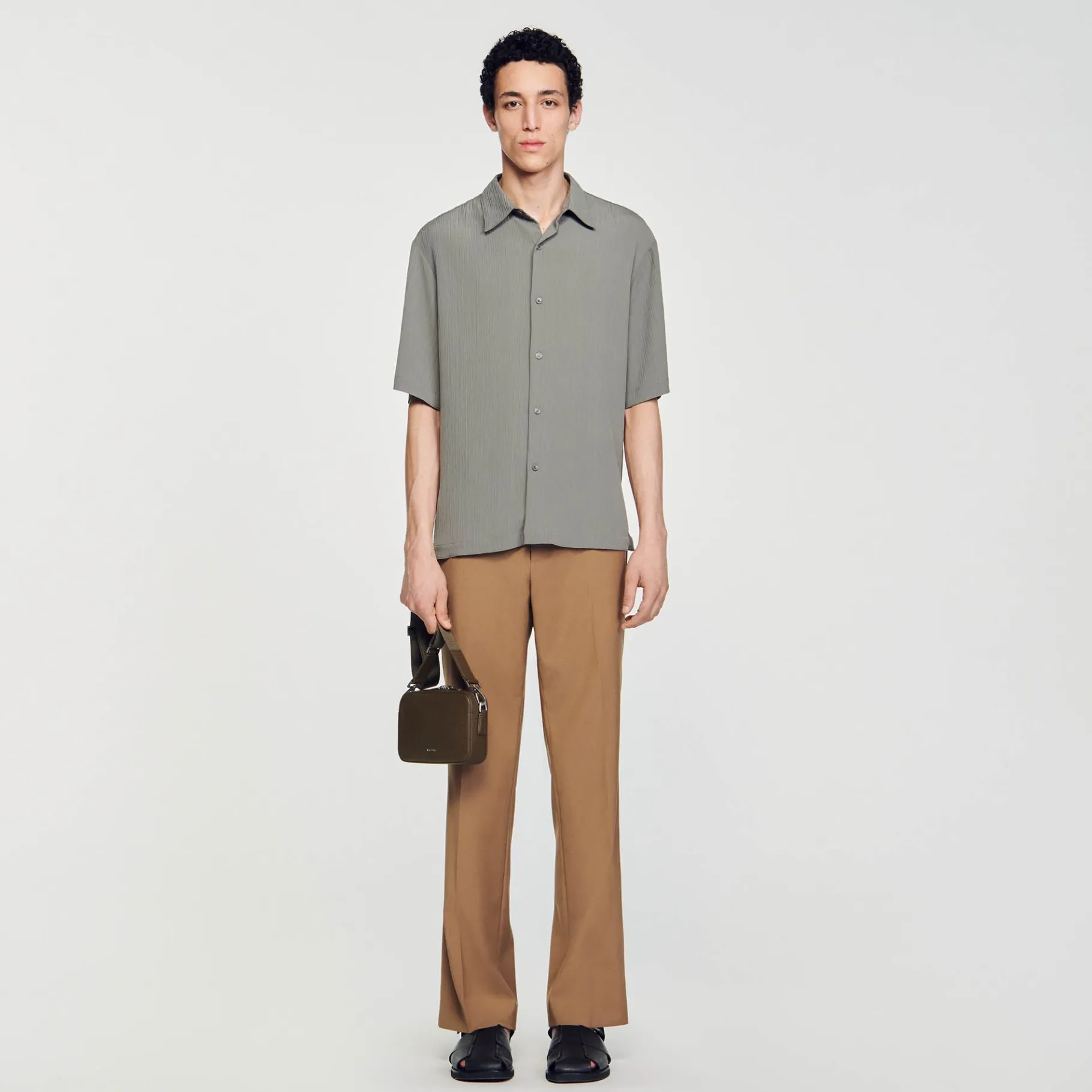 Camisa Fluida Y Sobredimensionada De Material Plisado, Con Manga Corta, Cuello Clásico Y Cierre De Botones De Presión.