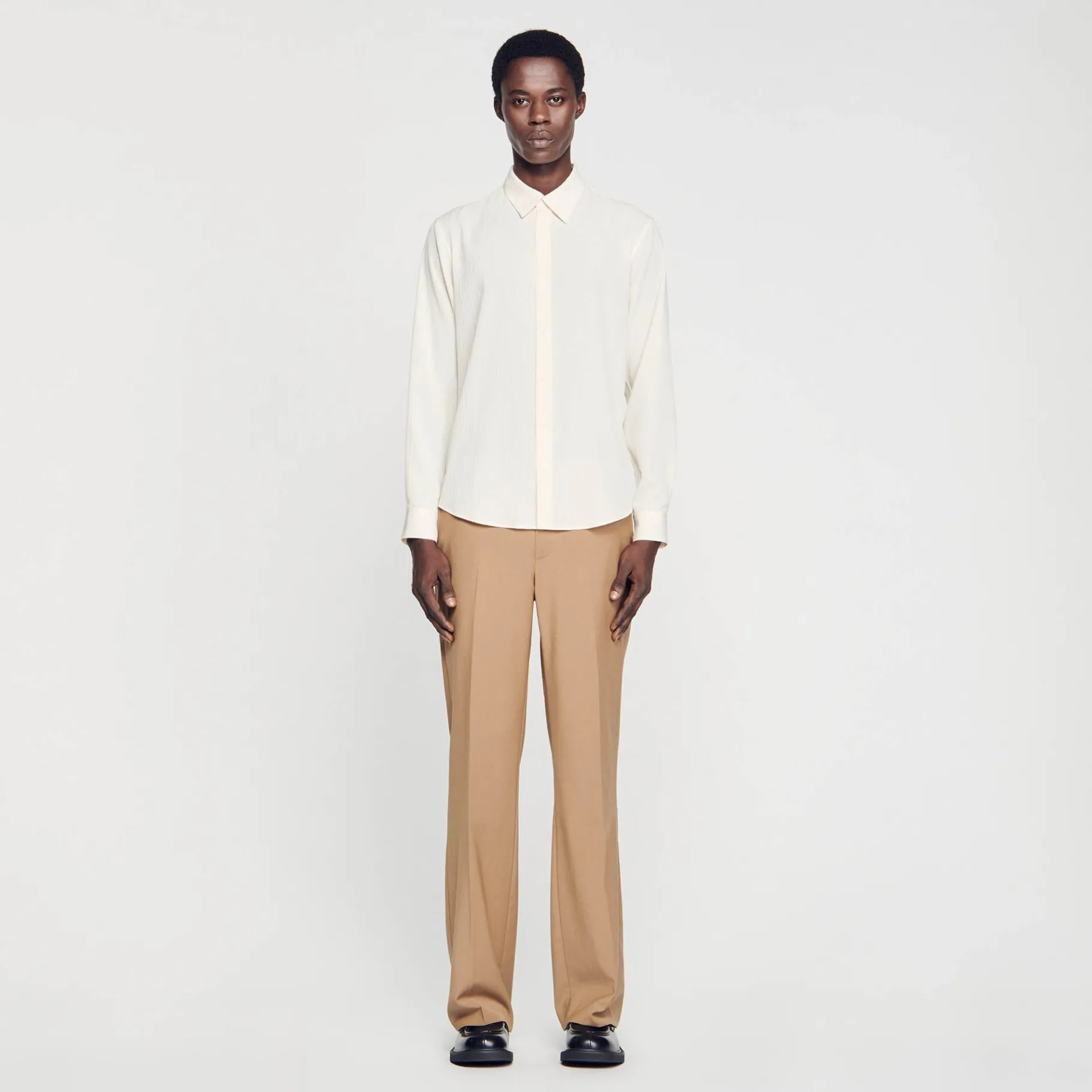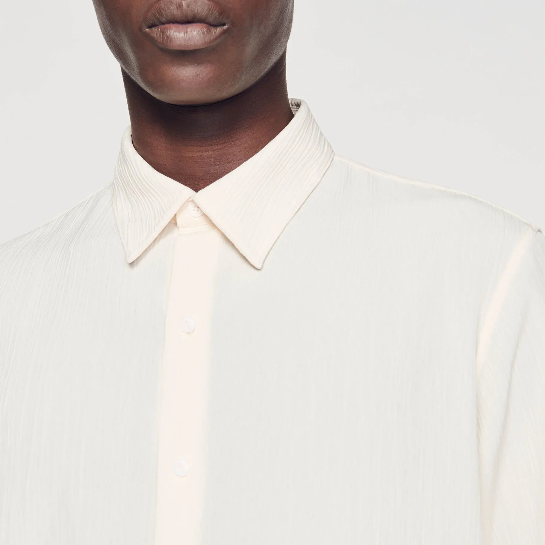 Camisa Fluida Plisada Con Mangas Largas, Puños Abotonados Y Un Cierre De Botones. Camisa Fluida Sandro Homme Cuello De …