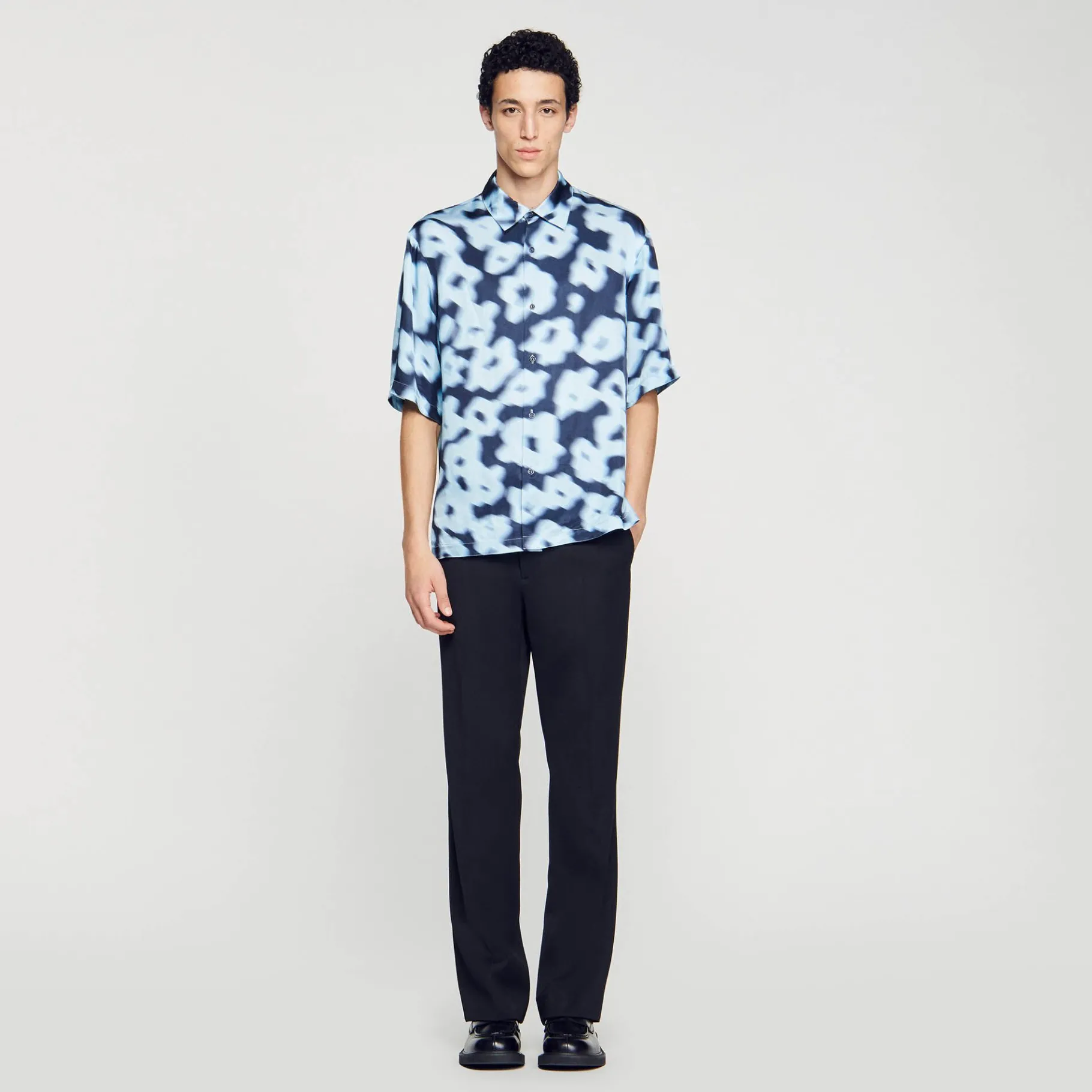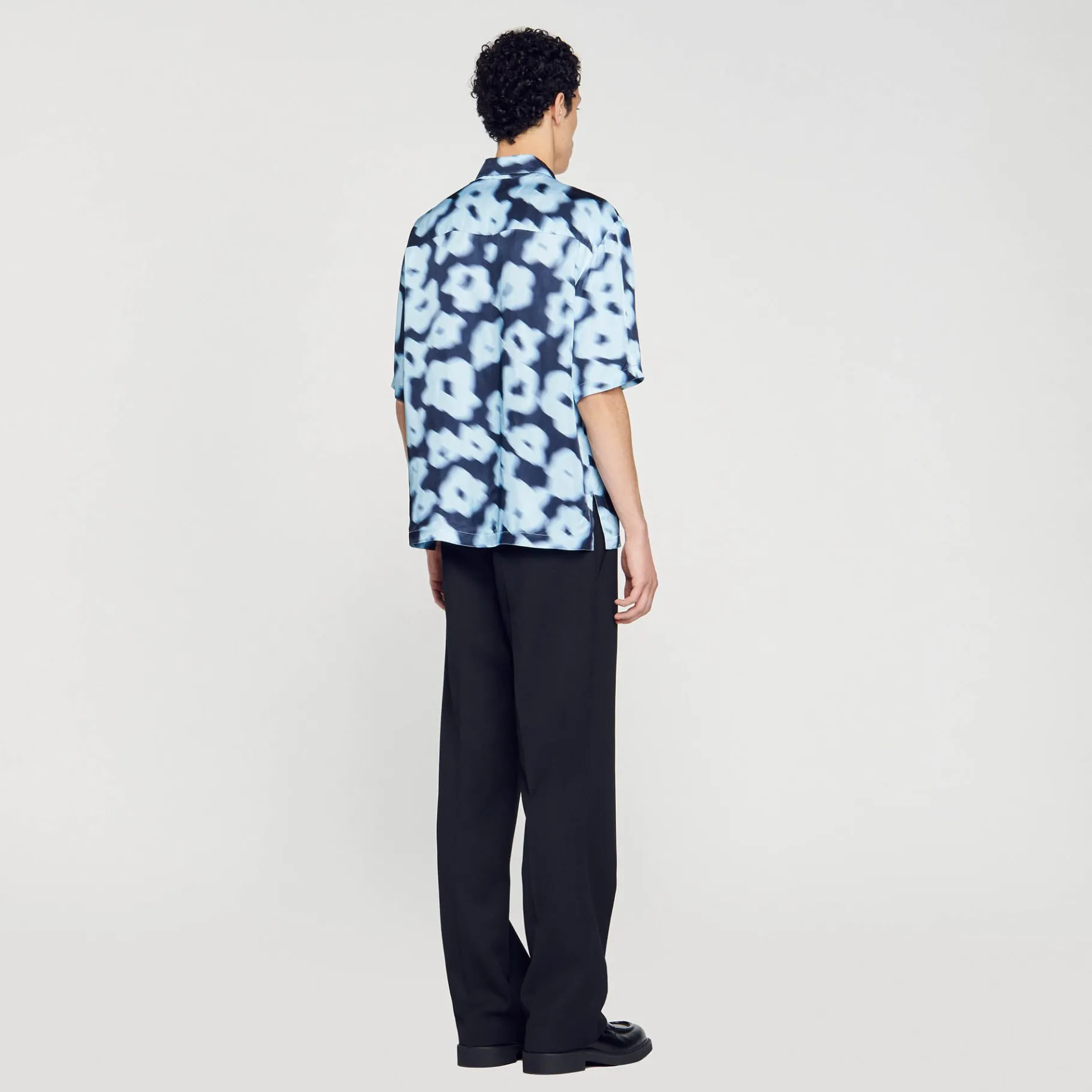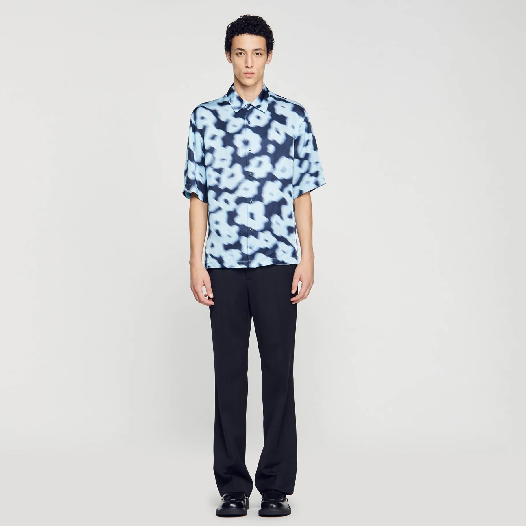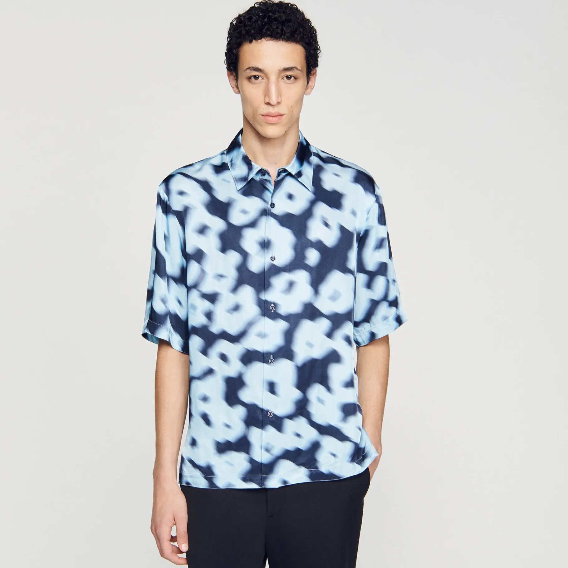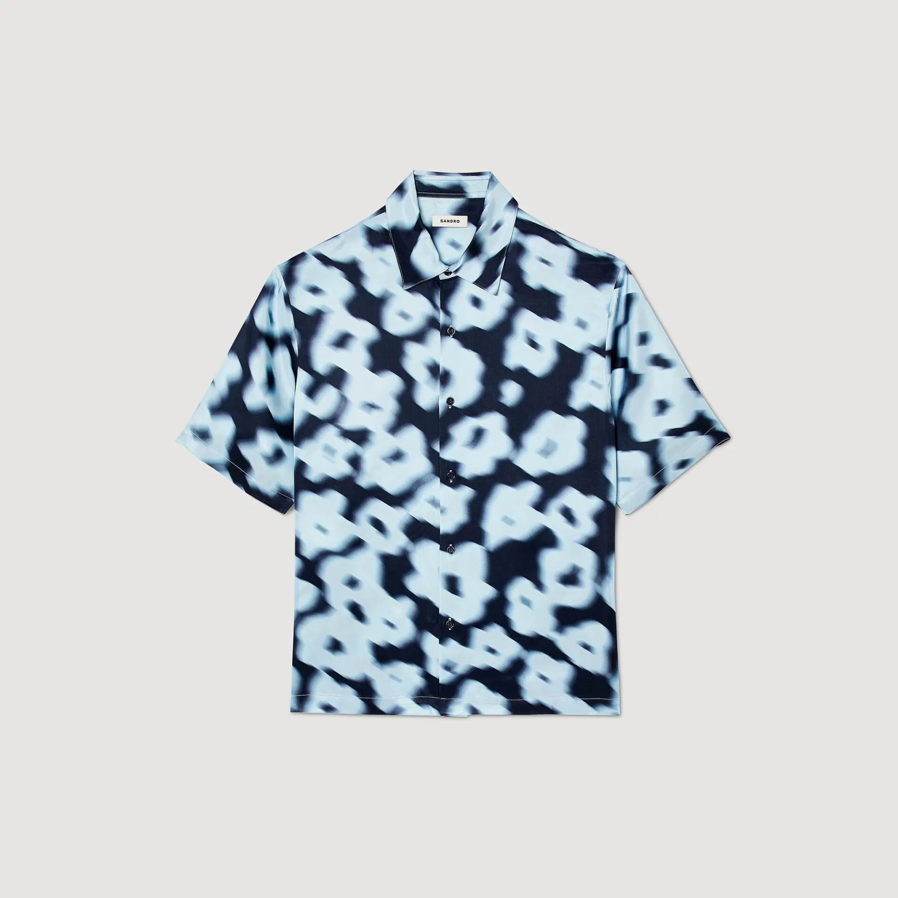 Camisa Oversize Con Estampado De Flores De Efecto Difuminado, Con Un Cuello Con Pata, Un Cierre Con Botones Y Mangas Cortas.
