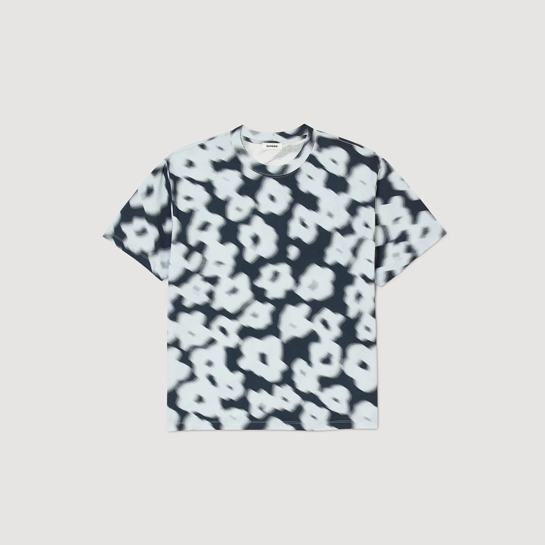 Camiseta De Algodón Con Cuello Redondo Clásico, Manga Corta Y Decorada Con Un Estampado De Flores Difuminadas.