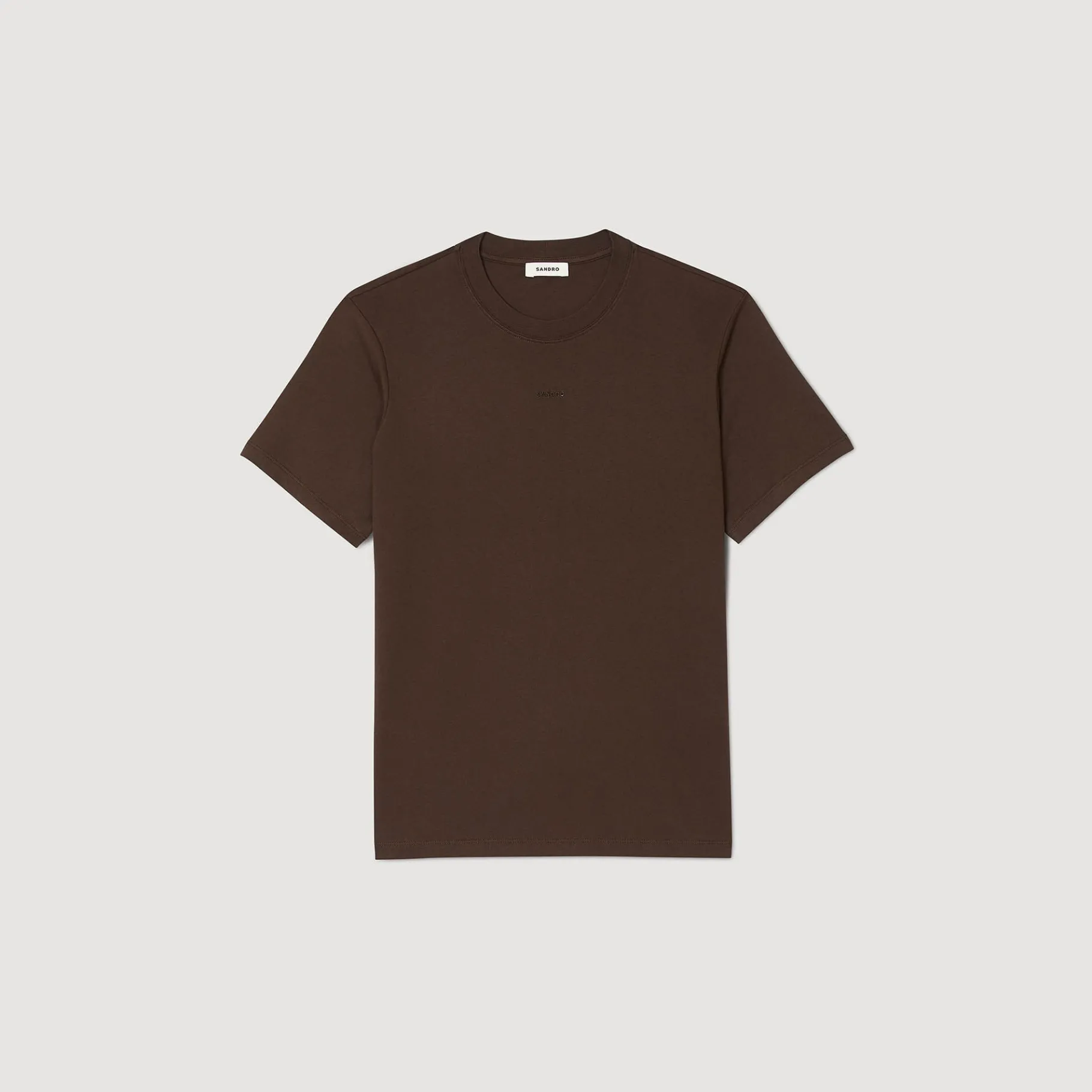 Camiseta De Cuello Redondo Y Manga Corta Con Un Bordado Sandro. Camiseta Sandro Hombre Cuello Redondo De Canalé Manga C…