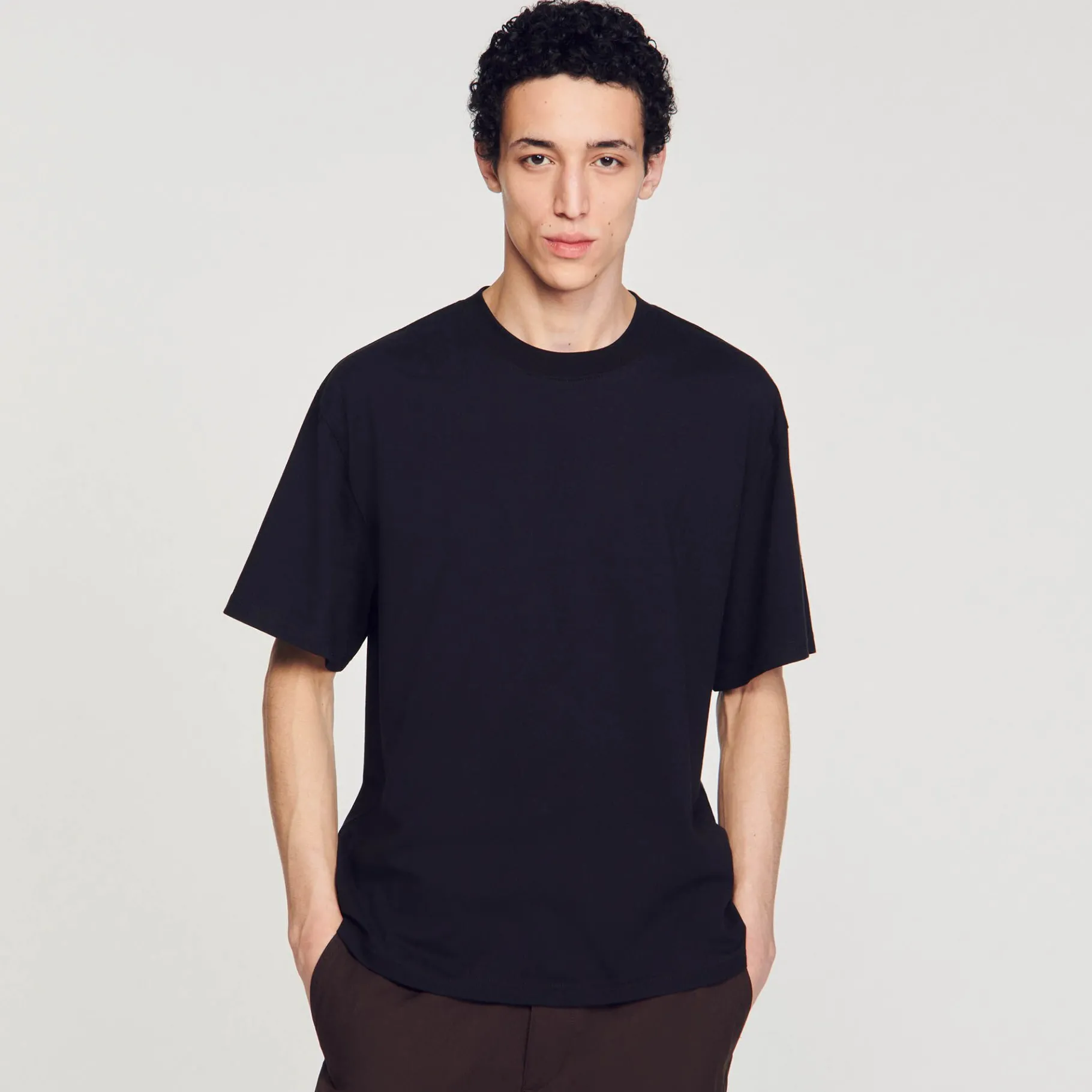 Camiseta Sobredimensionada De Algodón Con Cuello Redondo Y Manga Corta. Camiseta De Algodón Sandro Homme Cuello Redond…