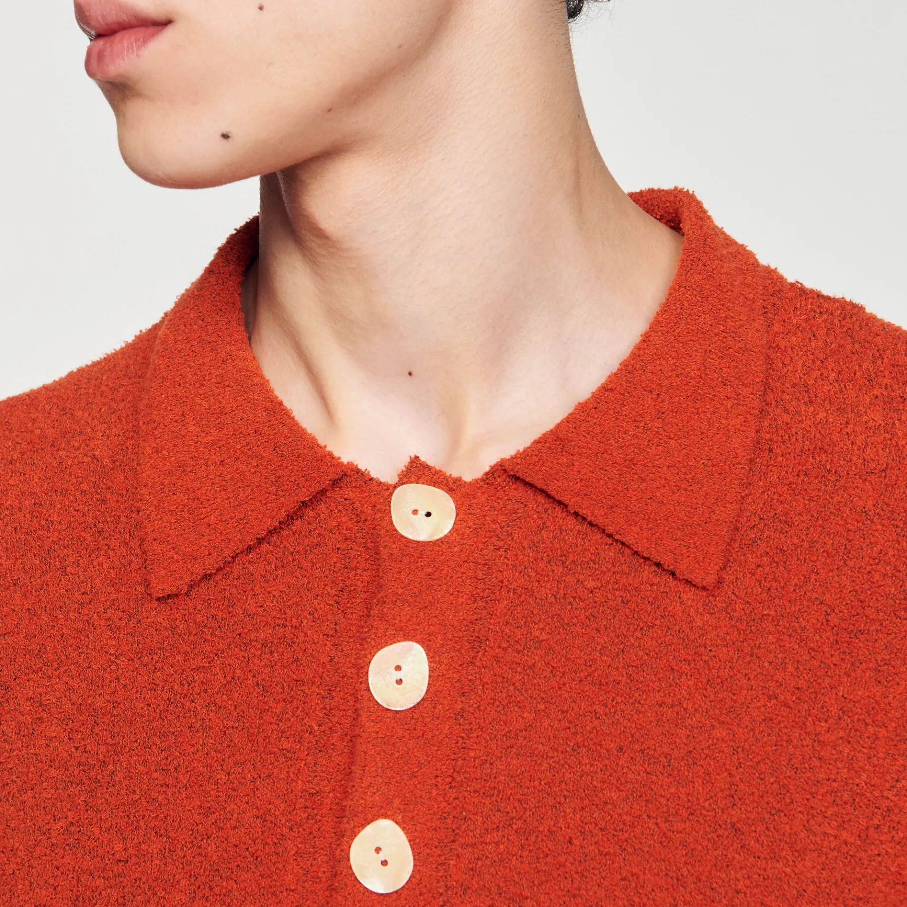 Polo De Punto Efecto Rizo Con Cuello Abotonado Y Mangas Cortas. Polo De Punto Efecto Rizo Sandro Homme Ajuste Italiano C…