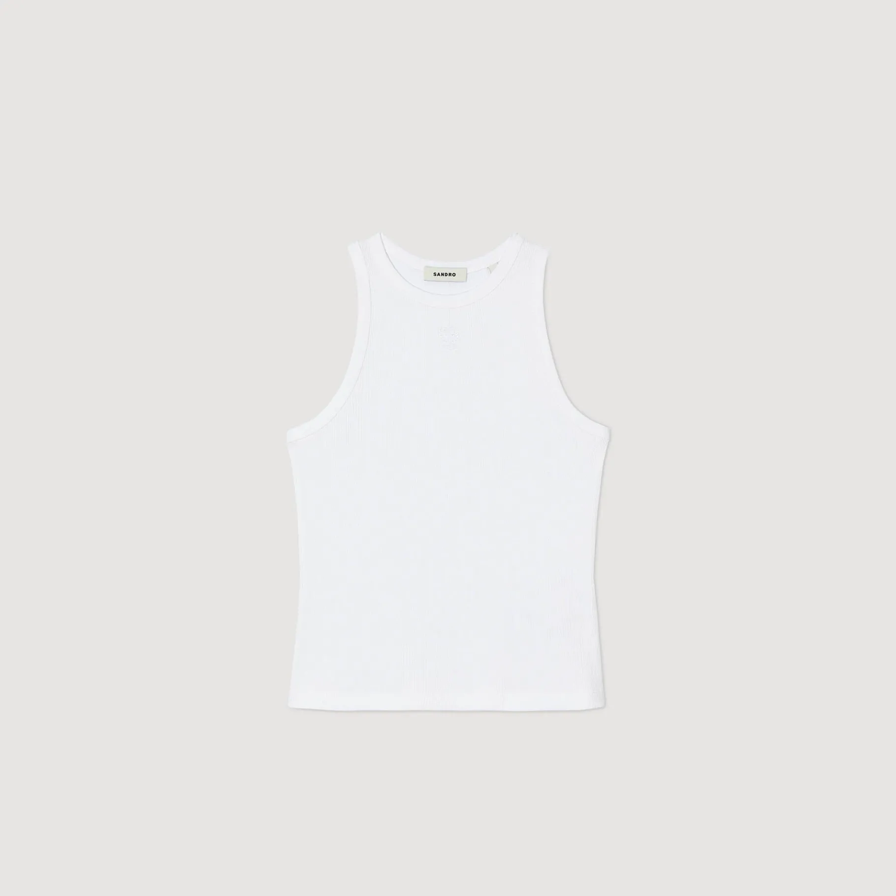 Camiseta Sin Mangas Con Cuello Redondo, Sisas Americanas Y Detalle De Bordado En El Pecho. Camiseta Sin Mangas Sandro Mu…