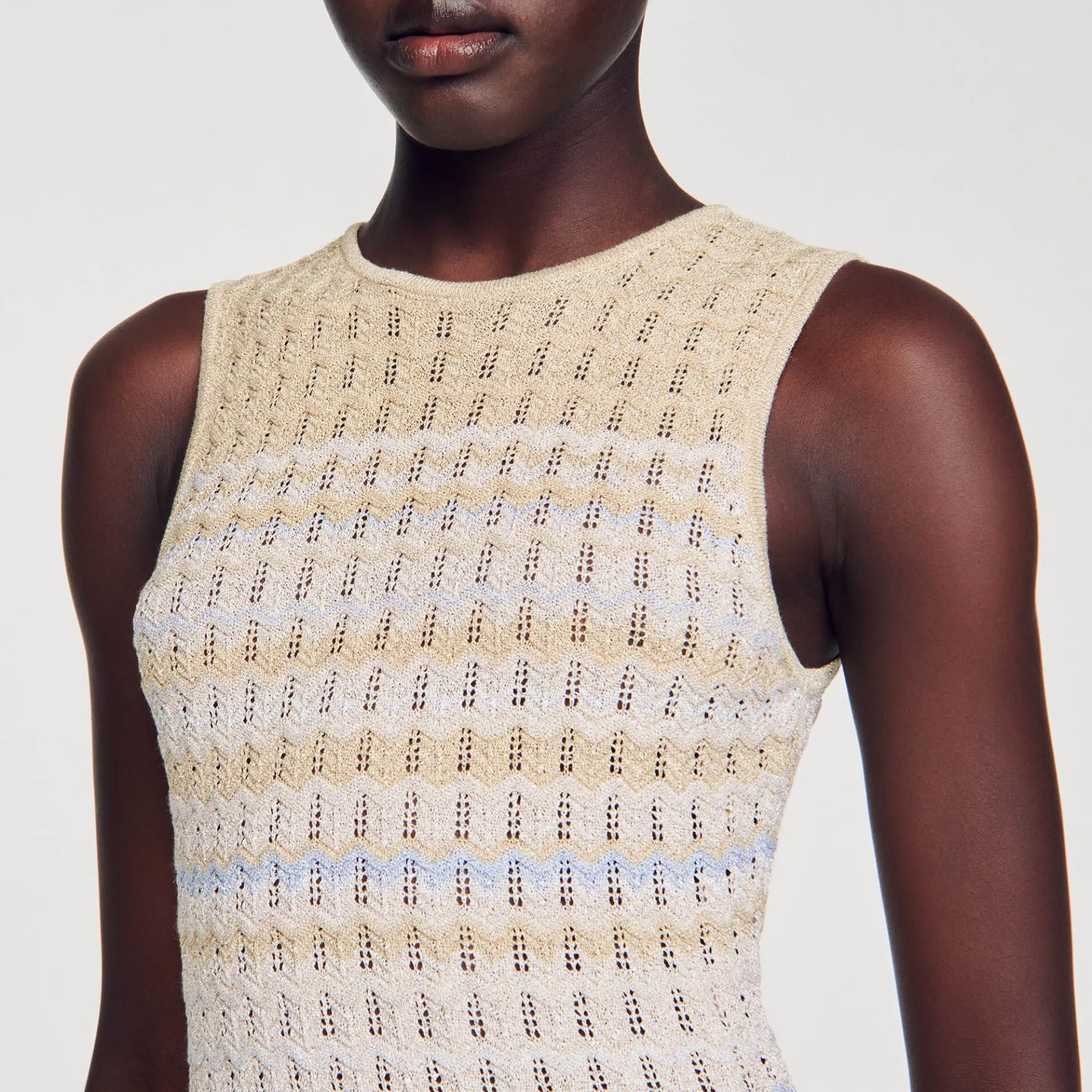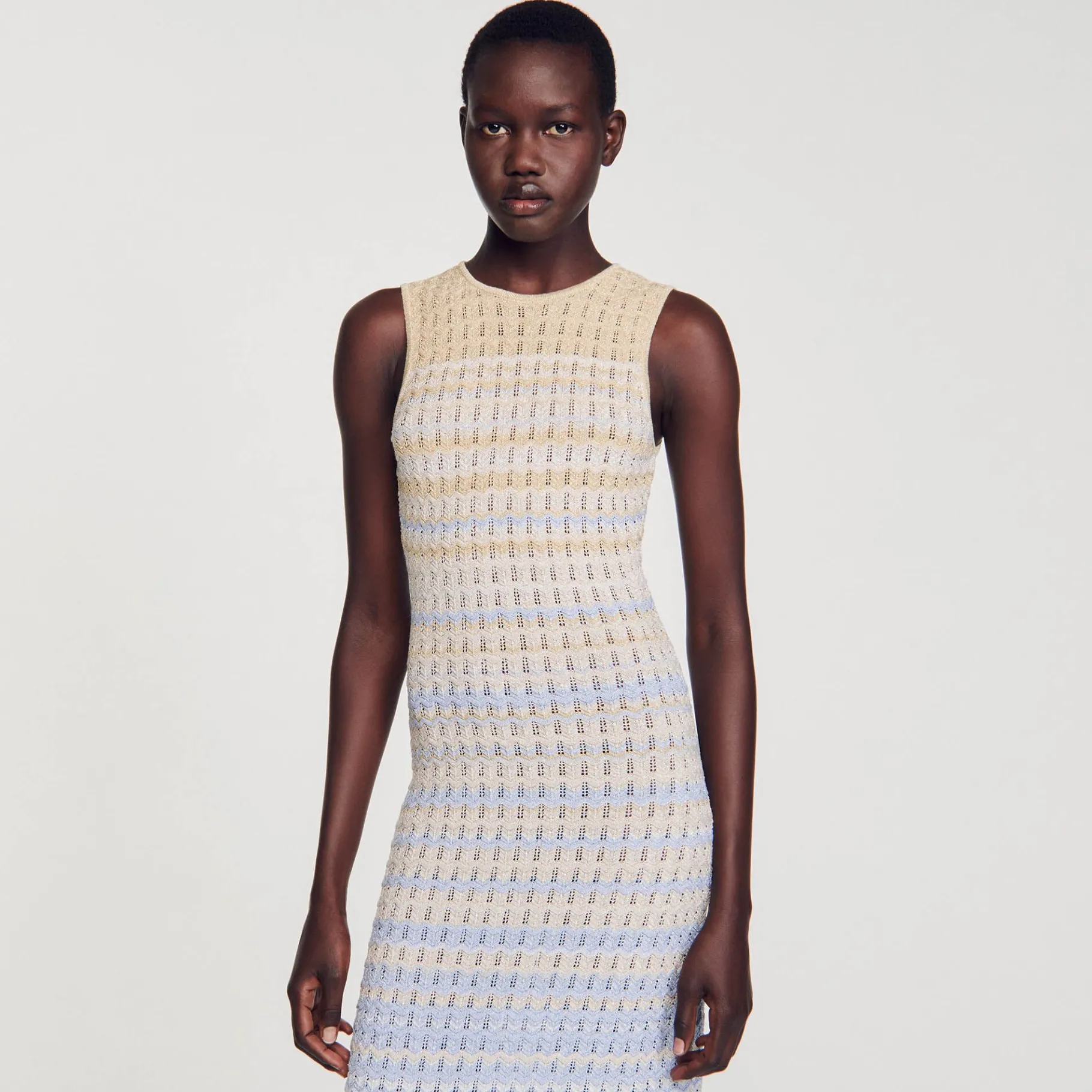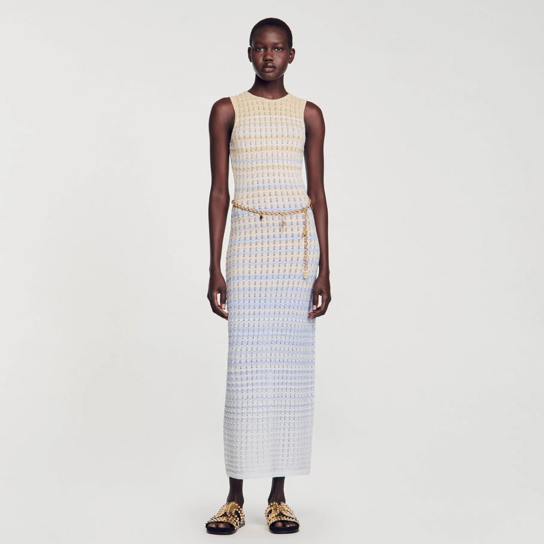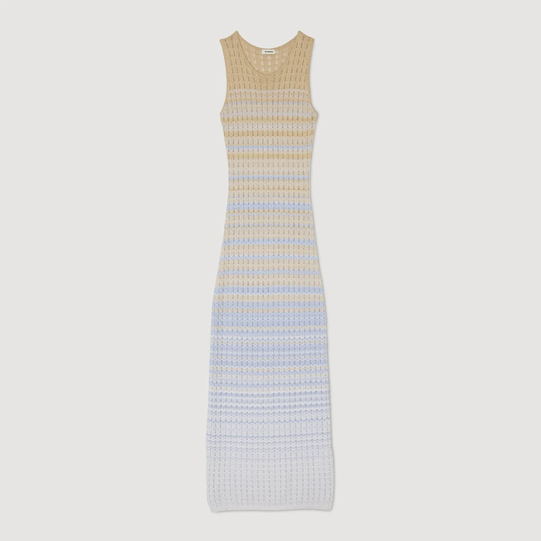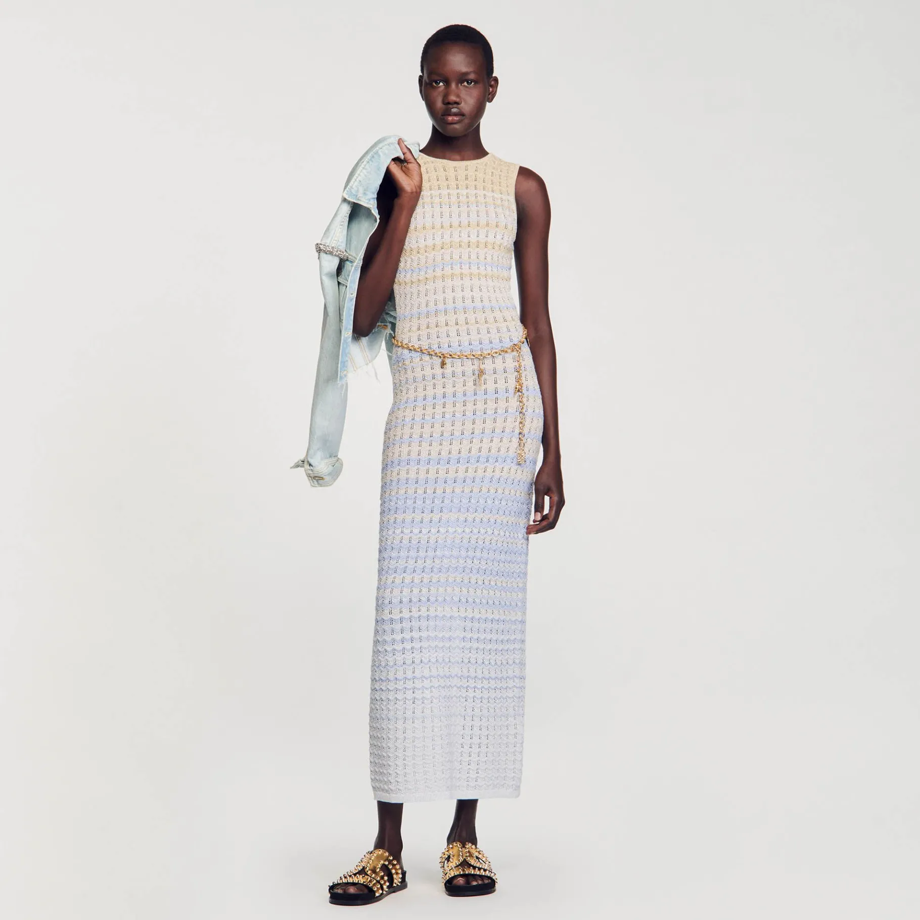 Vestido Largo Sin Mangas De Punto Pointelle Degradado Con Un Cuello Redondo. Vestido Largo De Punto Pointelle Sandro Fem…