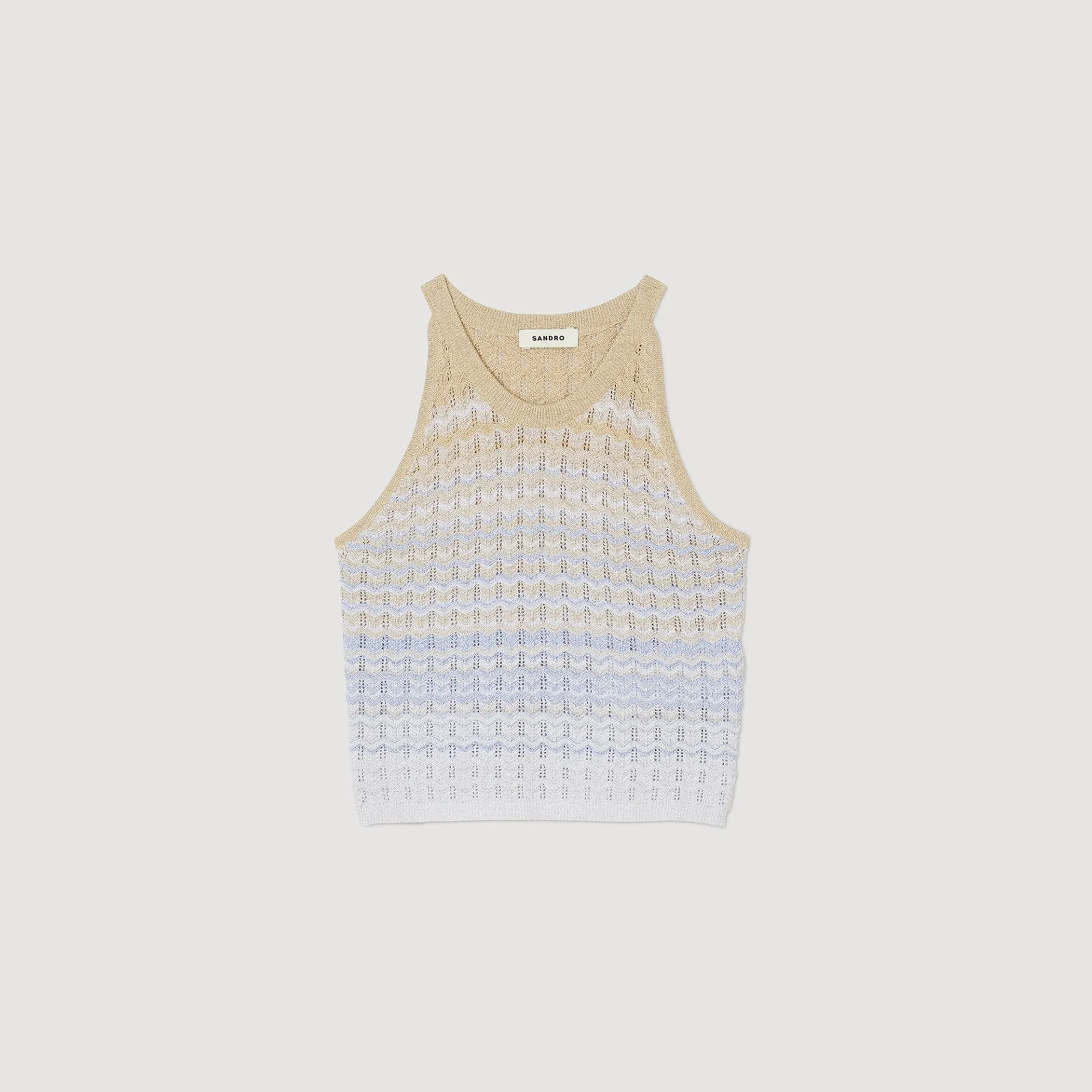 Top Corto De Punto Pointelle Degradado Con Motivos En Zigzag, Sisas Americanas Y Cuello Redondo.