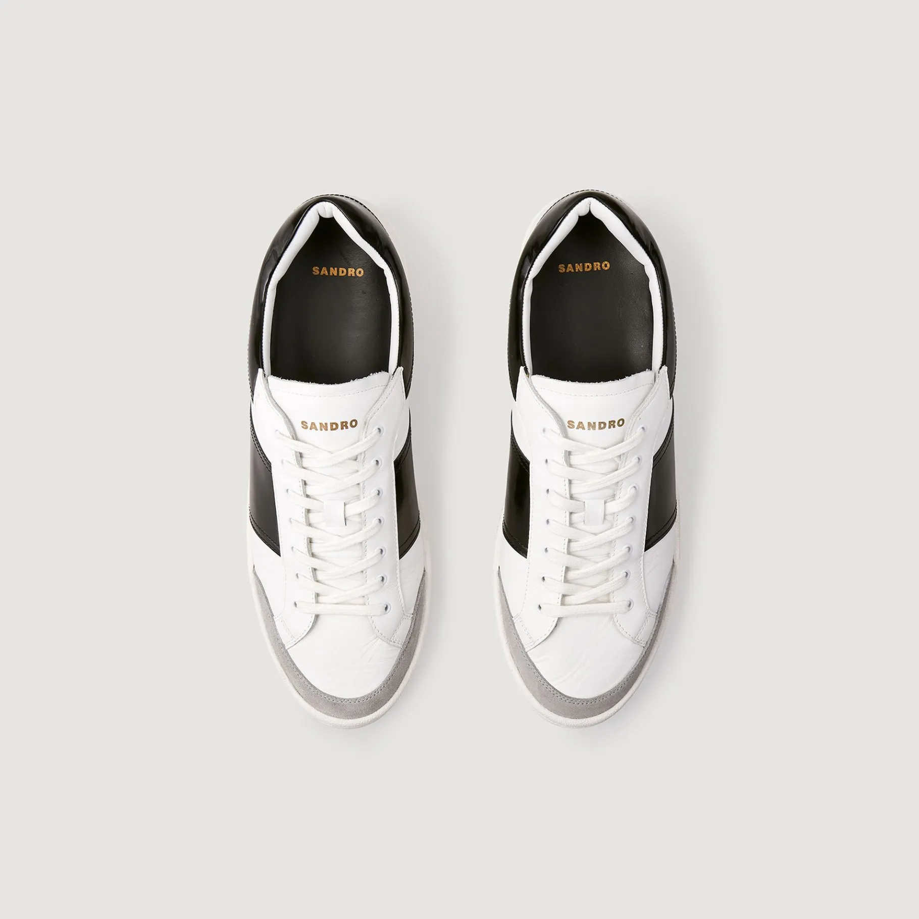 Deportivas Ligeramente Subidas De Estilo Vintage De Cuero, Con Detalle De Apliques En Contraste De Charol En El Tobillo Y En Los Laterales, Aplique De Ante En La Parte Delantera, Cordones En Los Mismos Tonos Y Suela De Goma Con El Logotipo Sandro En Relieve EN El Lateral.