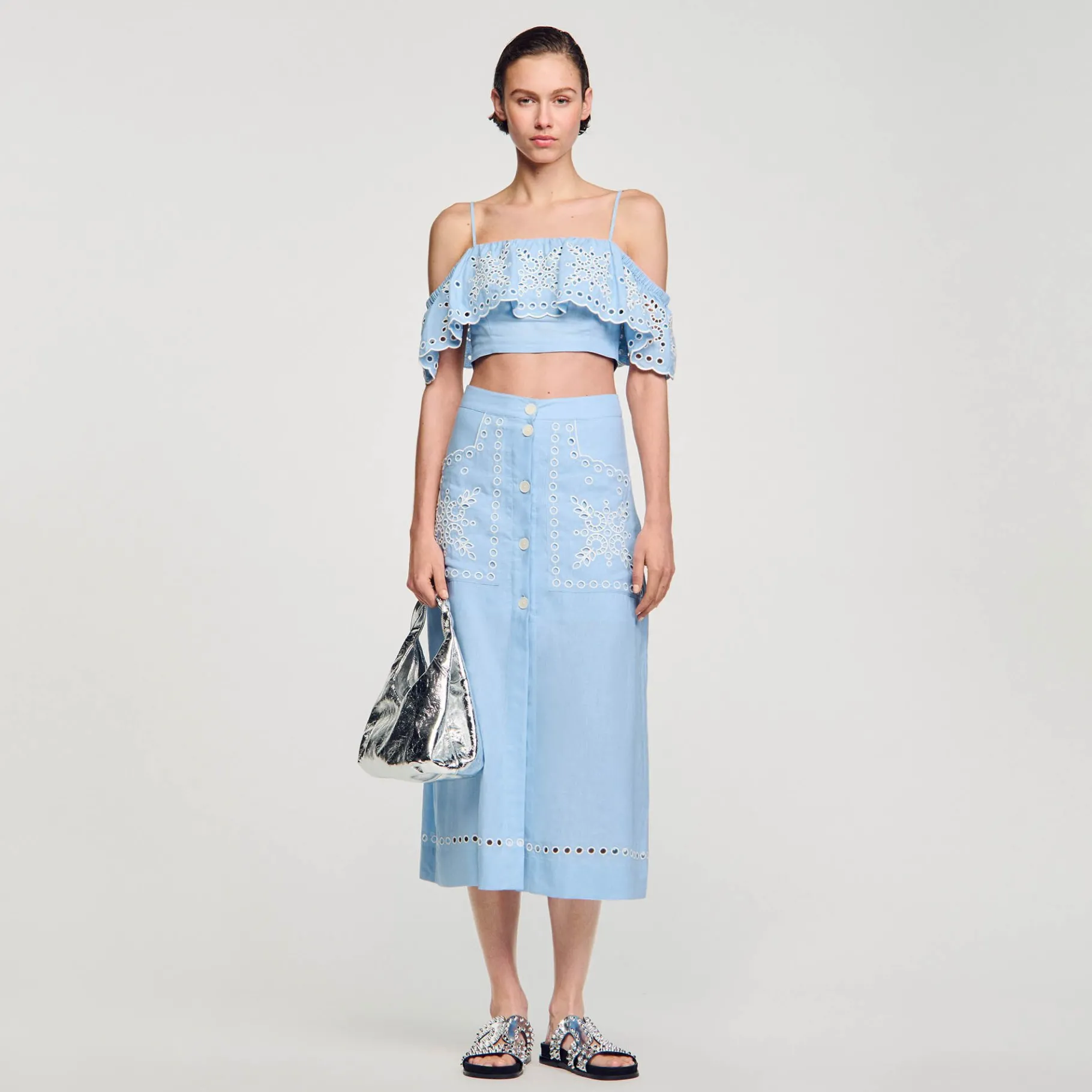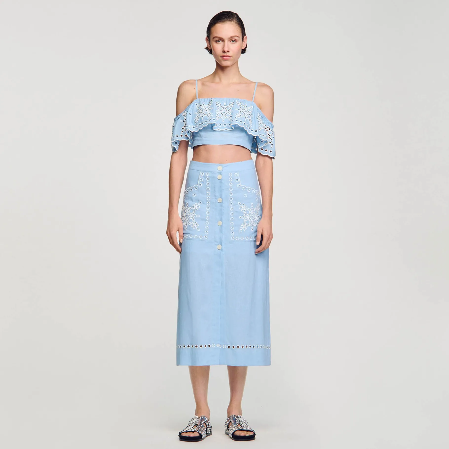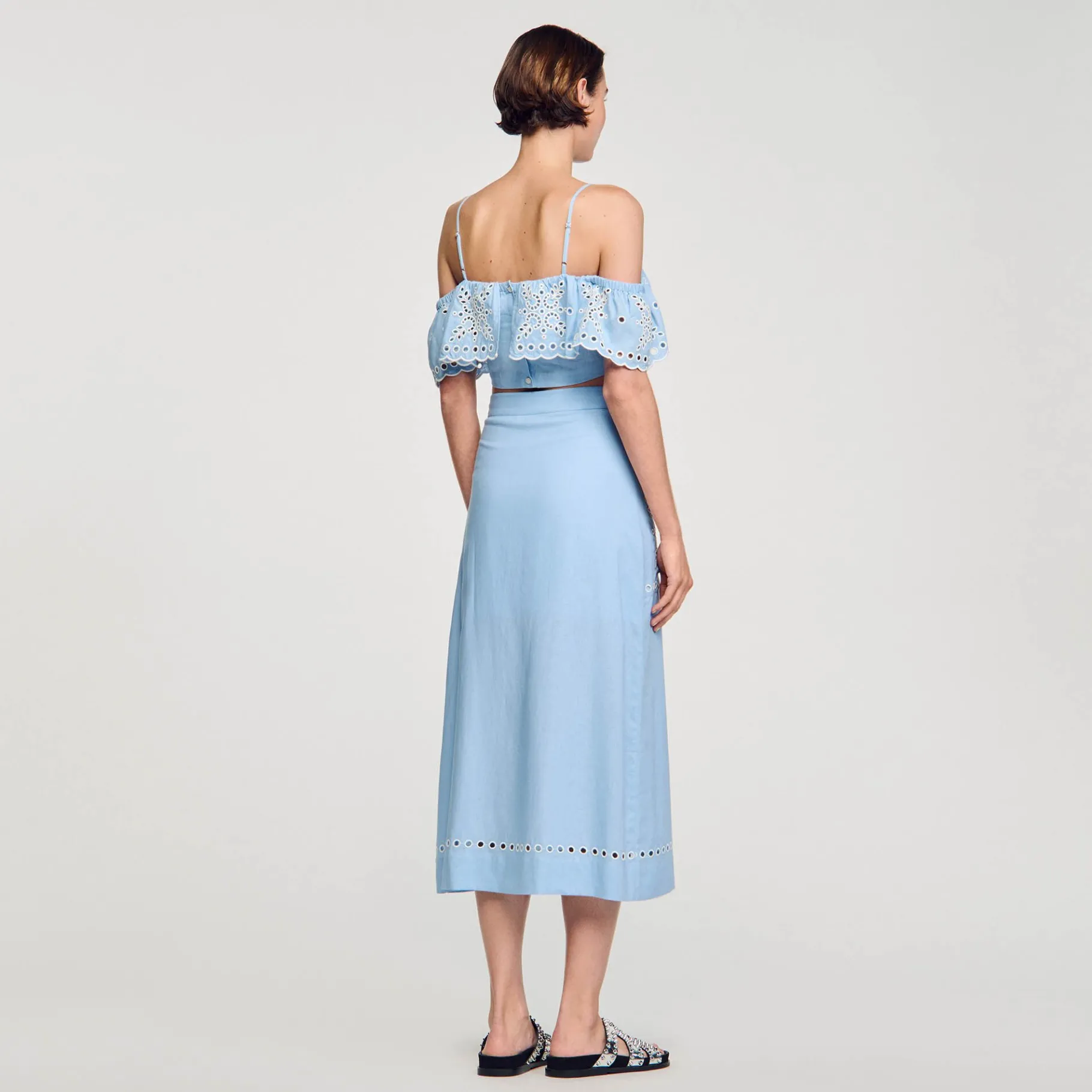 - Falda Larga Bordada Sandro Mujer