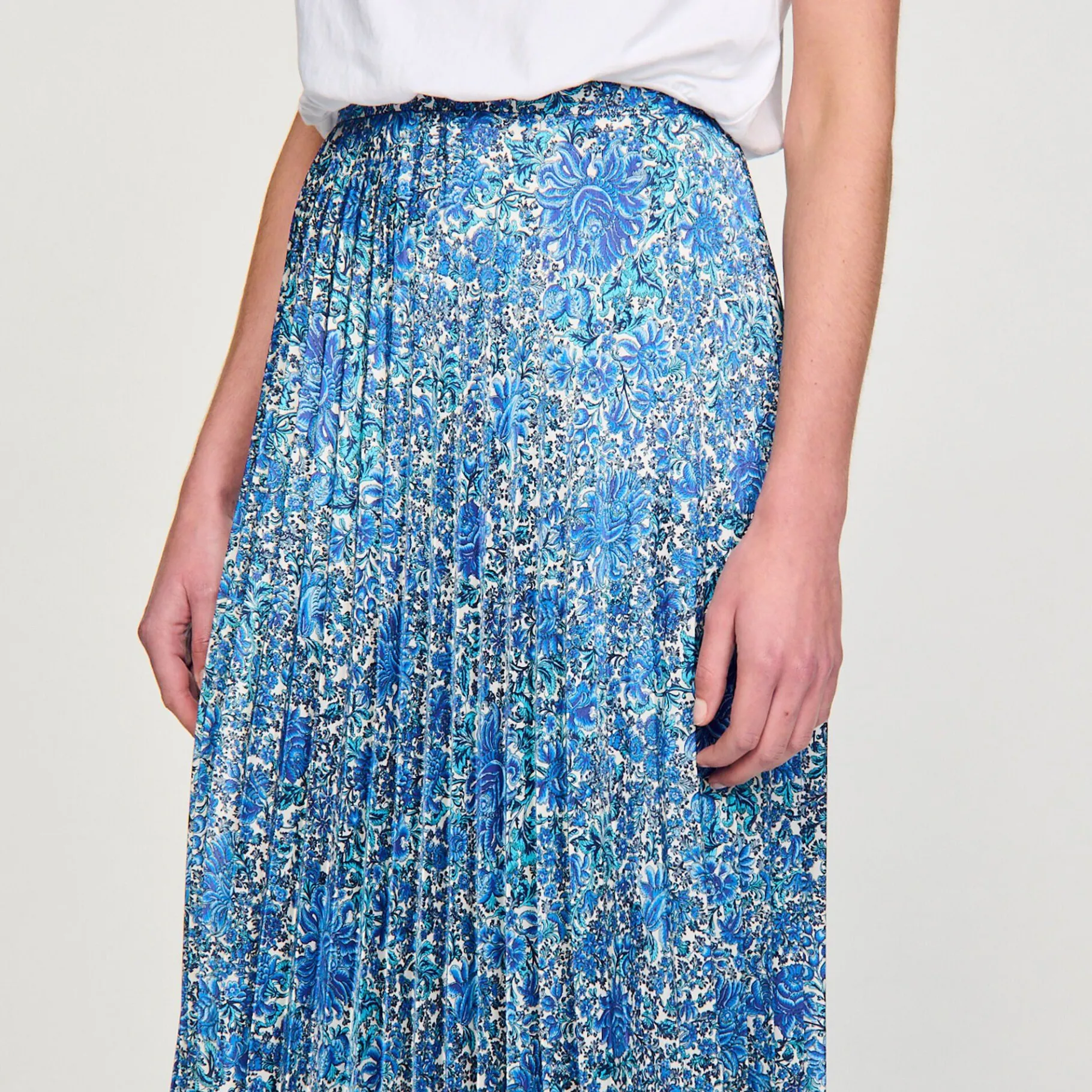 Falda Larga, Fluida Y Plisada Con Detalle De Estampado «Indie Liberty» Y Cierre De Cremallera.