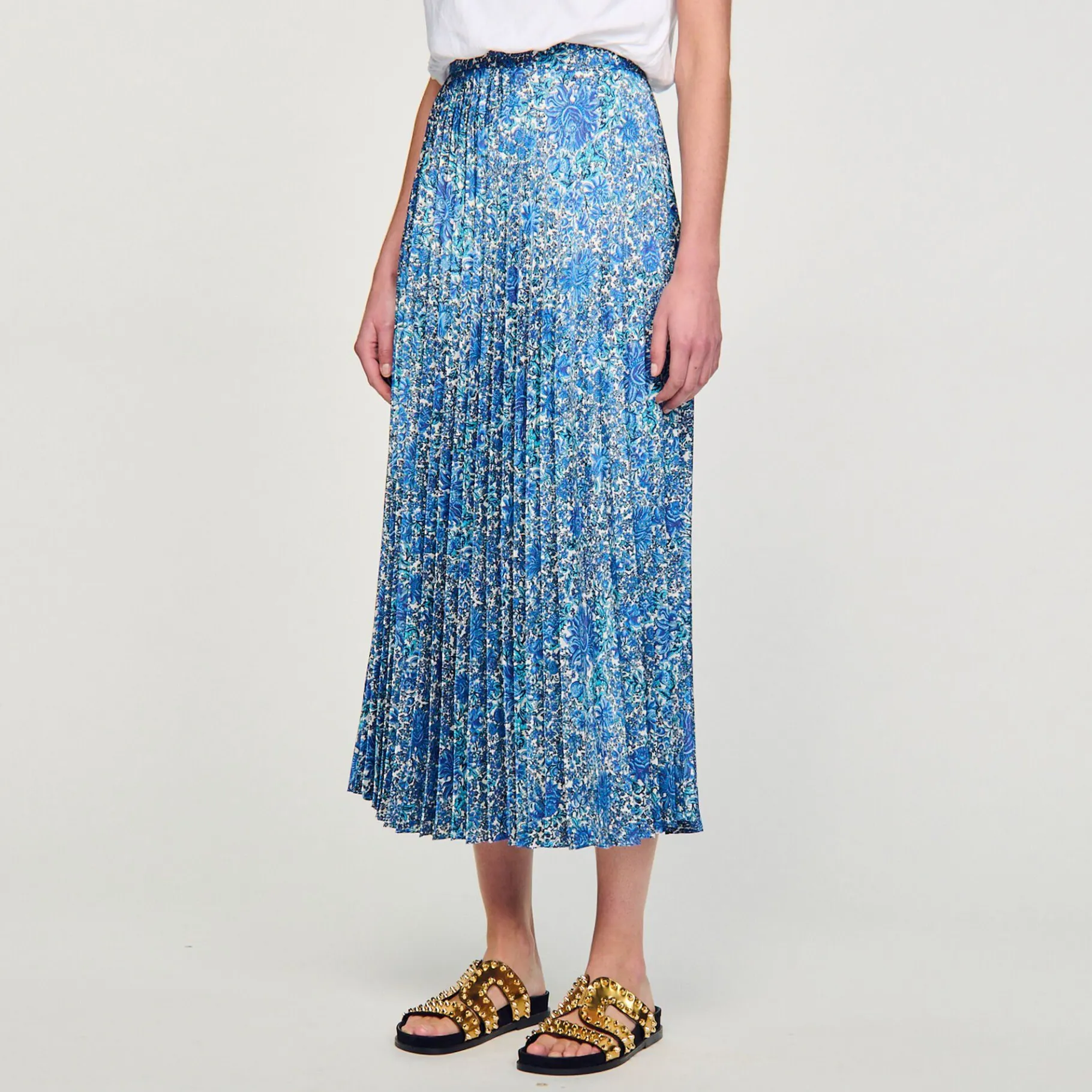 Falda Larga, Fluida Y Plisada Con Detalle De Estampado «Indie Liberty» Y Cierre De Cremallera. Falda Larga Plisada San…