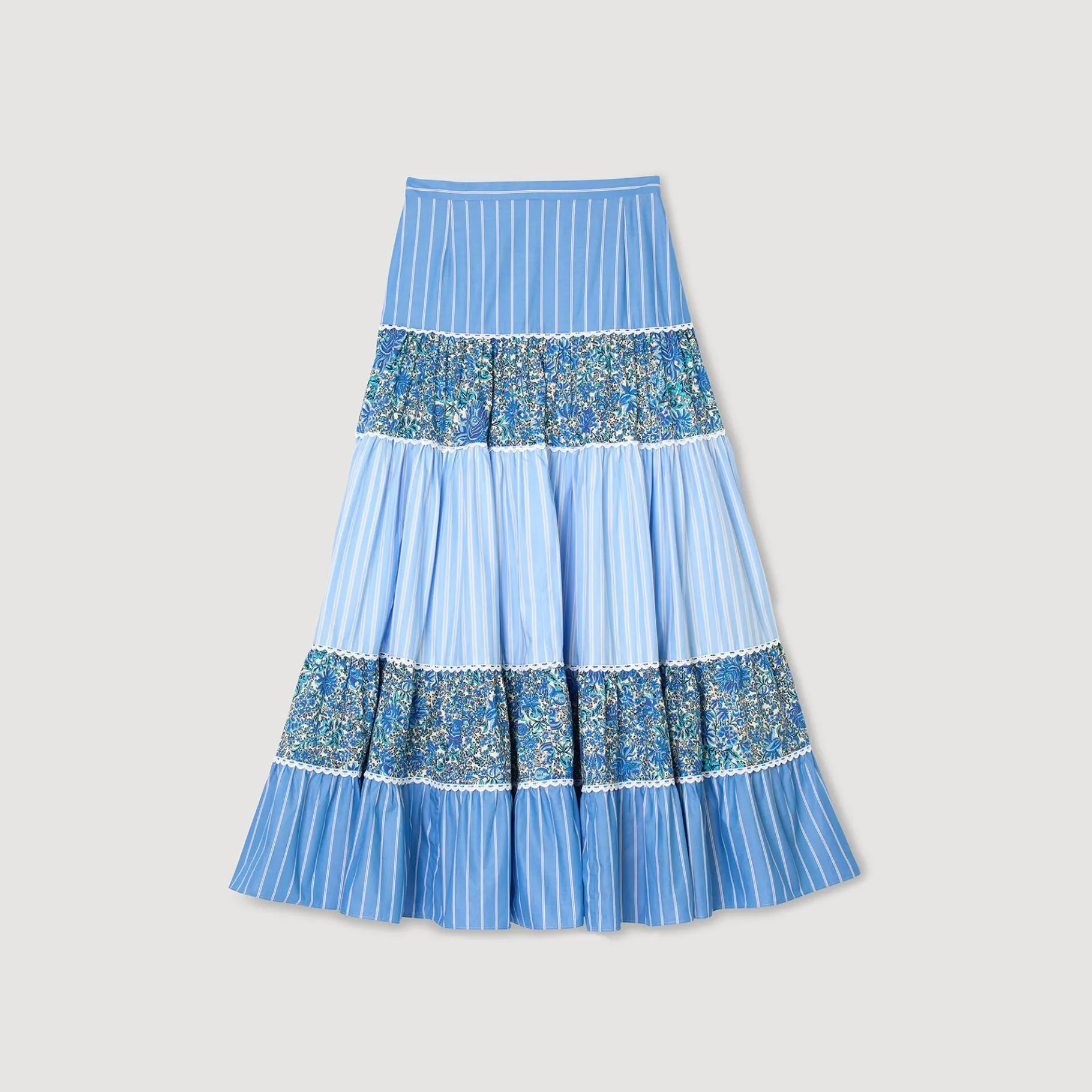 Falda Larga Y Con Volumen Con Detalle De Volantes De Patchwork Con Distintos Estampados Y Ribetes En Contraste.