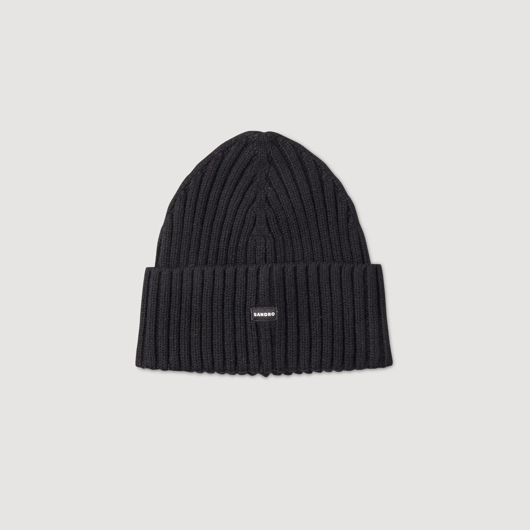 Gorro De Punto Acanalado Con Una Etiqueta Sandro Cosida En La Parte Delantera.