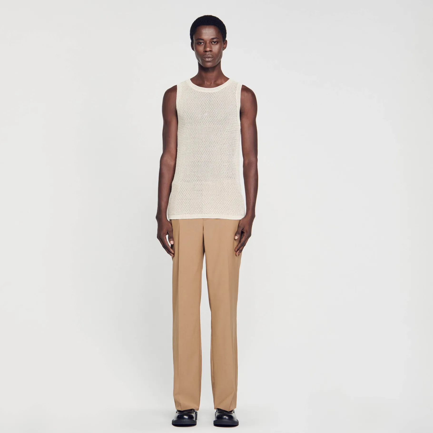 Camiseta De Tirantes Sin Mangas De Punto Calado Ligeramente Brillante, Con Cuello Redondo Y Bordes Finamente Acanalados.