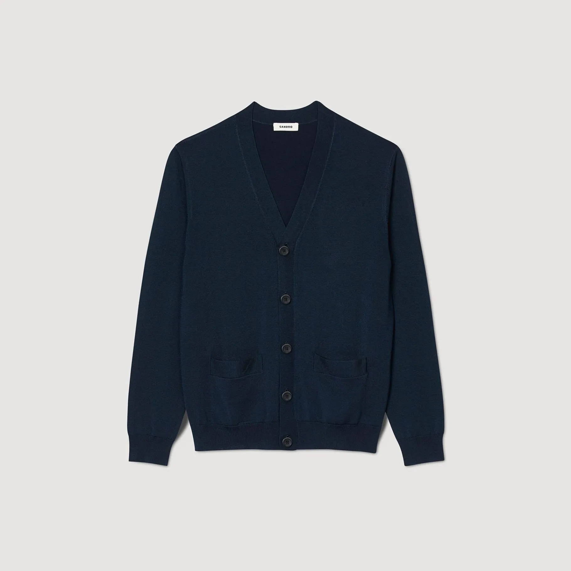 Cárdigan De Punto Con Cierre De Botones, Manga Larga, Dos Bolsillos De Parche Y Acabados Acanalados.