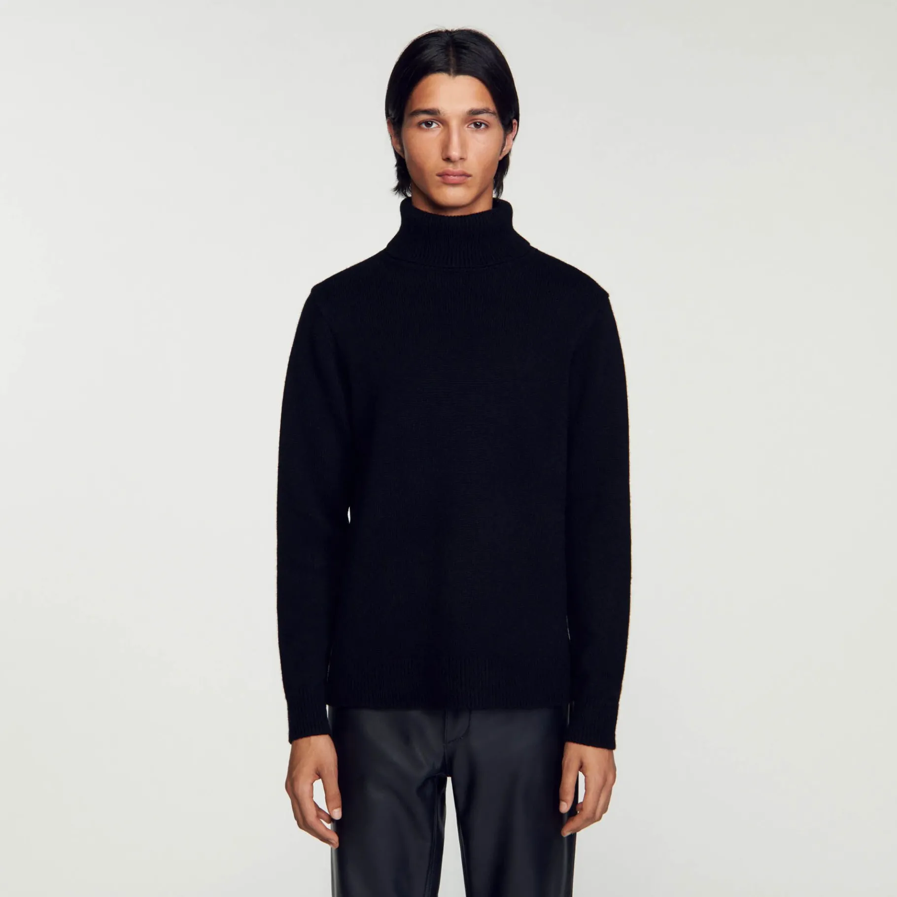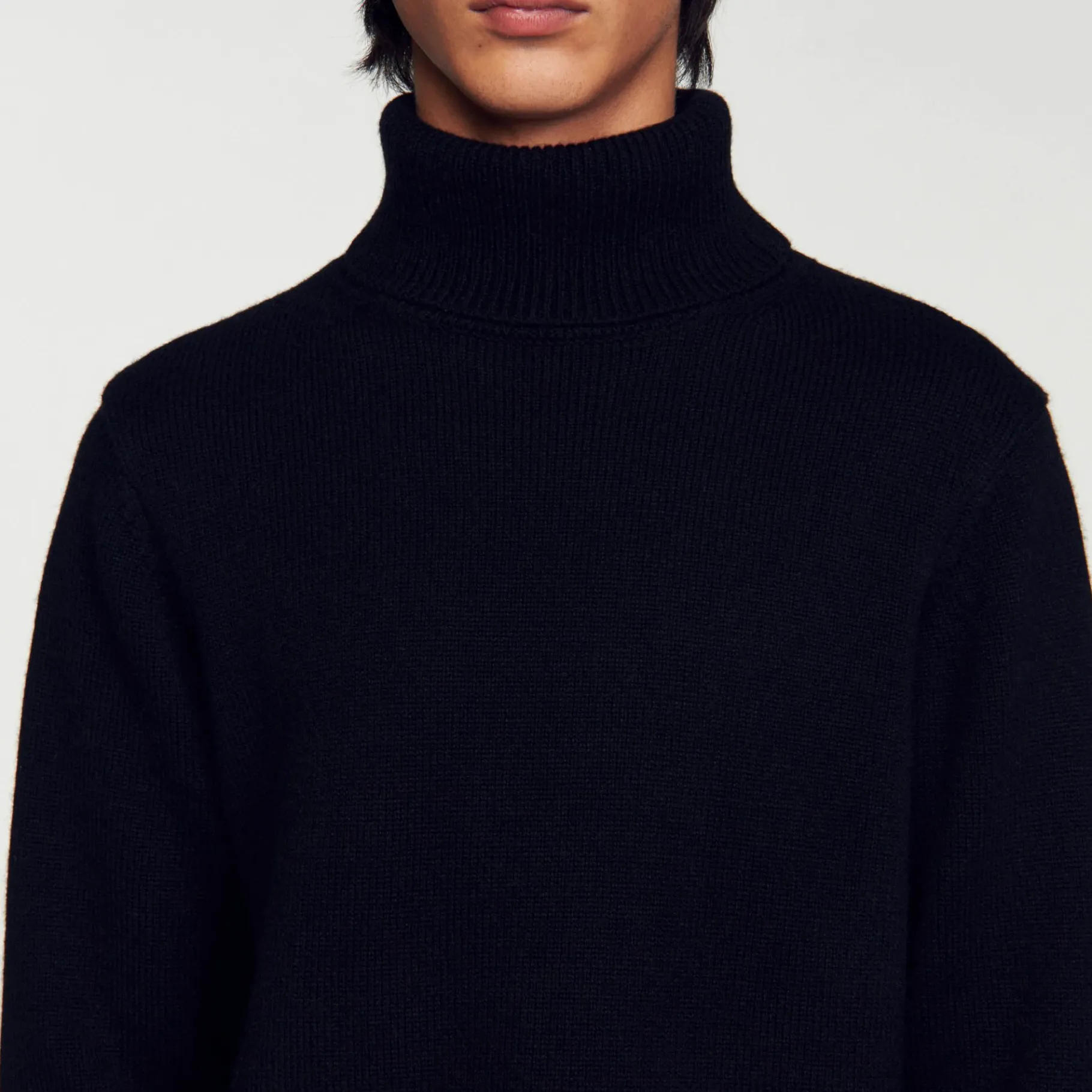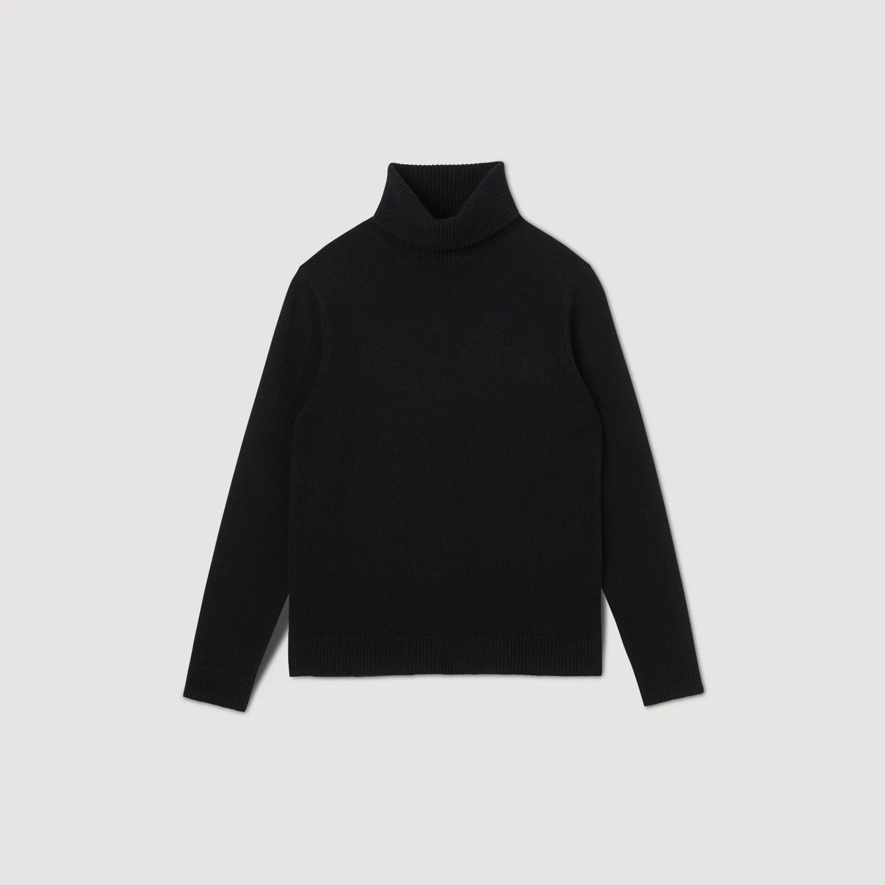Jersey De Cuello Vuelto De Punto Suave De Mezcla De Lana, Yak Y Cachemira, Con Mangas Largas Y Bordes De Canalé.