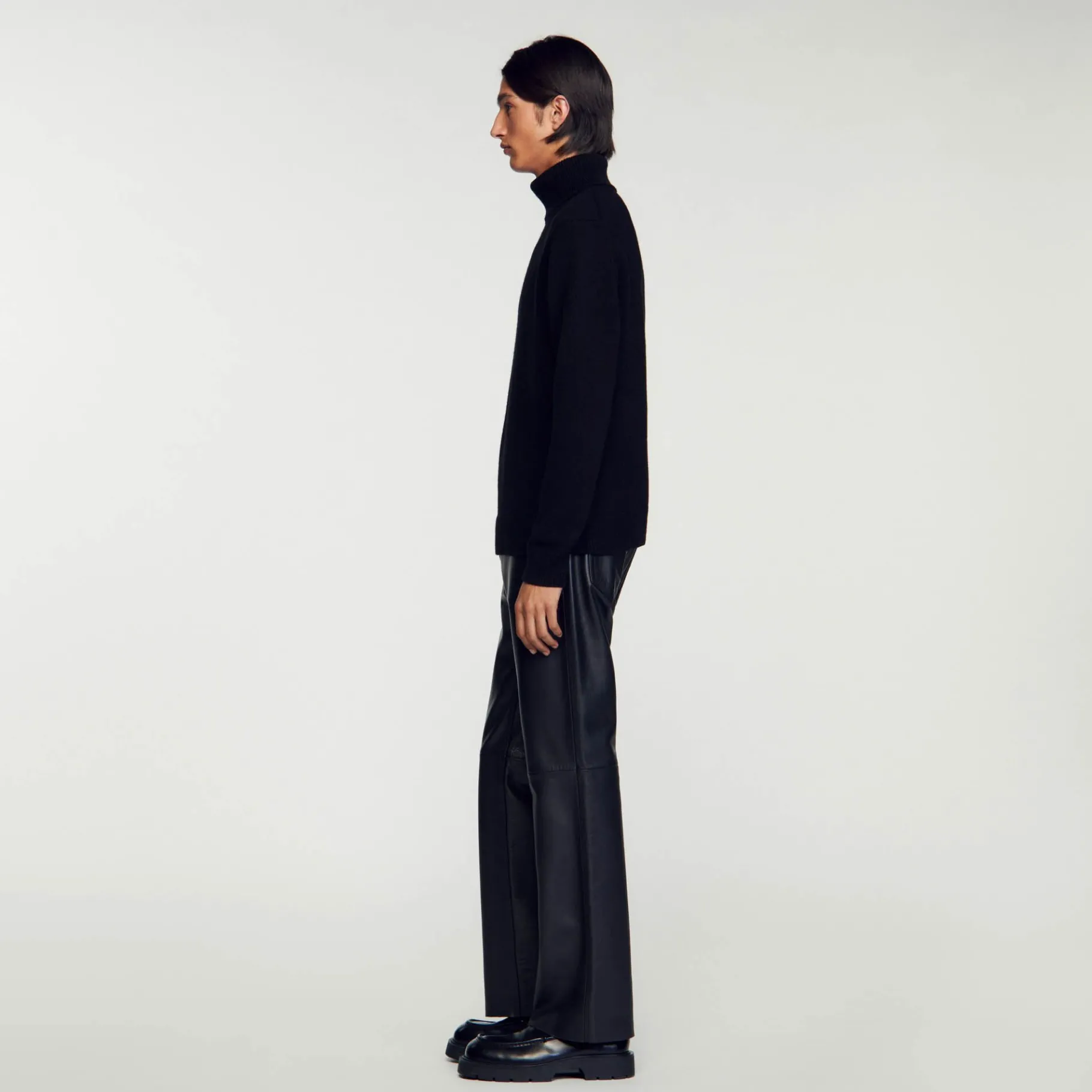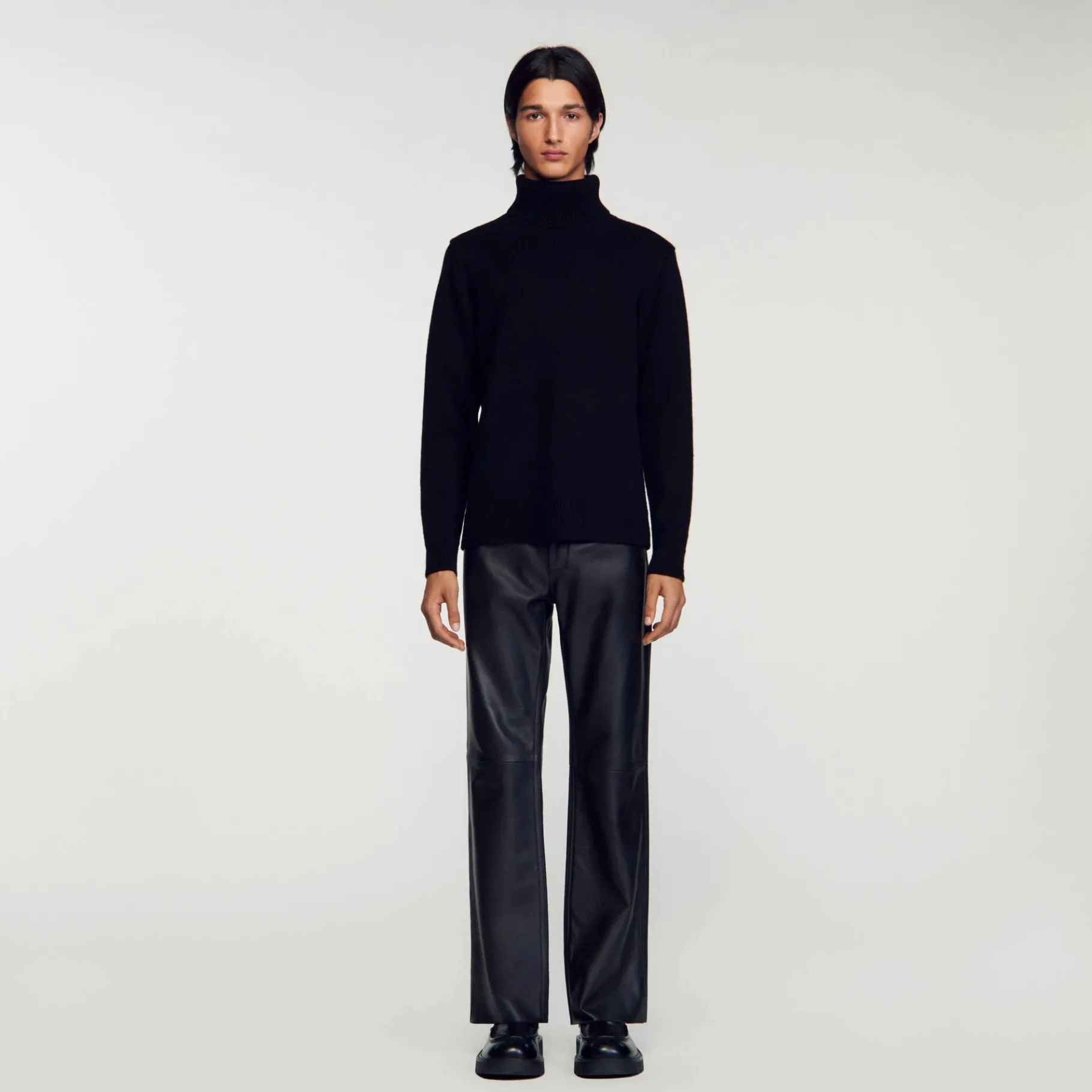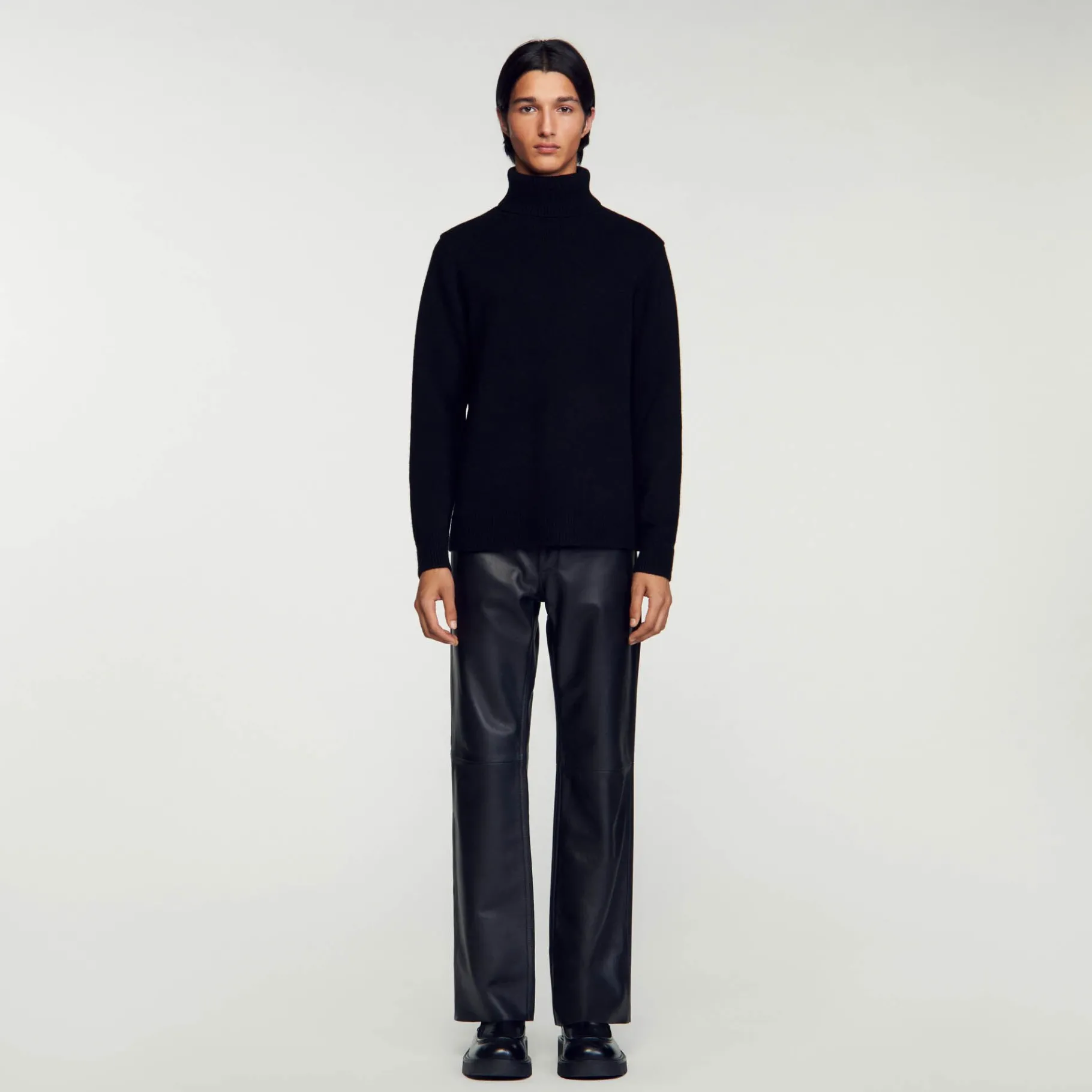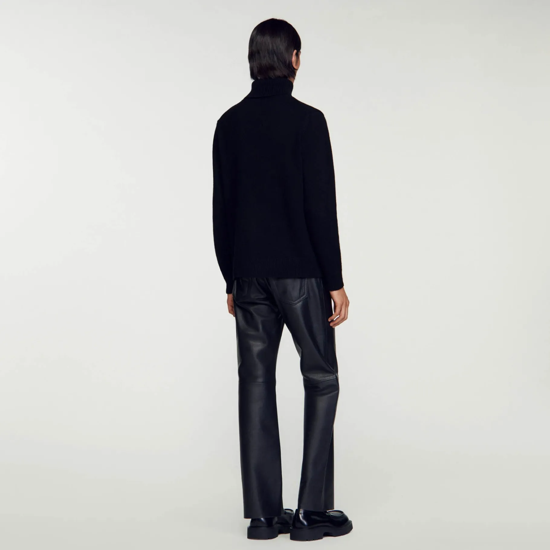 Jersey De Cuello Vuelto De Punto Suave De Mezcla De Lana, Yak Y Cachemira, Con Mangas Largas Y Bordes De Canalé.
