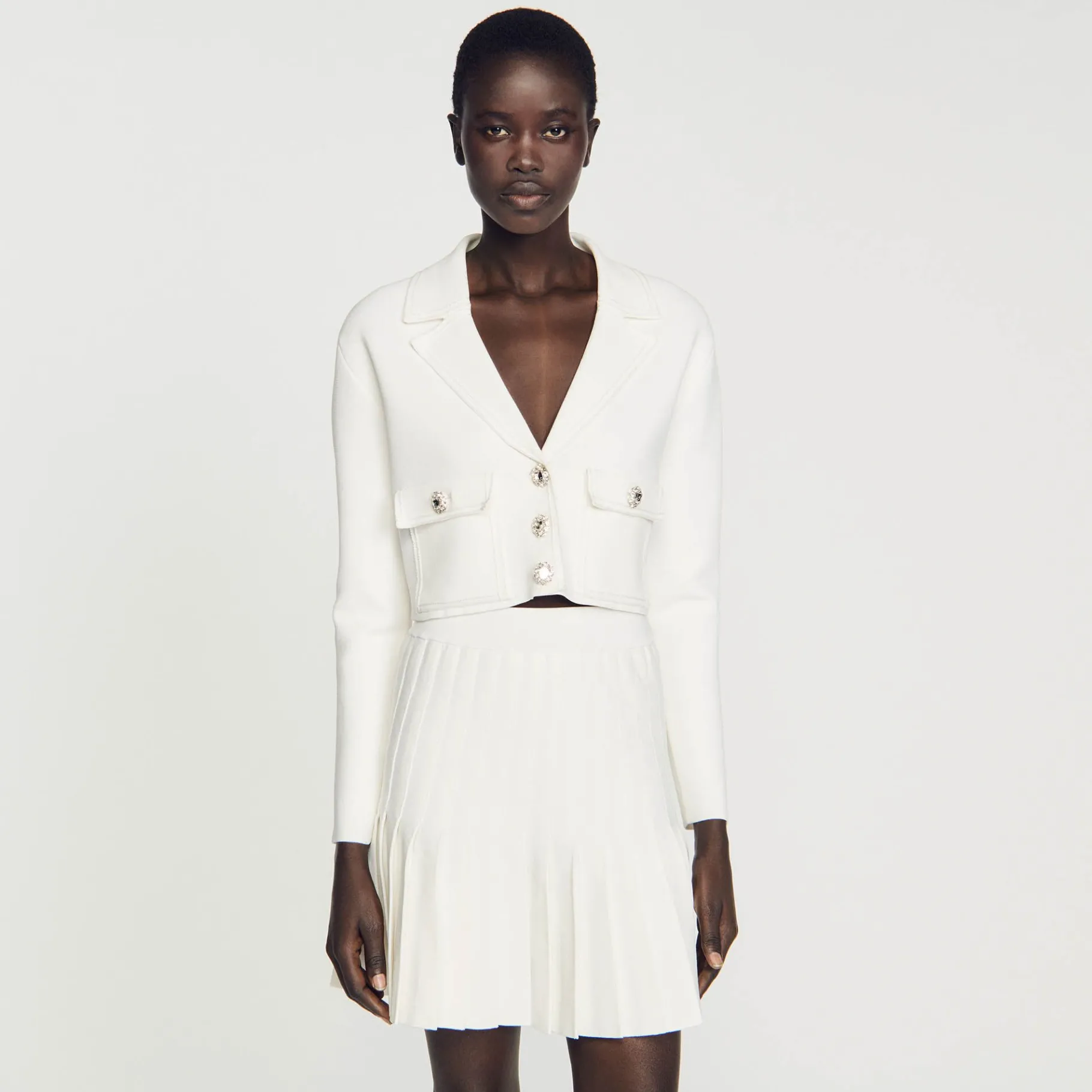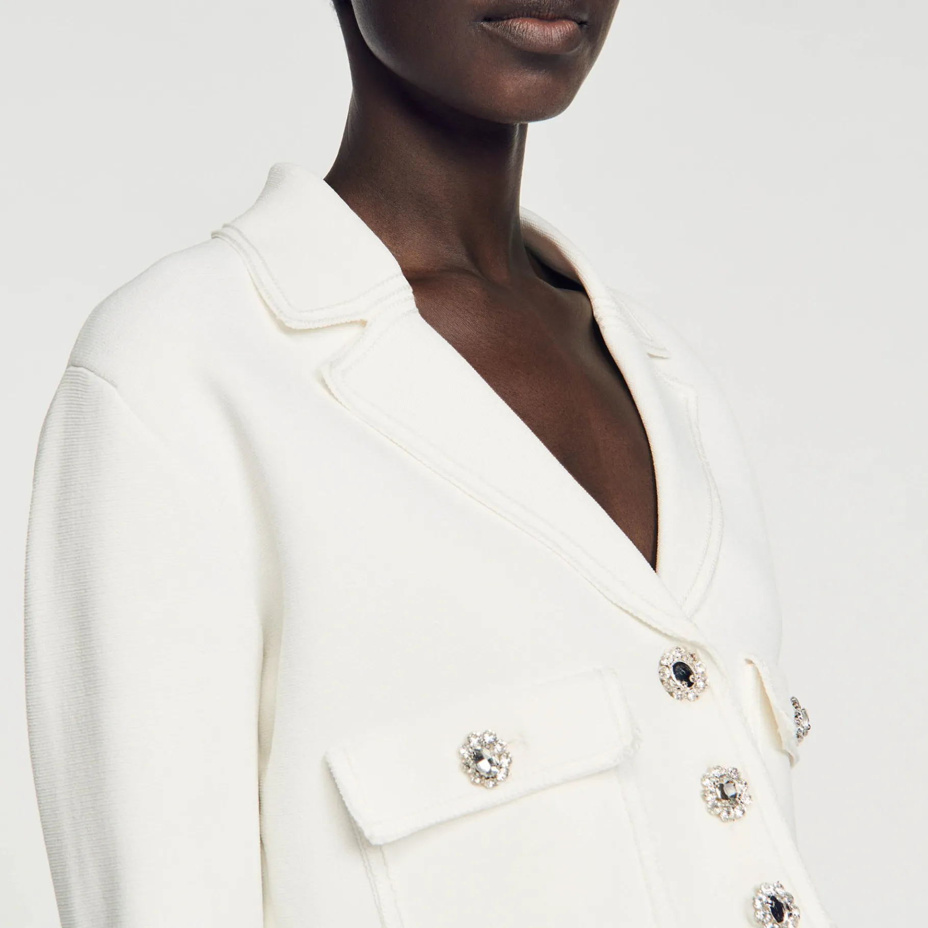 Cardicoat Estilo Chaqueta De Sastre Con Un Cuello Con Muescas, Mangas Largas, Bolsillos Tipo Parche Con Solapas En Las Caderas, Con Un Cierre Con Botones De Bisutería De Estrás.