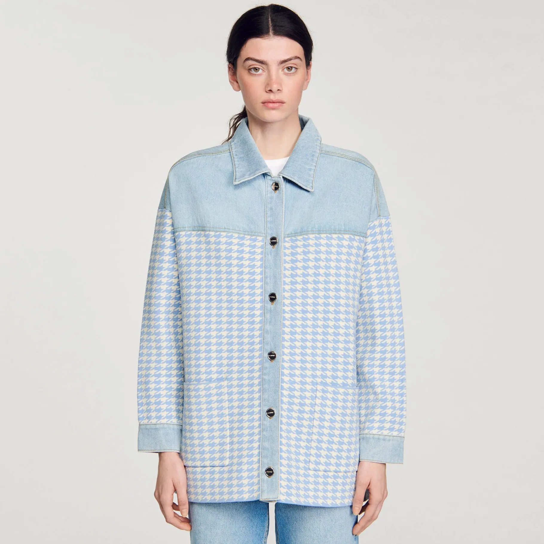 - Parte Superior Y Puños De Tejido Vaquero Y Parte Inferior De Punto Con Motivos De Pata De Gallo