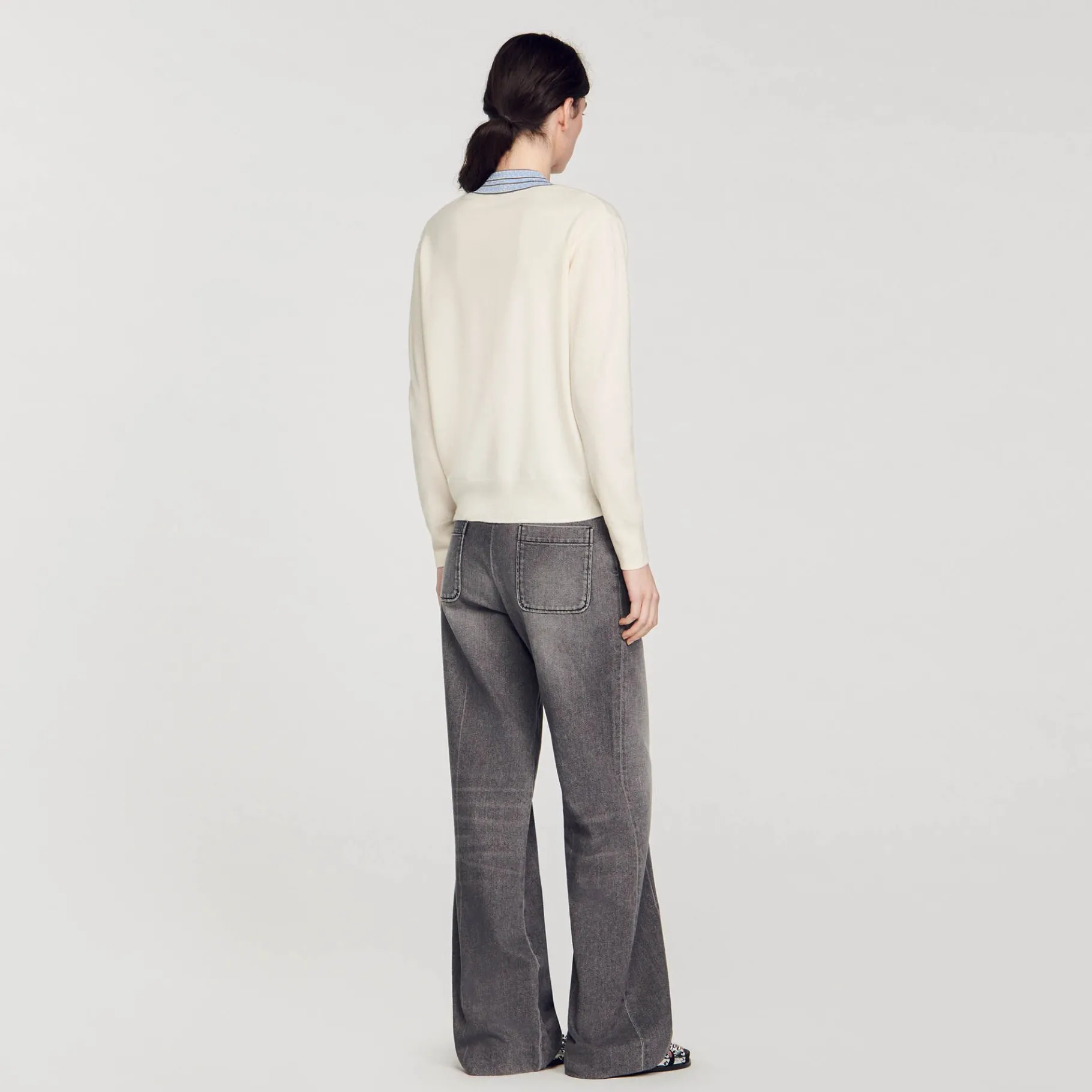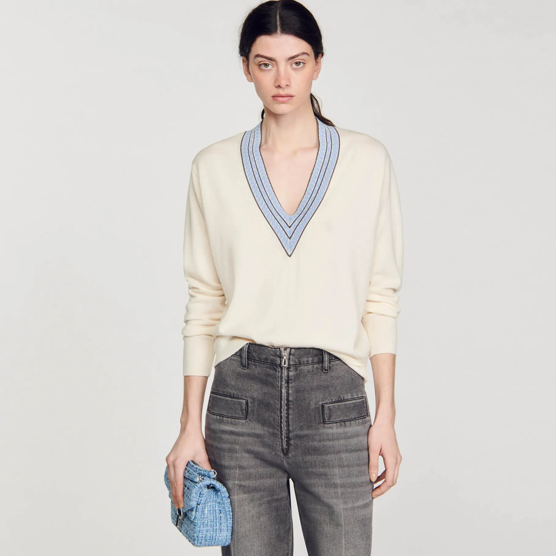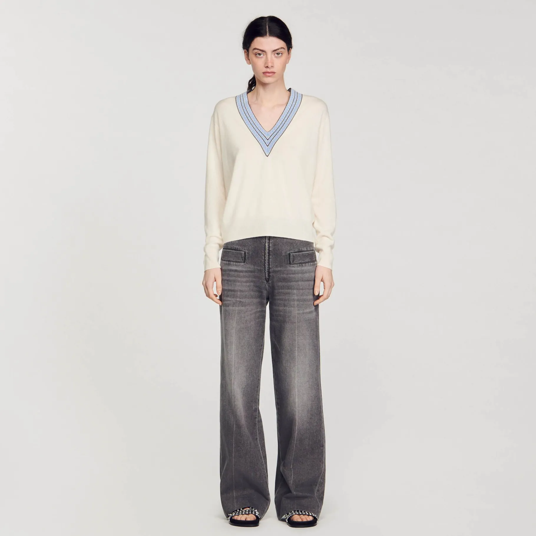 Jersey De Corte Holgado De Lana Y Cachemira, Con Mangas Largas Y Cuello En V Con Acanalado Con Motivos De Jacquard En El Escote.