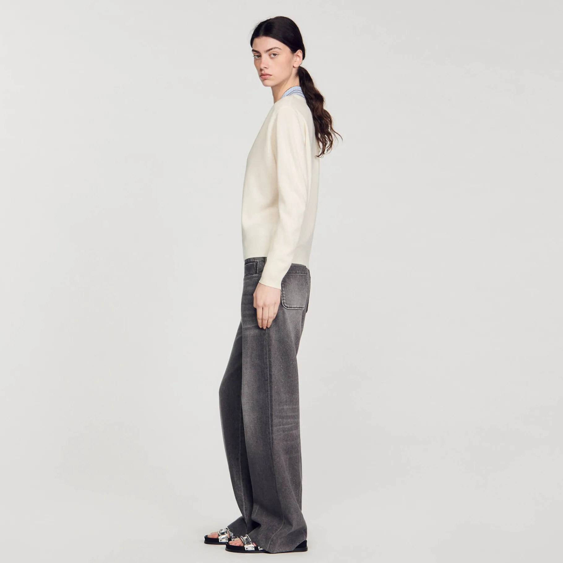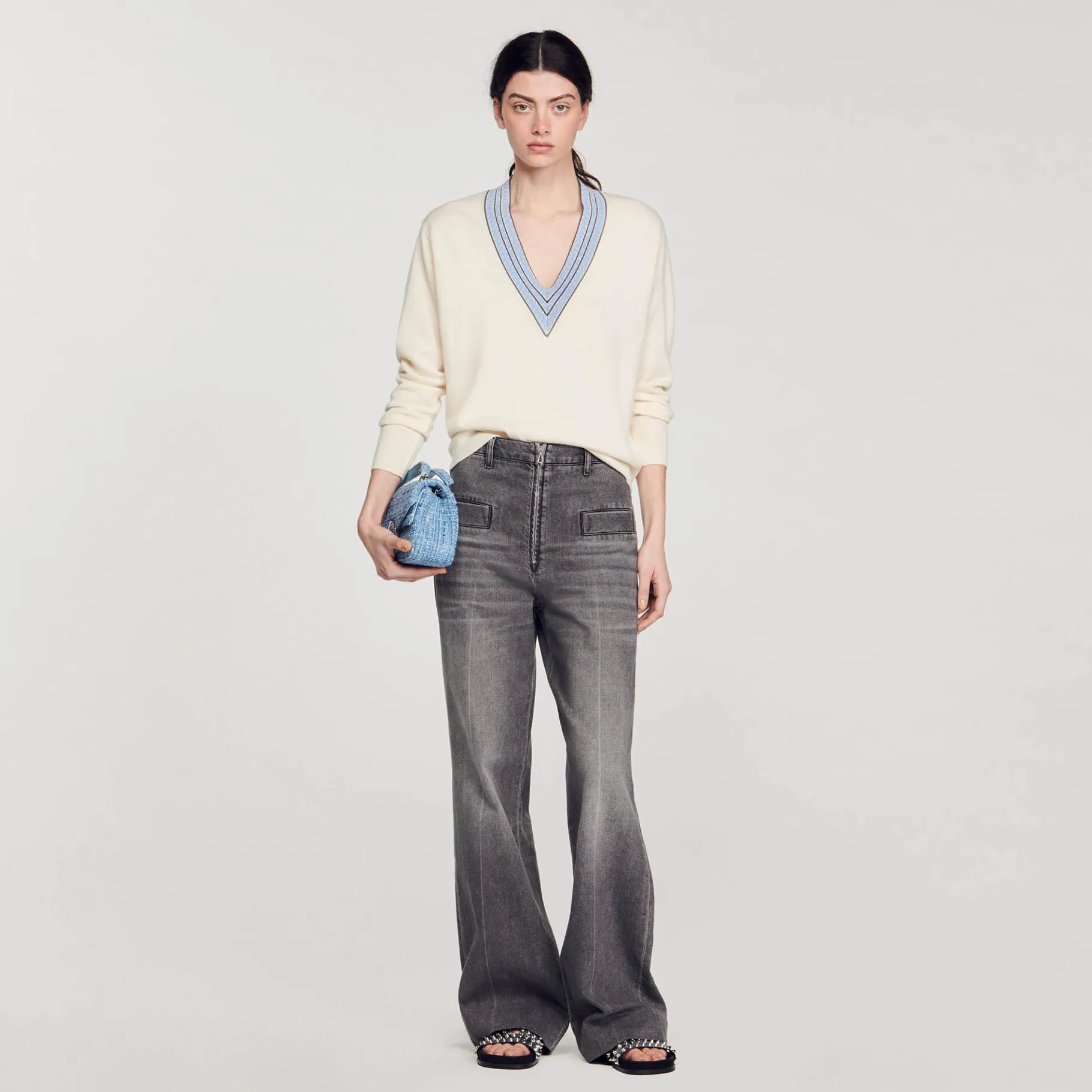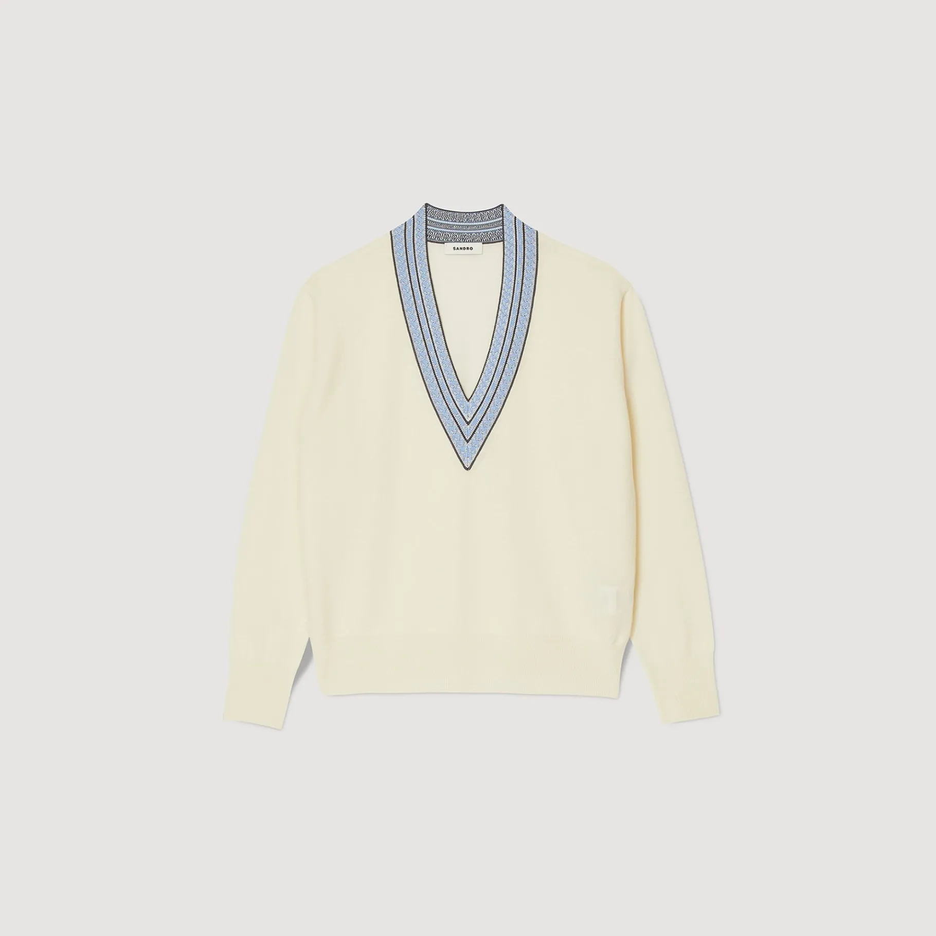Jersey De Corte Holgado De Lana Y Cachemira, Con Mangas Largas Y Cuello En V Con Acanalado Con Motivos De Jacquard En El Escote.