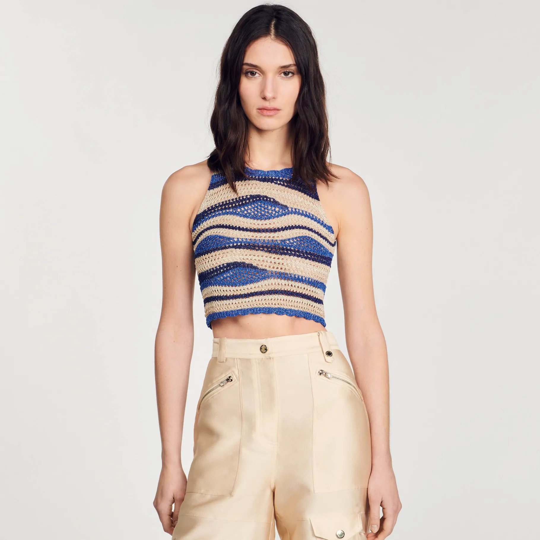 Top Corto Sin Mangas Y De Cuello Redondo De Punto Calado Brillante. Top Corto Sandro De MujerCuello RedondoSin MangasPun…