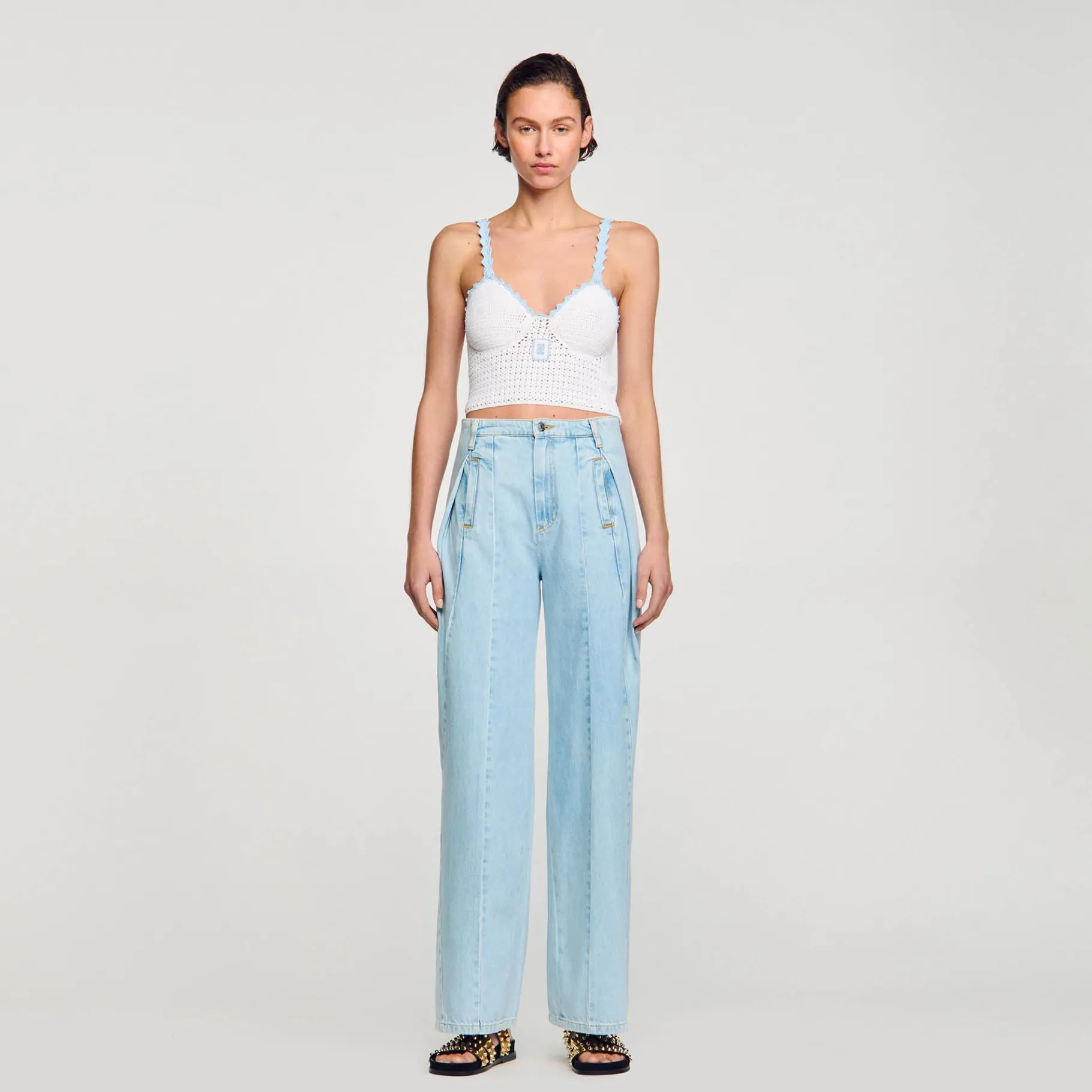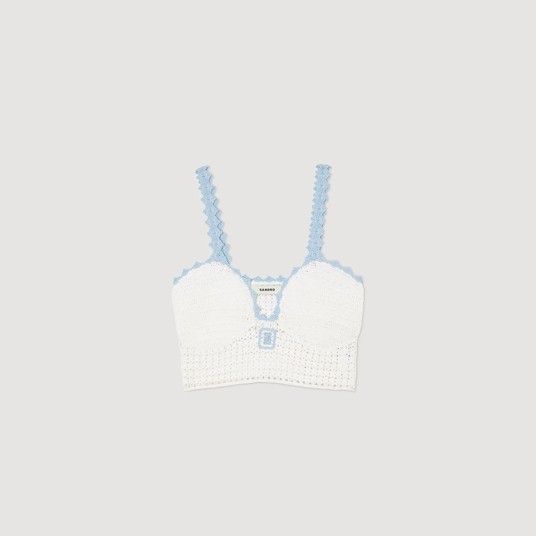 Top De Ganchillo Con Tirantes En Contraste, Logo Bordado Y Detalles En El Pecho. Top Corto De Ganchillo Sandro Mujer Tir…