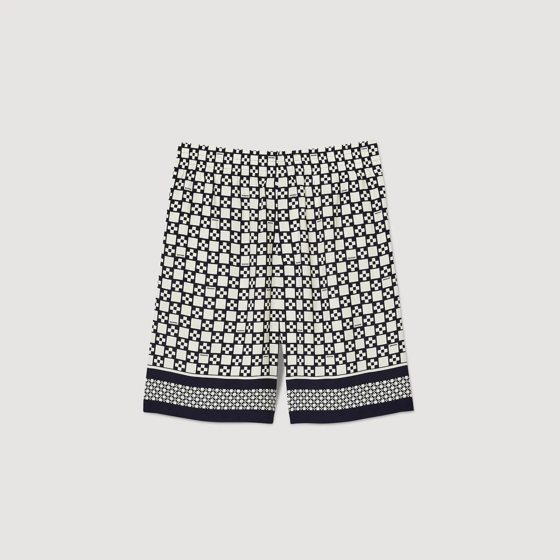 Bermudas Fluidas Con Cintura Elástica, Dos Bolsillos Laterales, Un Bolsillo De Parche En La Parte Posterior Y Estampado Square Cross.