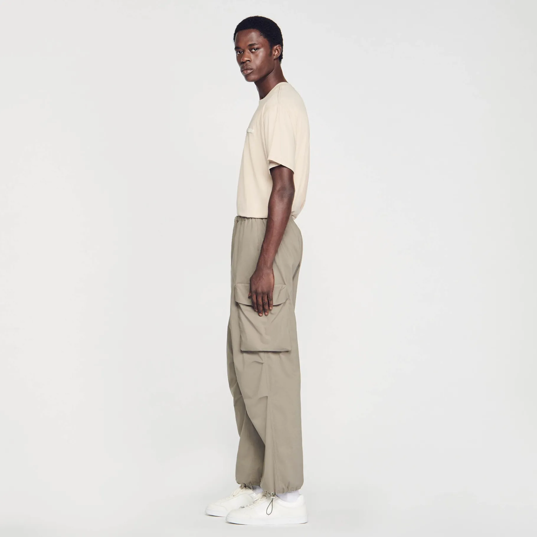 Pantalón Holgado Estilo Cargo De Algodón Con Bolsillos En Los Laterales, Cintura Elástica, Cordón De Ajuste En Los Tobillos Y Una Insignia De Sandro De Caucho En La Parte Posterior.