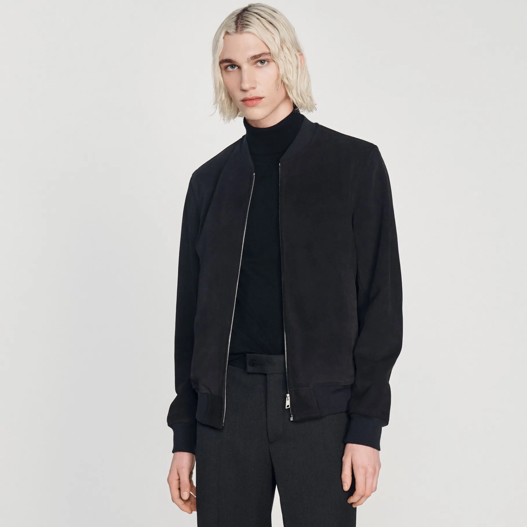 Cazadora De Ante Con Manga Larga, Cierre De Cremallera Y Bolsillos Diagonales.