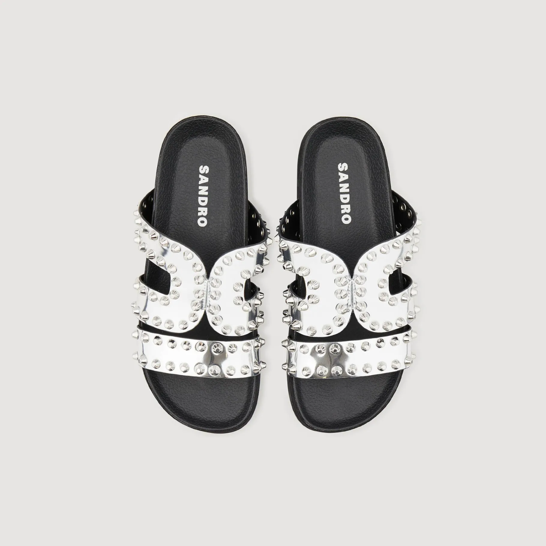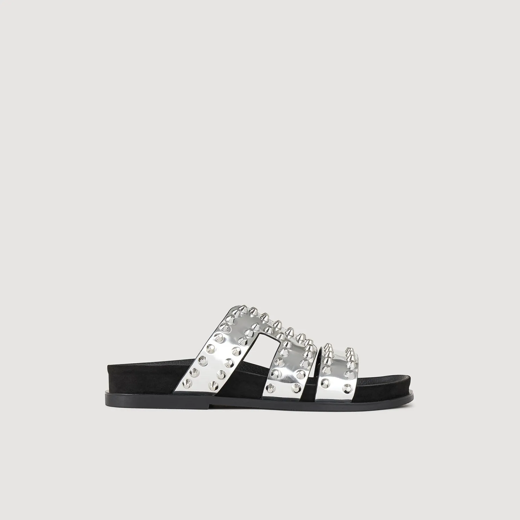 Sandalias Planas Con Tiras Anchas Metalizadas De Efecto Espejo Y Detalle De Remaches De Pico.