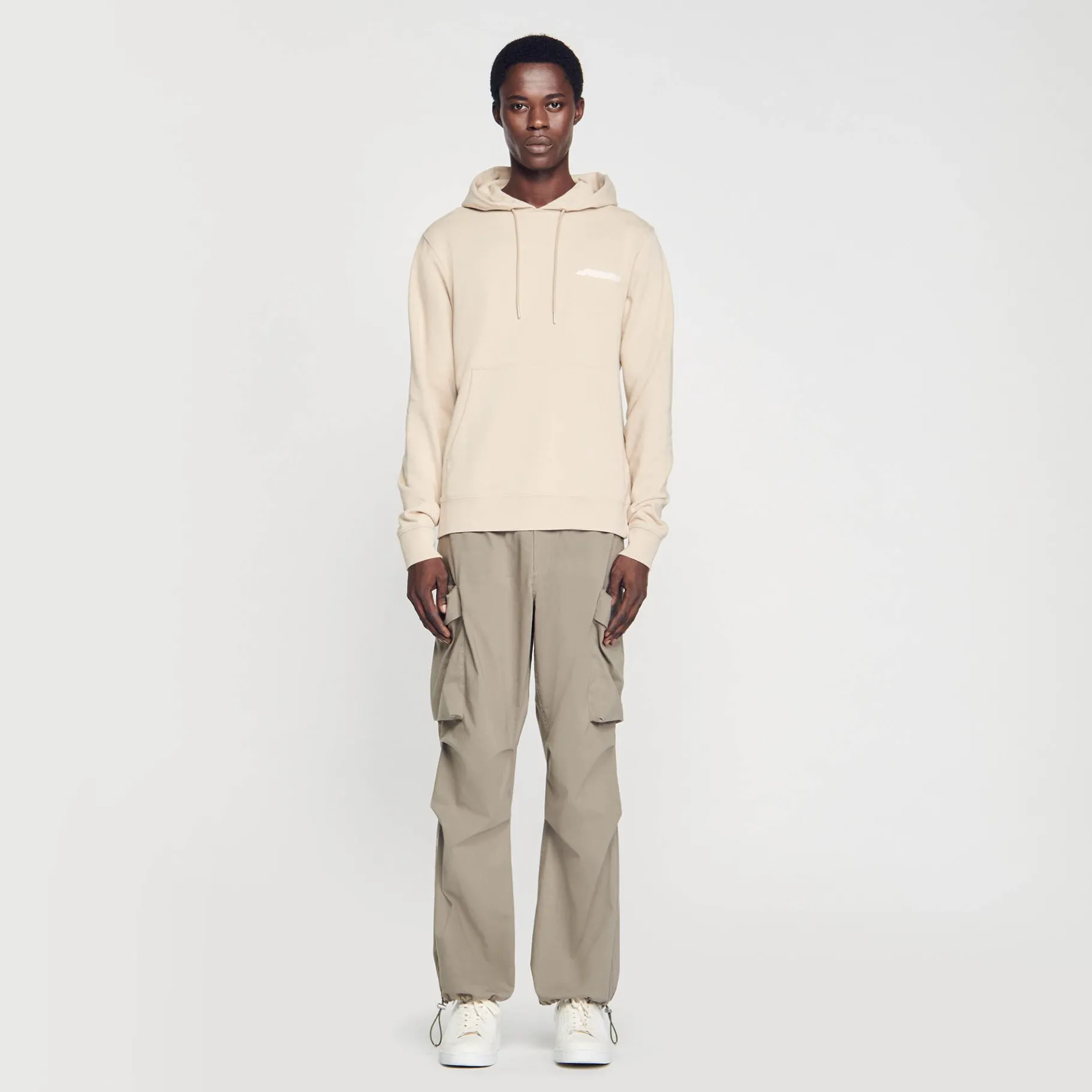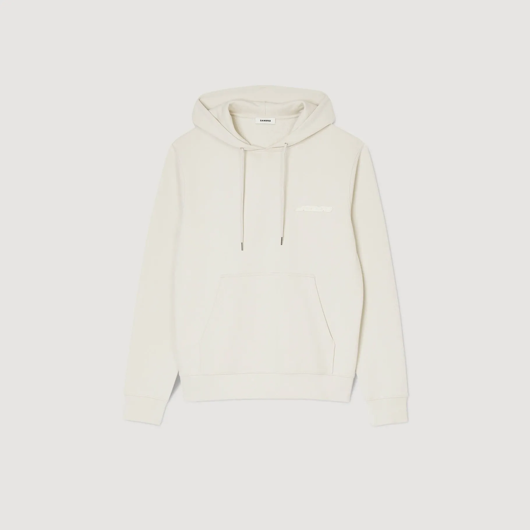 Sudadera De Felpa Con Capucha Y Cordón De Cierre, Con Mangas Largas, Un Bolsillo De Canguro Y Una Marca Sandro De Goma En El Pecho.