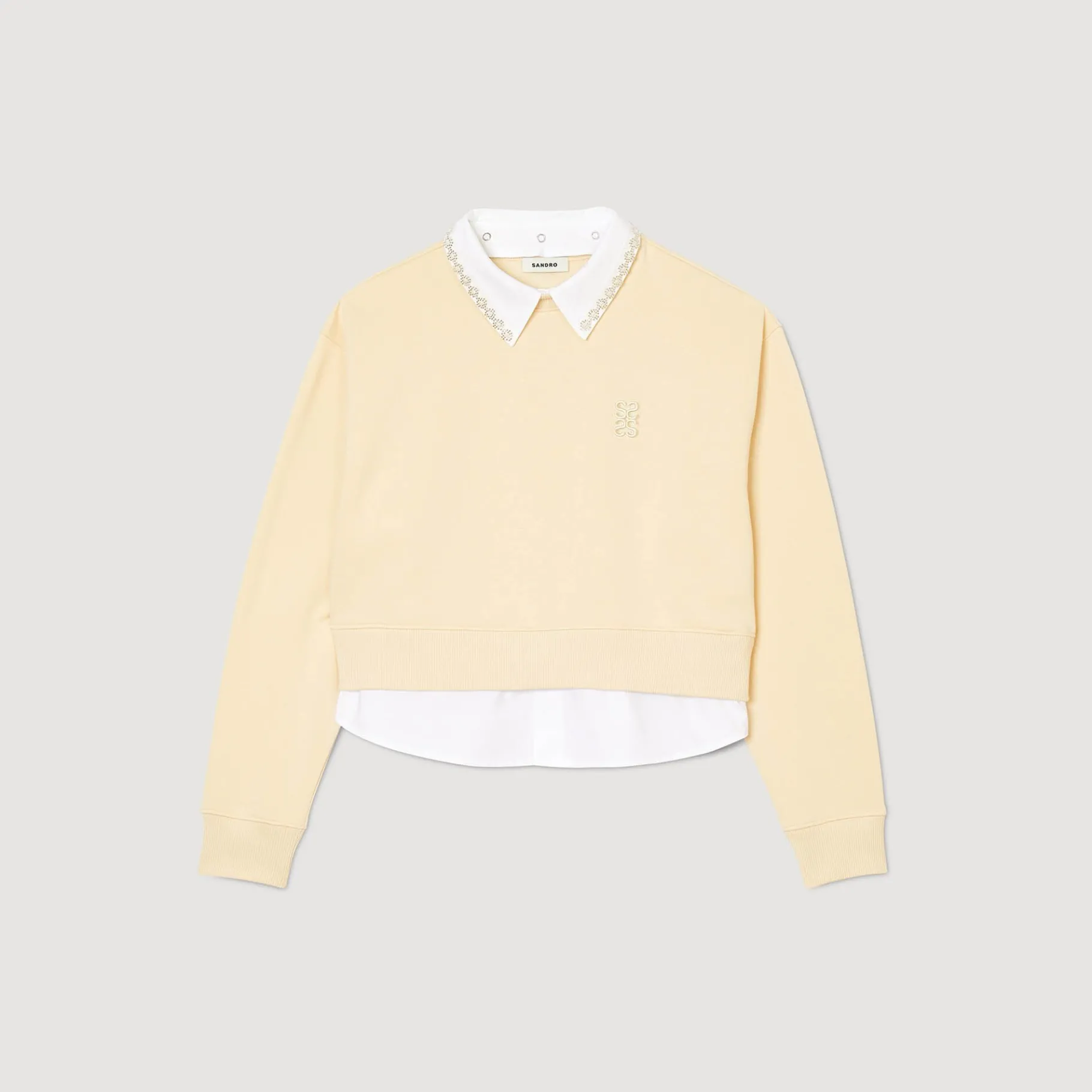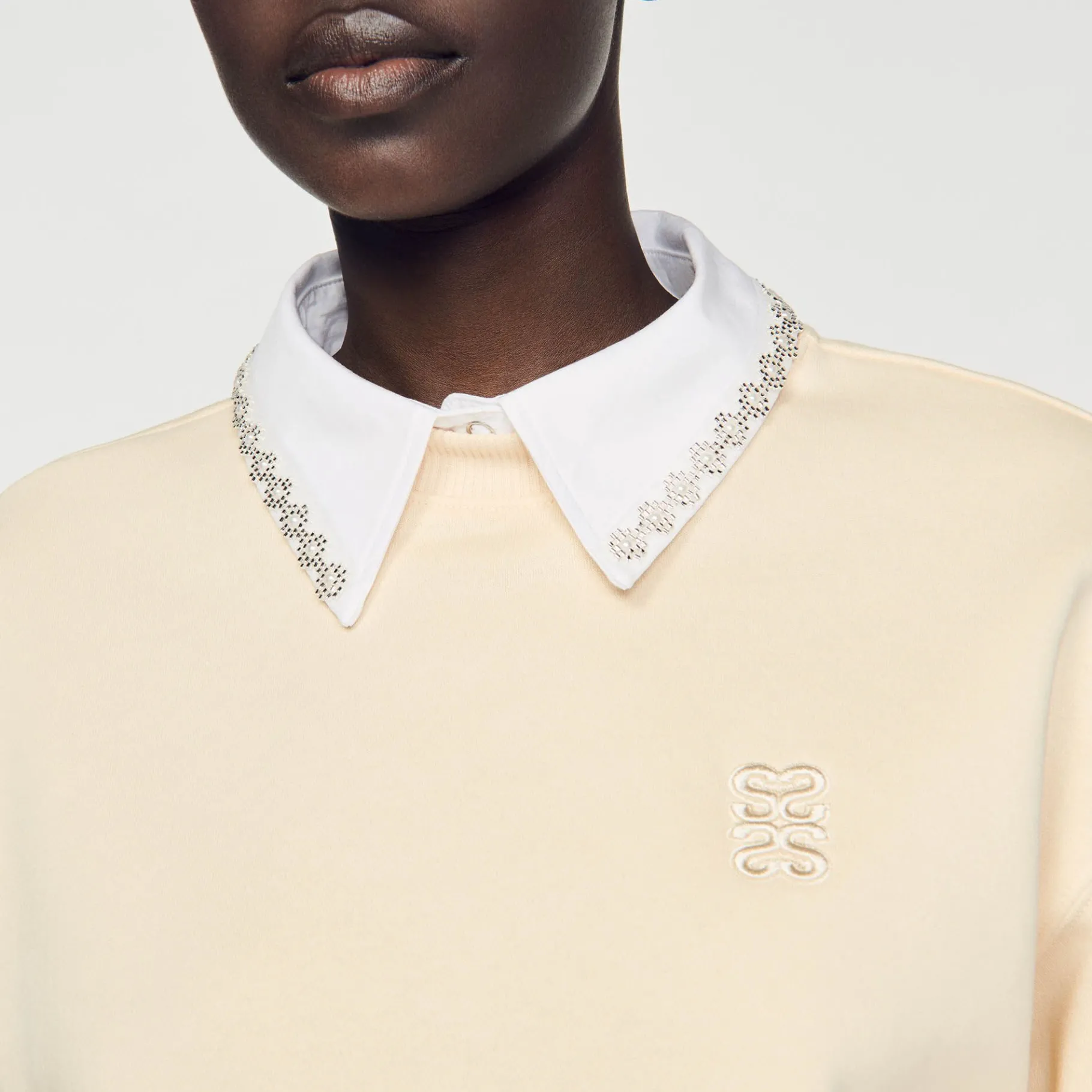 Sudadera Tipo Camisa Con Efecto 2 En 1 Con Un Cuello Adornado Con Estrás, Mangas Largas Y Un Bordado De Doble S En El Pecho.