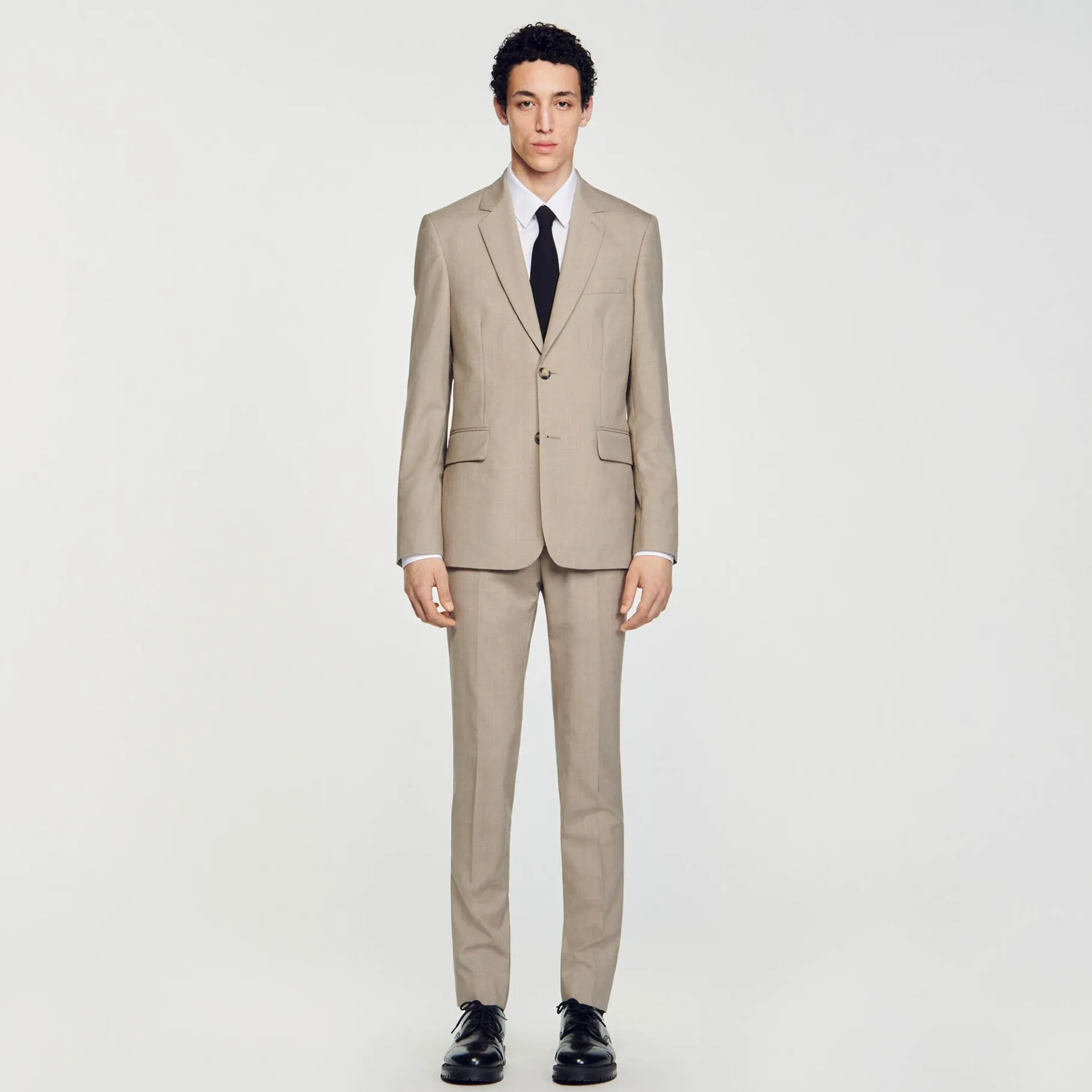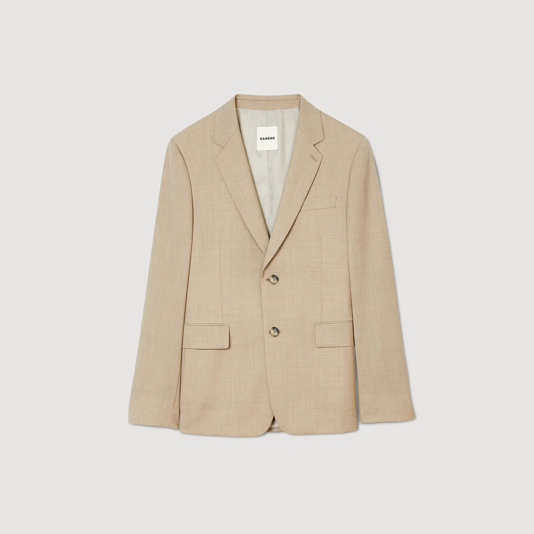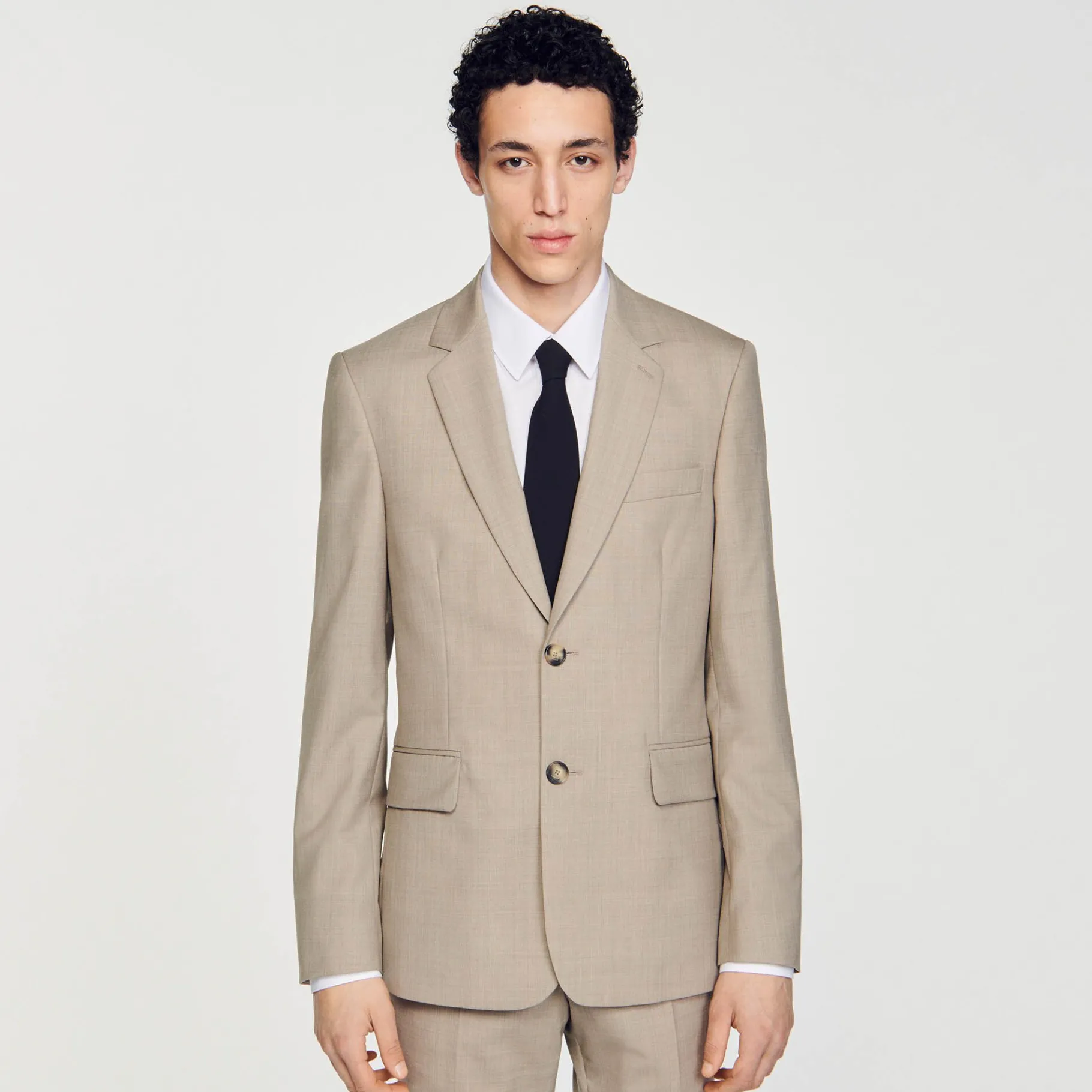 Chaqueta De Traje Clásica De Lana Y Algodón Con Mangas Largas, Dos Botones De Cierre, Bolsillos Ribeteados Con Solapa Y Una Raja En La Espalda.