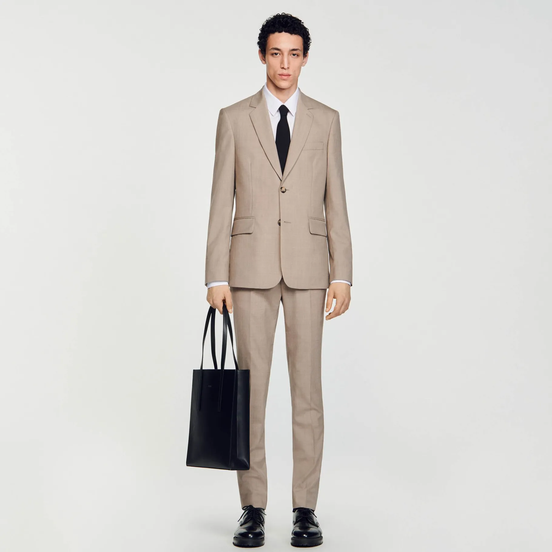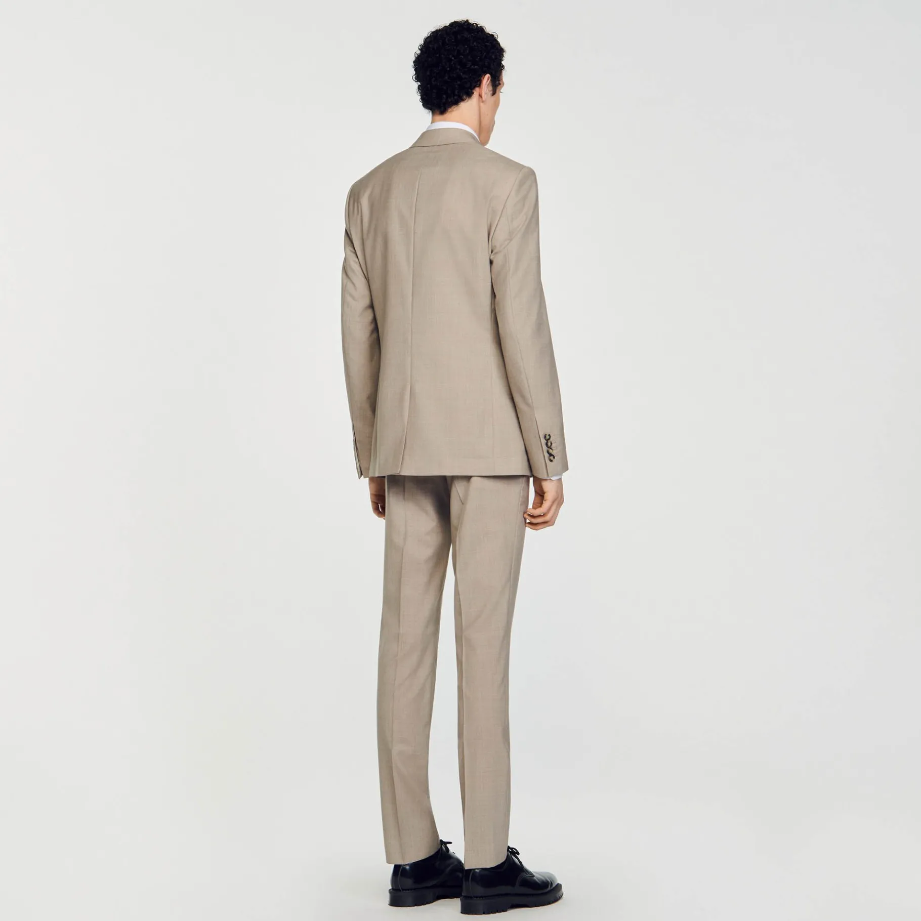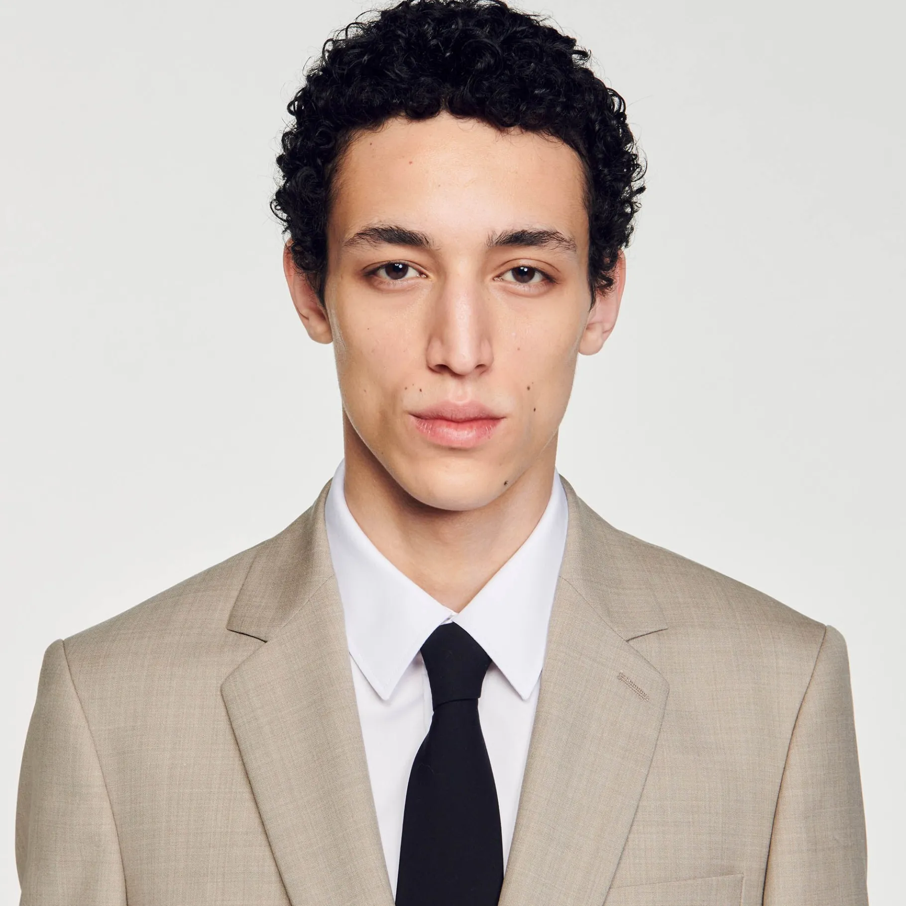 Chaqueta De Traje Clásica De Lana Y Algodón Con Mangas Largas, Dos Botones De Cierre, Bolsillos Ribeteados Con Solapa Y Una Raja En La Espalda.
