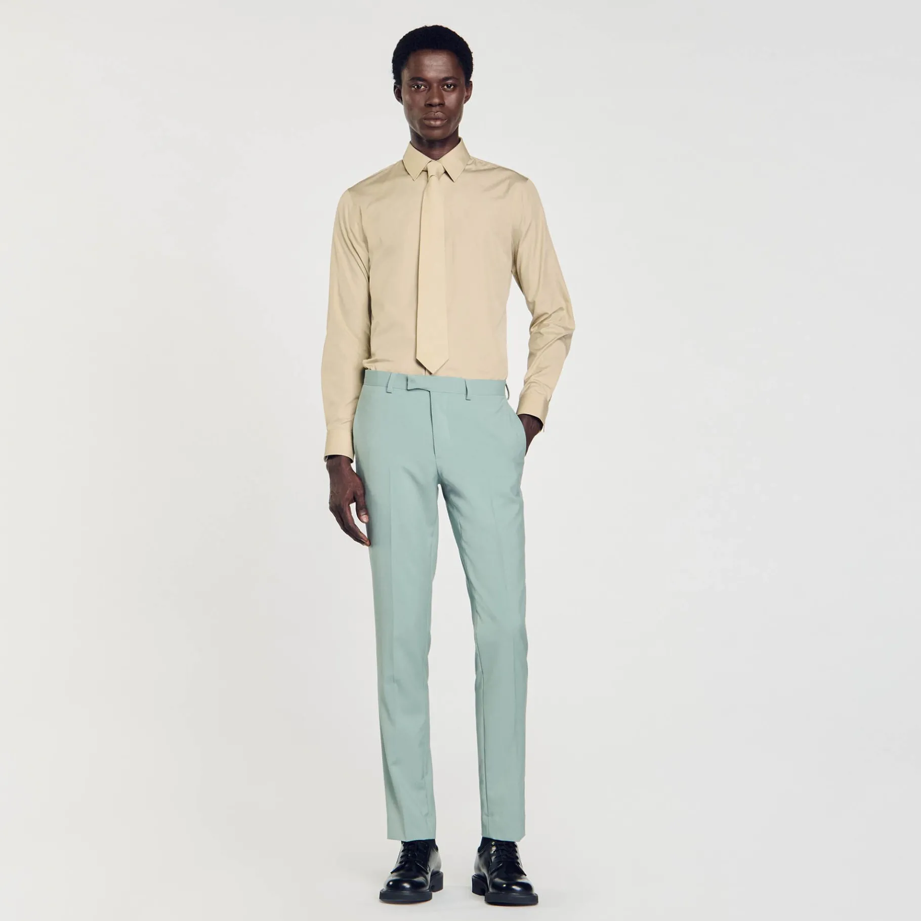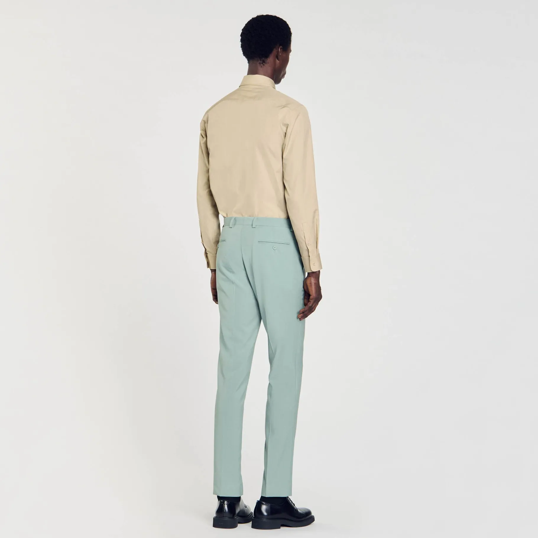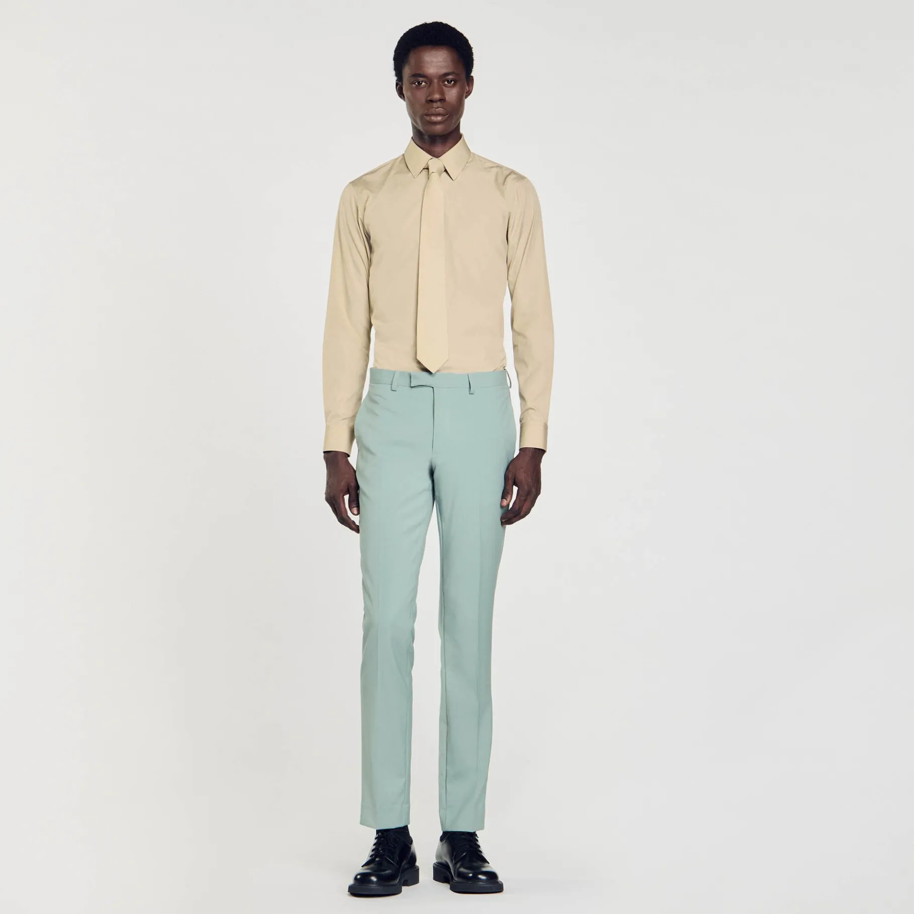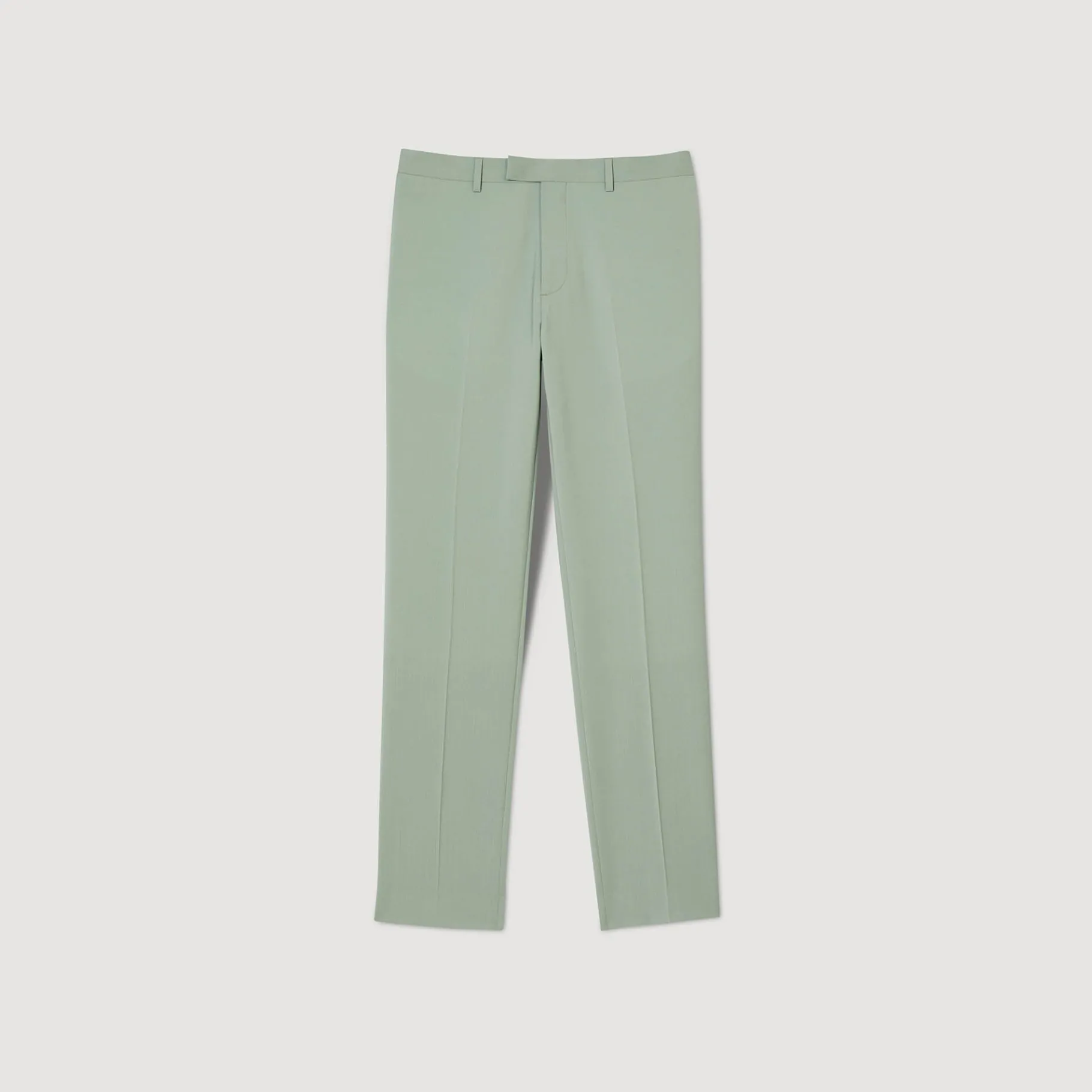 Pantalón De Traje Recto De Lana Con Dos Bolsillos Por Delante Y Dos Bolsillos Por Detrás.