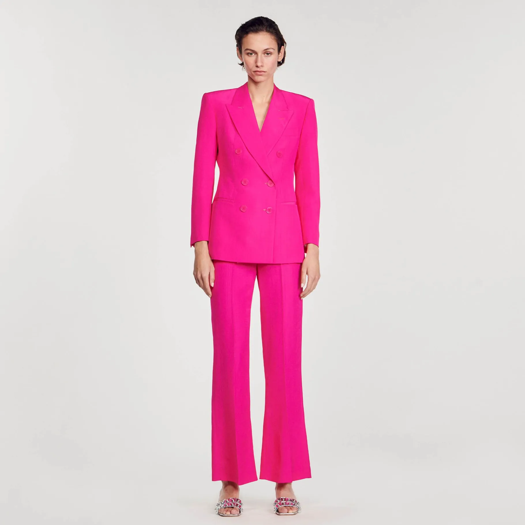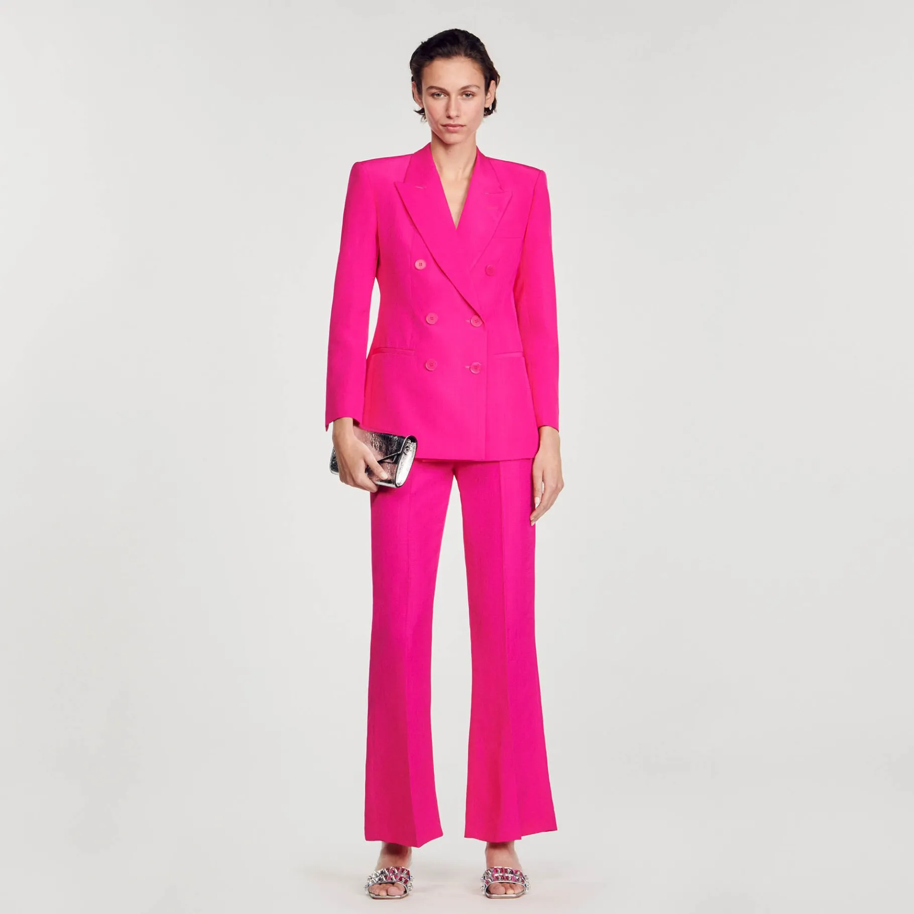 Chaqueta De Traje Ceñida A La Cintura Con Mangas Largas, Botonadura Cruzada, Cuello Alto Con Solapas Y Bolsillos Con Solapa.
