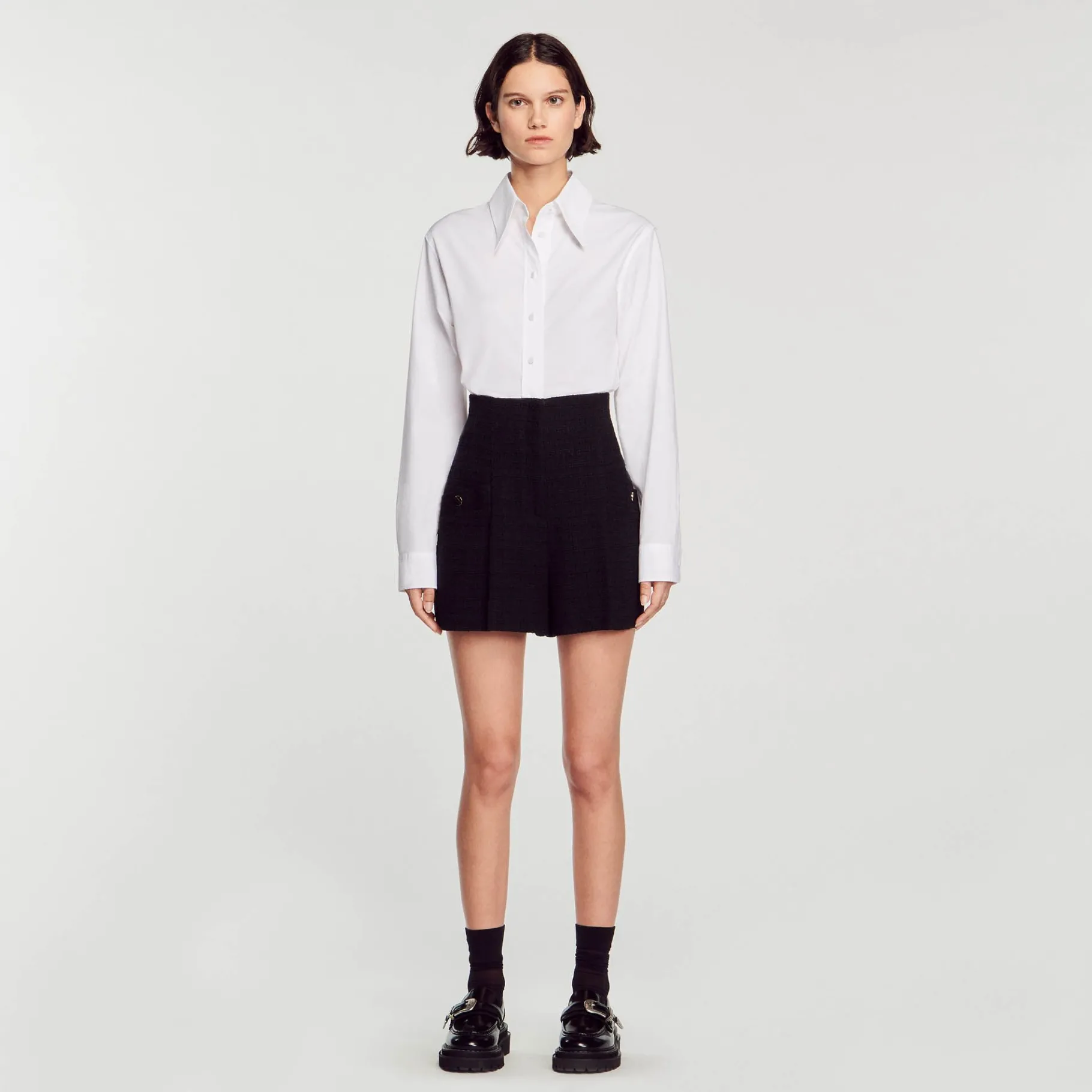 Short De Tweed Ligeramente Evasé De Talle Alto Con Bolsillos Con Botones Trabajados En Los Laterales.