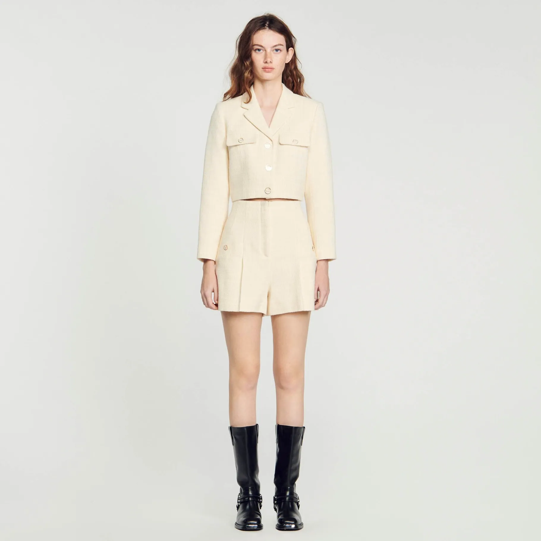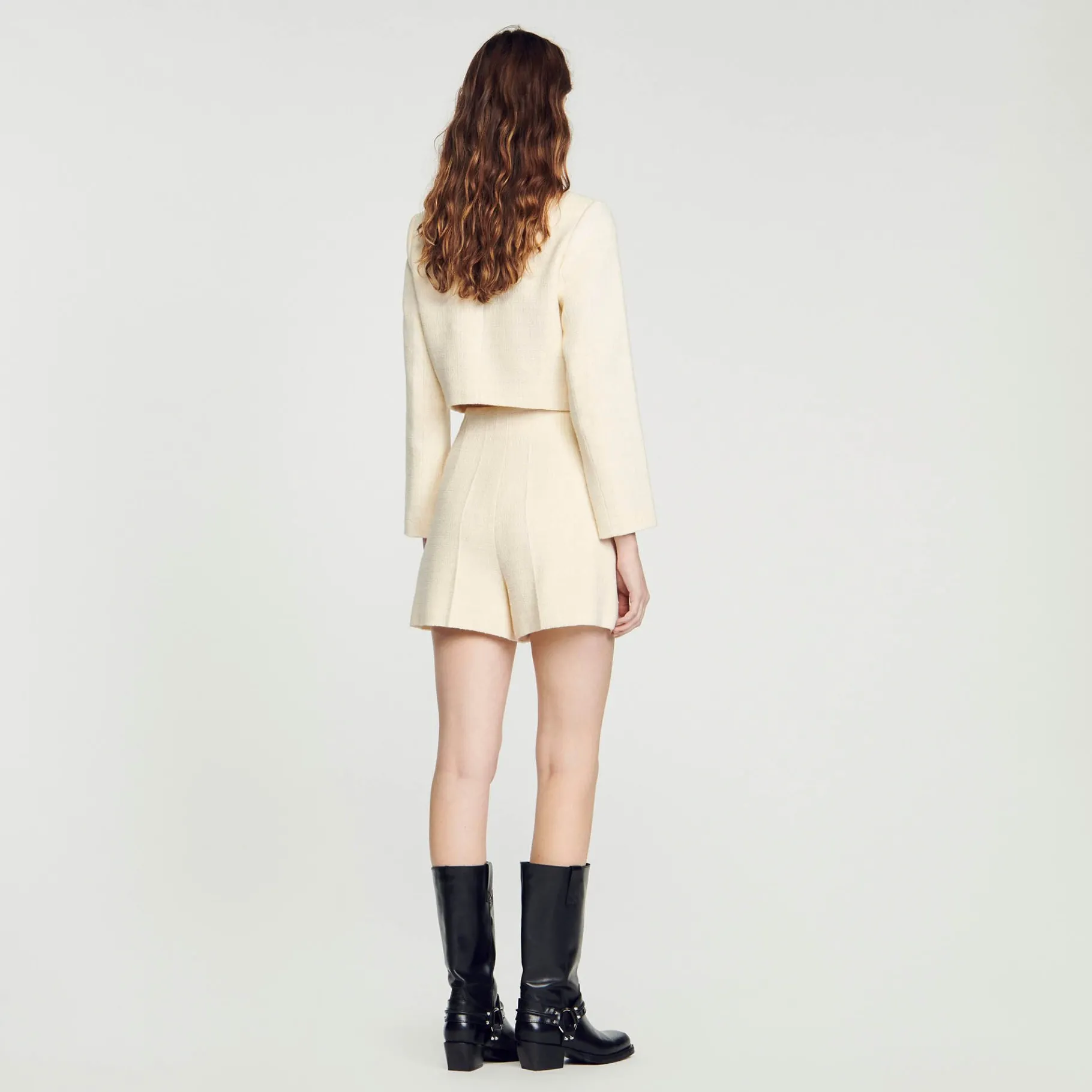 Short De Tweed Ligeramente Evasé De Talle Alto Con Bolsillos Con Botones Trabajados En Los Laterales.