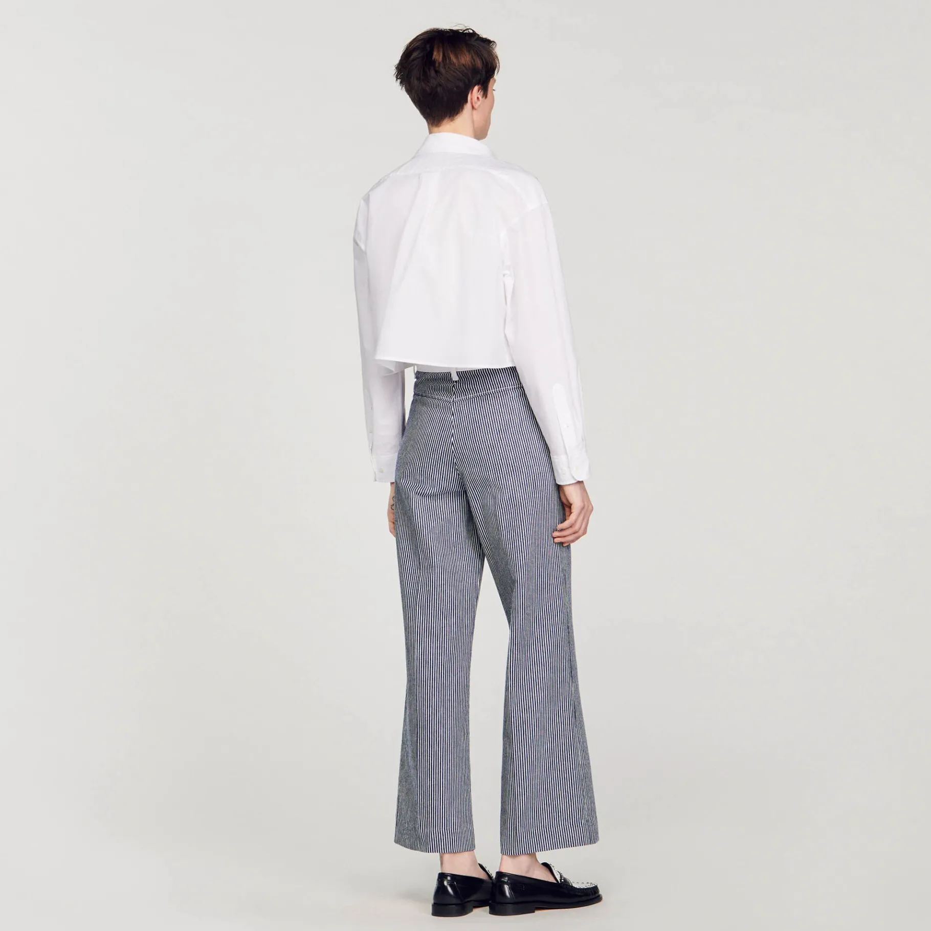 Pantalón A Rayas Con Bolsillos De Parche Y Cintura Vaquera En Contraste.