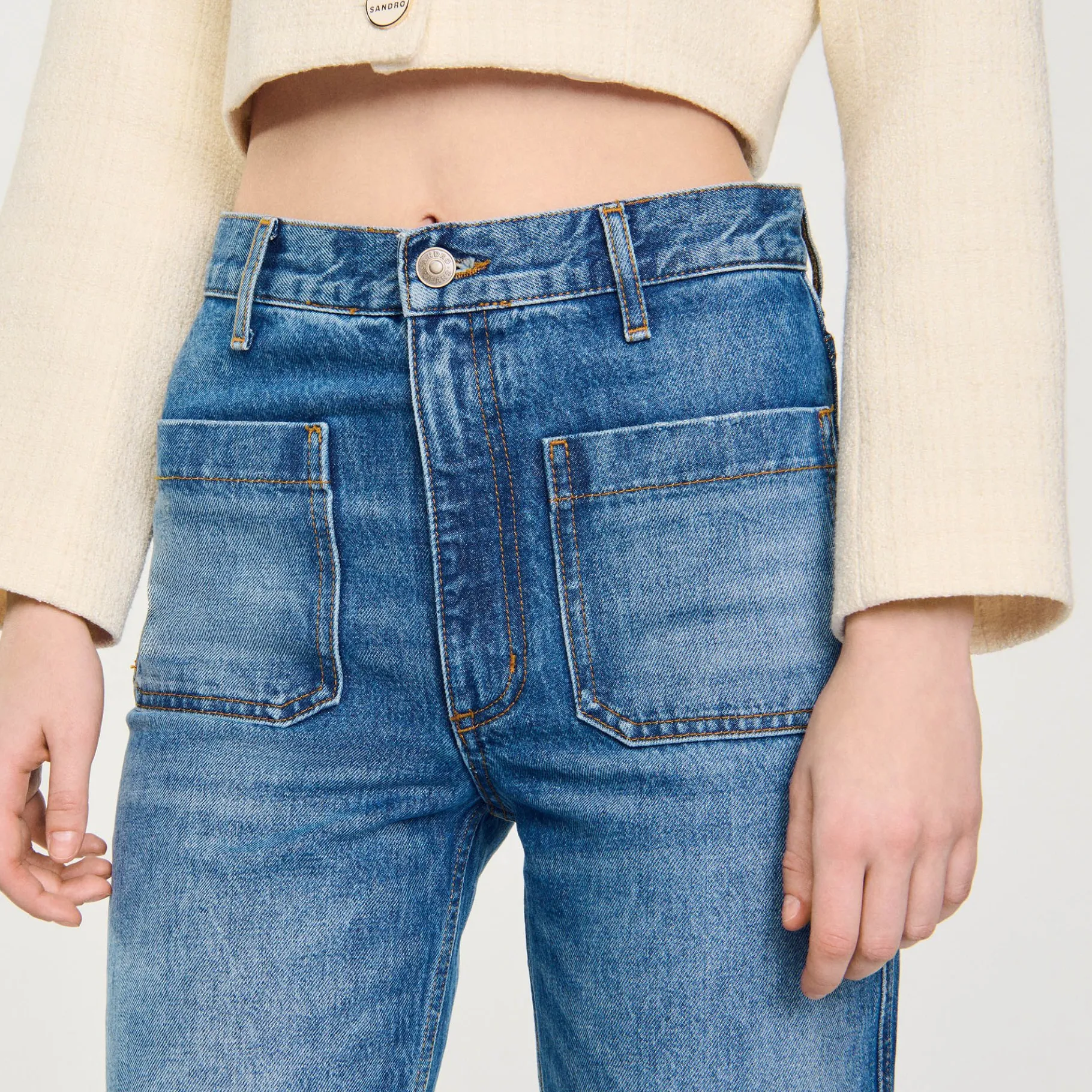 Sandro Está Comprometido Con Una Moda Más Responsable. En El Marco De Nuestro Proyecto De Trazabilidad En Colaboración Con Fairly Made, Informamos Con Total Transparencia Del Origen, La Fabricación Y El Impacto Medioambiental De Nuestras Prendas. Todas Las Etapas De Confección Y Producción De Este Vaquero Se Llevaron A Cabo En Turquía. Se Recurrió Al Uso De Algodón Procedente De Campos Cultivados Localmente.La Modelo Mide 177 Cm Y Lleva La Talla 36